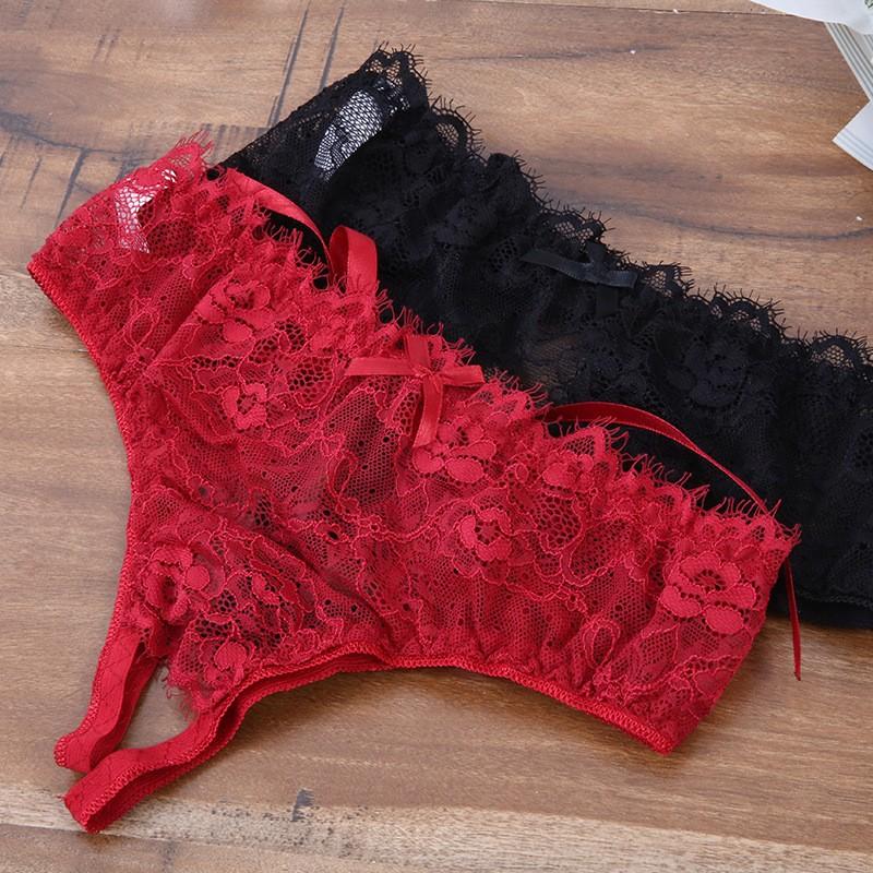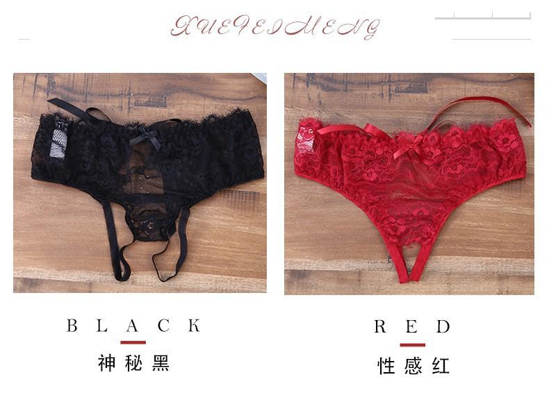 Ropa Interior Sexy para Mujer Perspectiva Cruzada Delgada Entrepierna Abierta Encaje Libre Ropa Interior Europea y Americana Ropa Interior Sexy de Encaje con Cordones