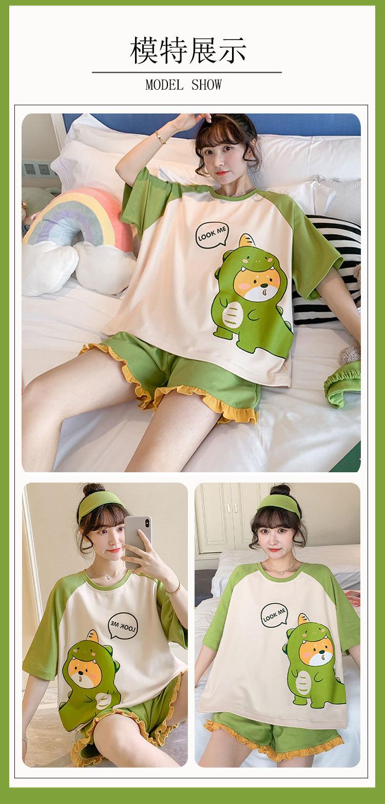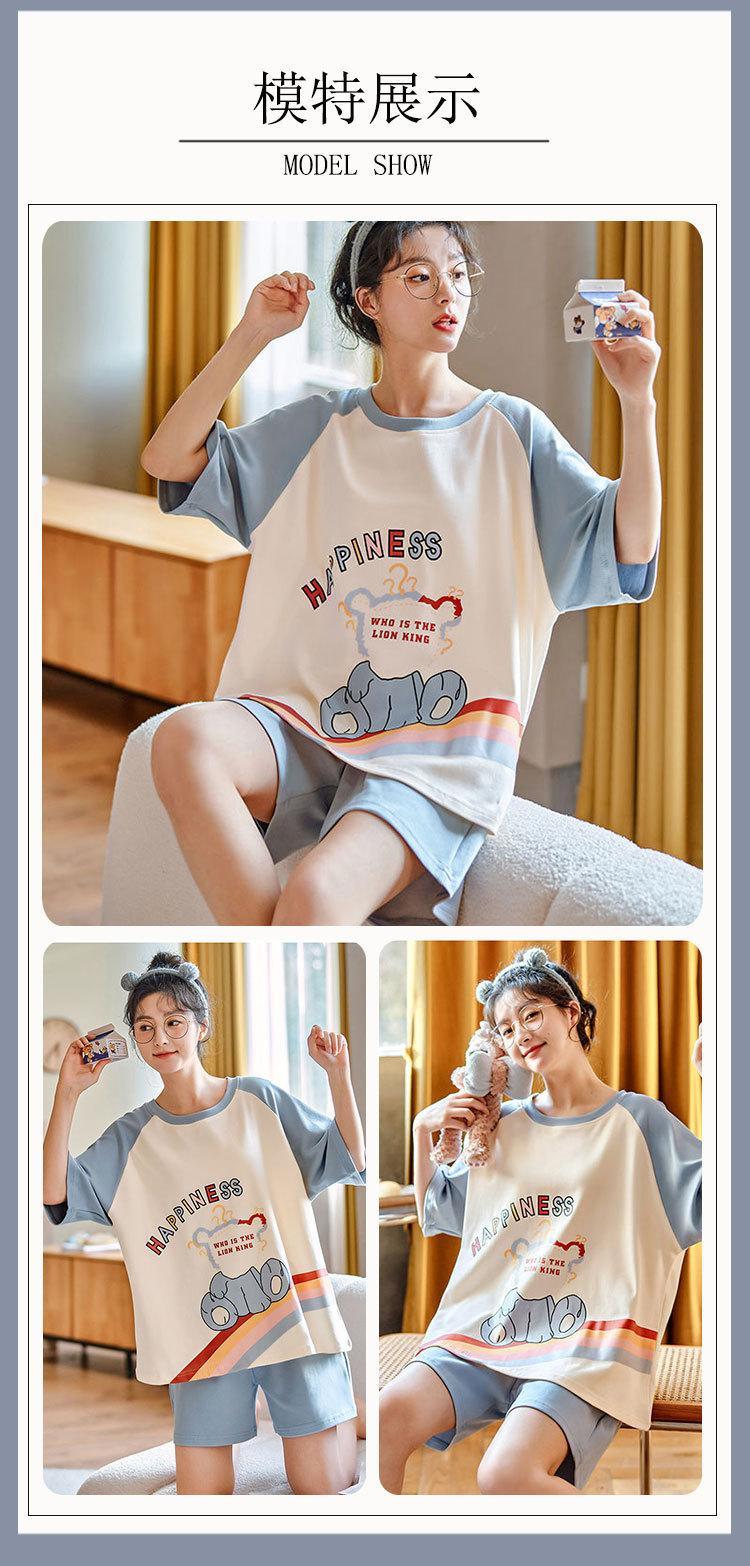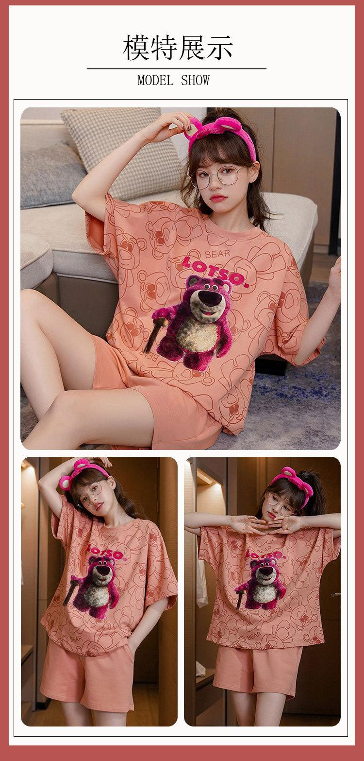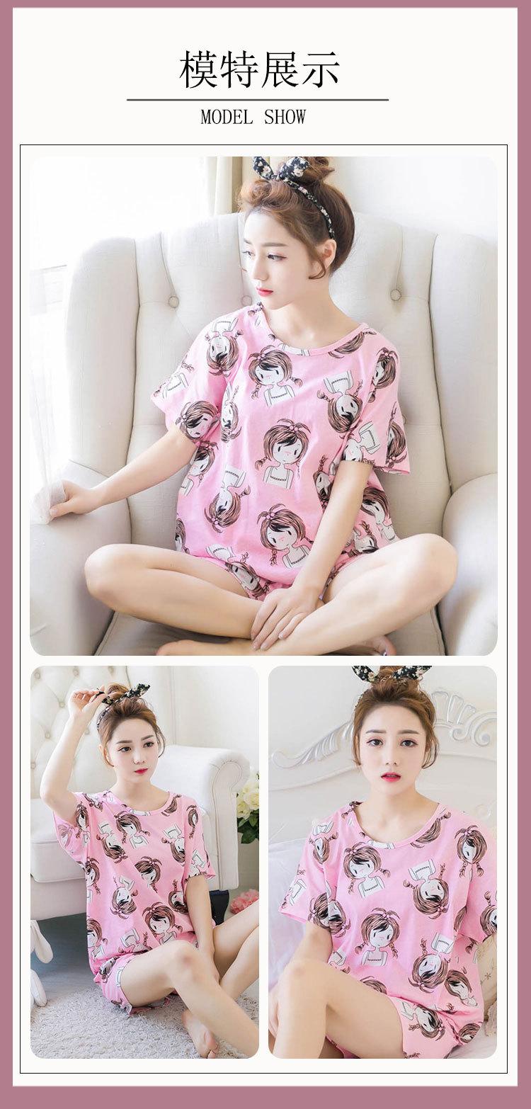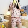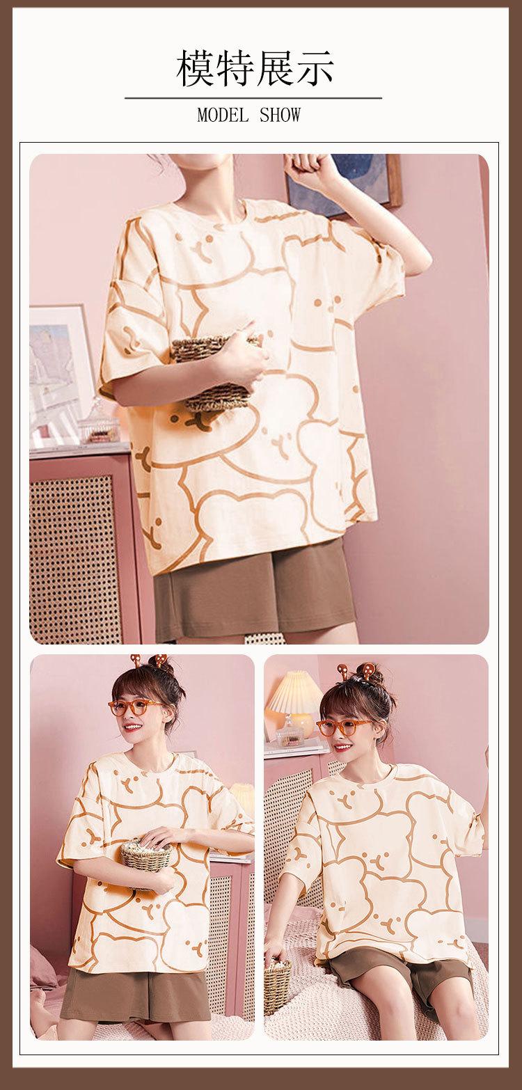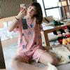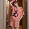 Pijamas de verano para mujer, pantalones cortos de manga corta, sueltos, bonitos, con dibujos animados, ropa informal, pijamas de verano para mujer, ropa de casa, traje