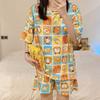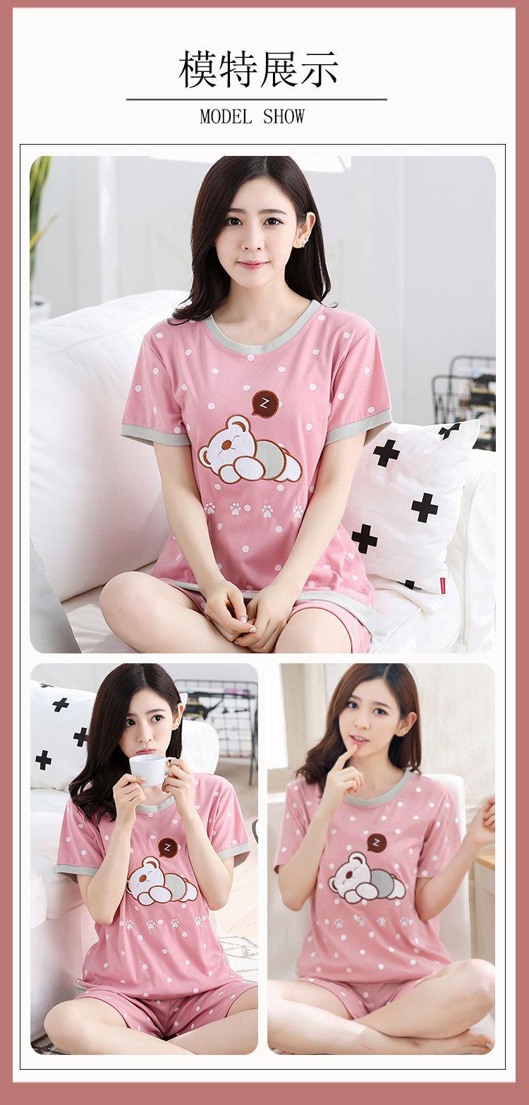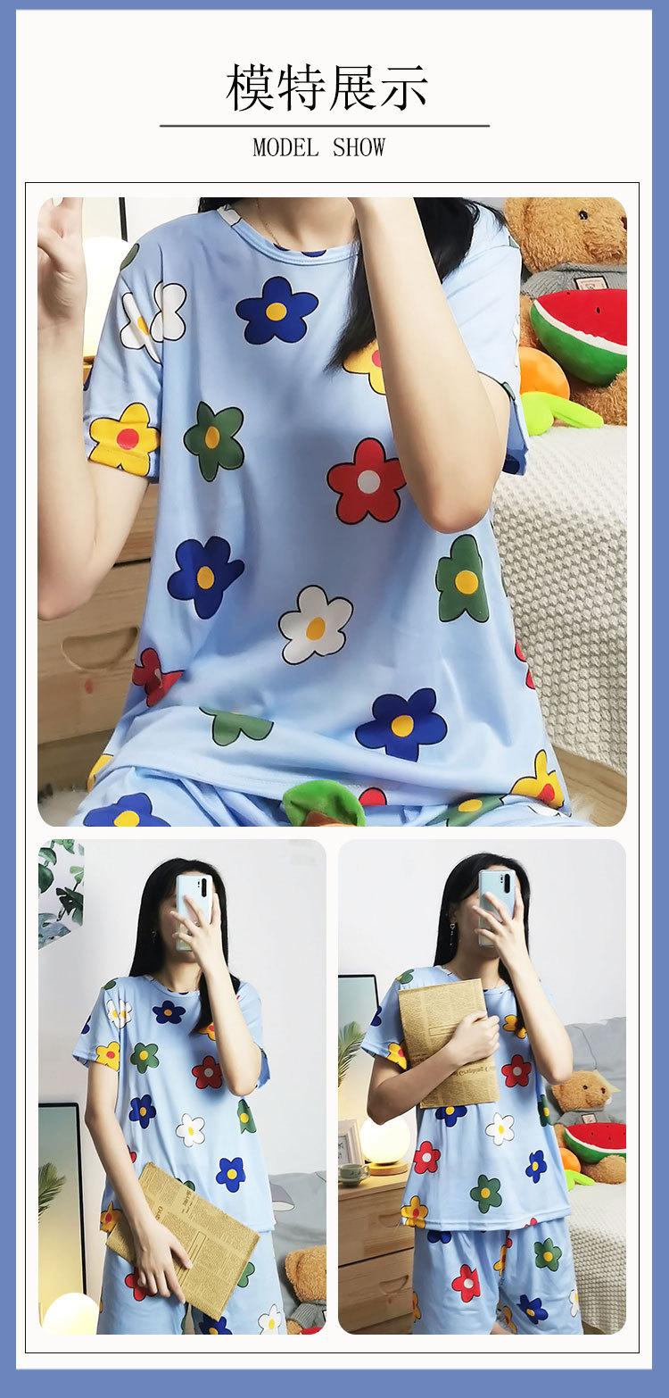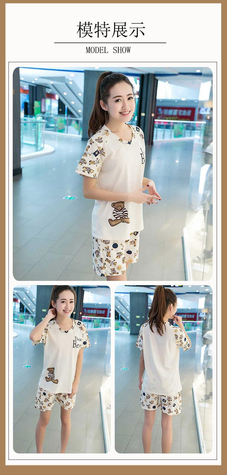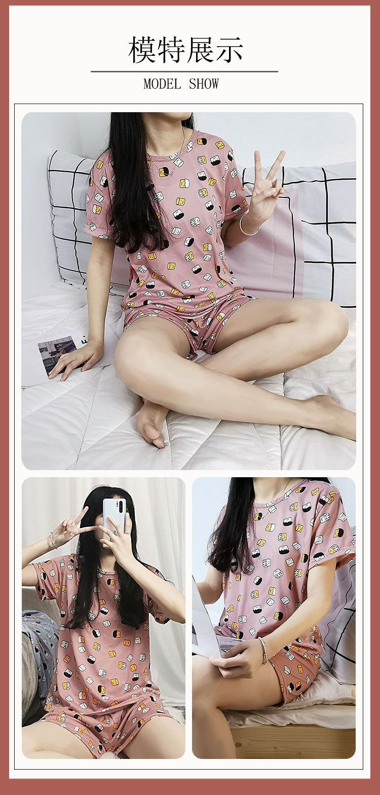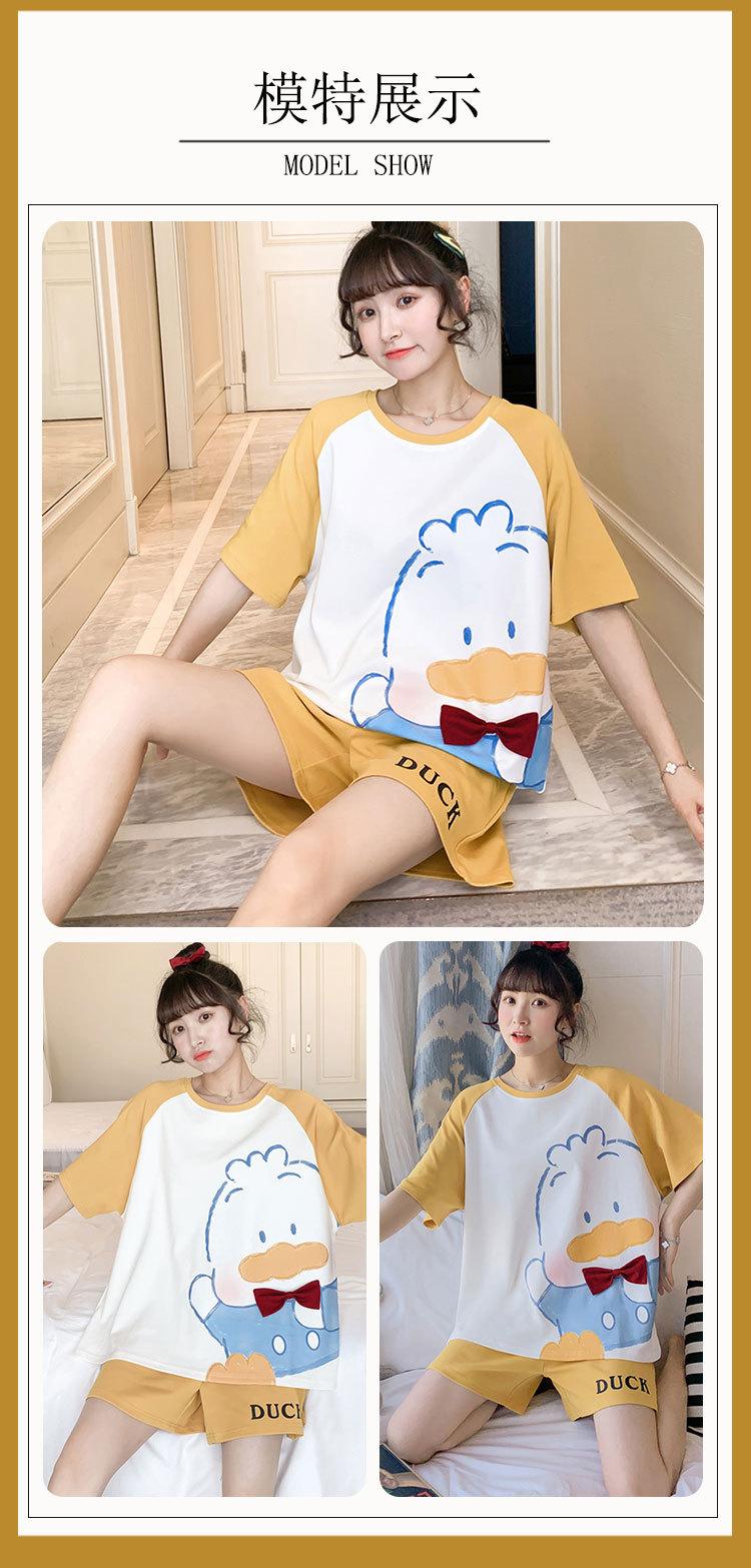 Pijamas de verano para mujer, pantalones cortos de manga corta, sueltos, bonitos, con dibujos animados, ropa informal, pijamas de verano para mujer, ropa de casa, traje