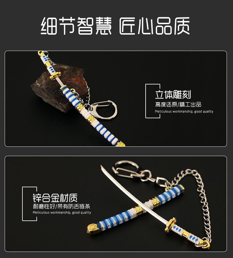 Los expositores de productos deben adquirirse por separado, y se indicarán claramente si se regalan.One Piece Anime Periférico Mini Zoro Segunda Generación Modelo Katana Fantasma Aleación Juguete Llavero Colgante