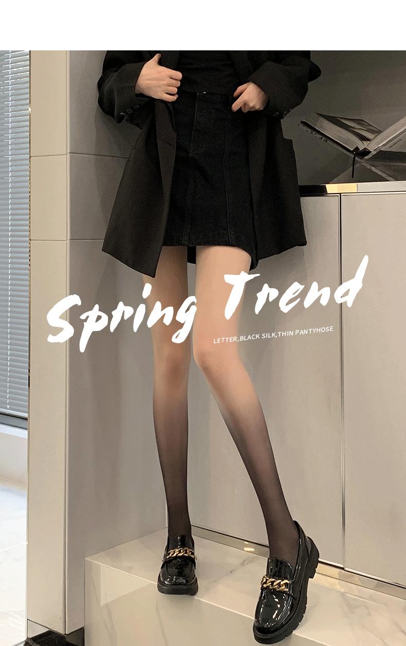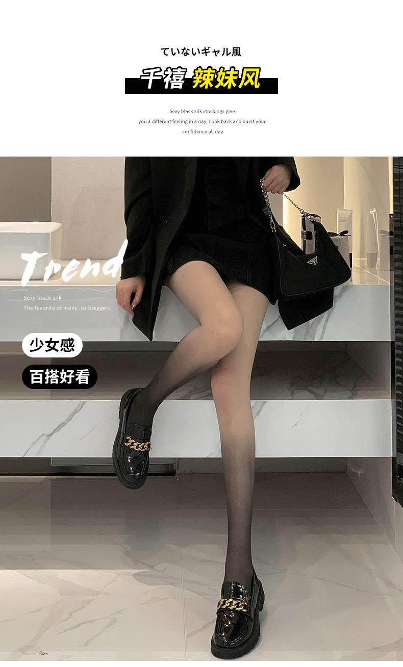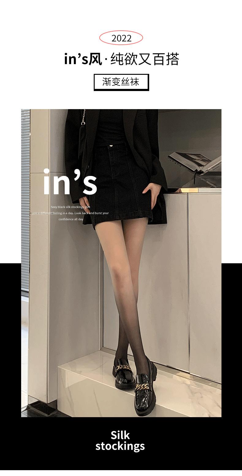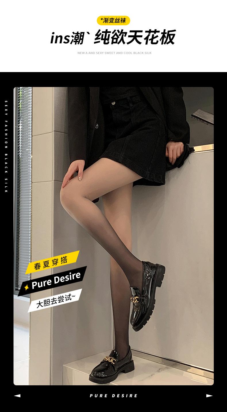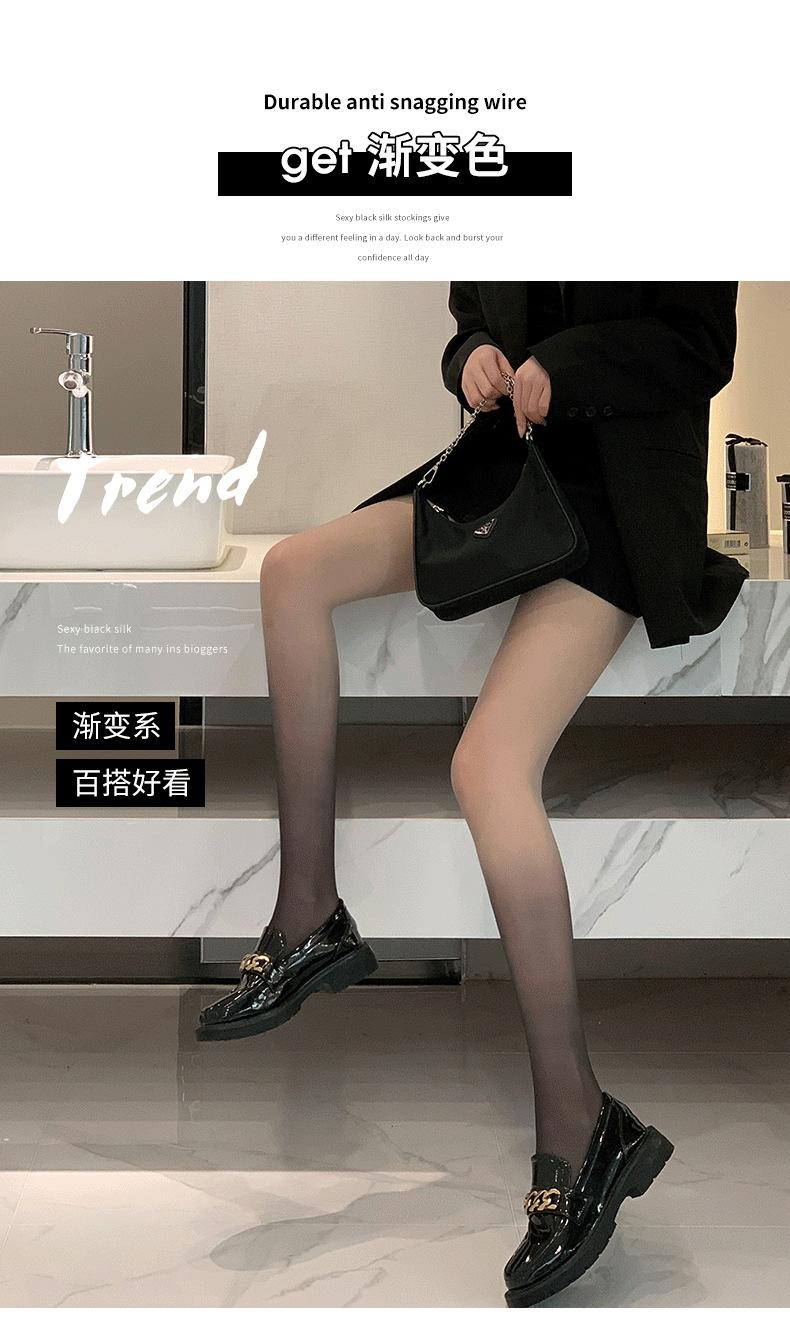Medias de color degradado de corte arbitrario al por mayor para mujer verano sexy seda negra ultrafina anti-gancho seda negra gris pantimedias