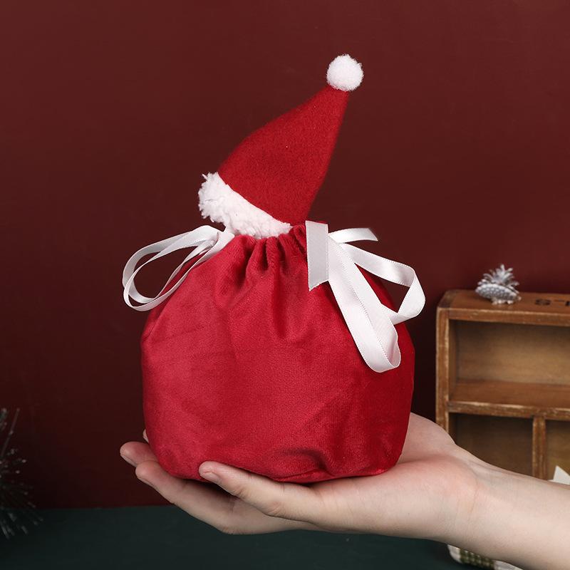 Bolsa con cordón navideña de Amazon transfronteriza bolsa de regalo de Papá Noel bolsa de regalo bolsa con cordón de franela bolsa de manzana