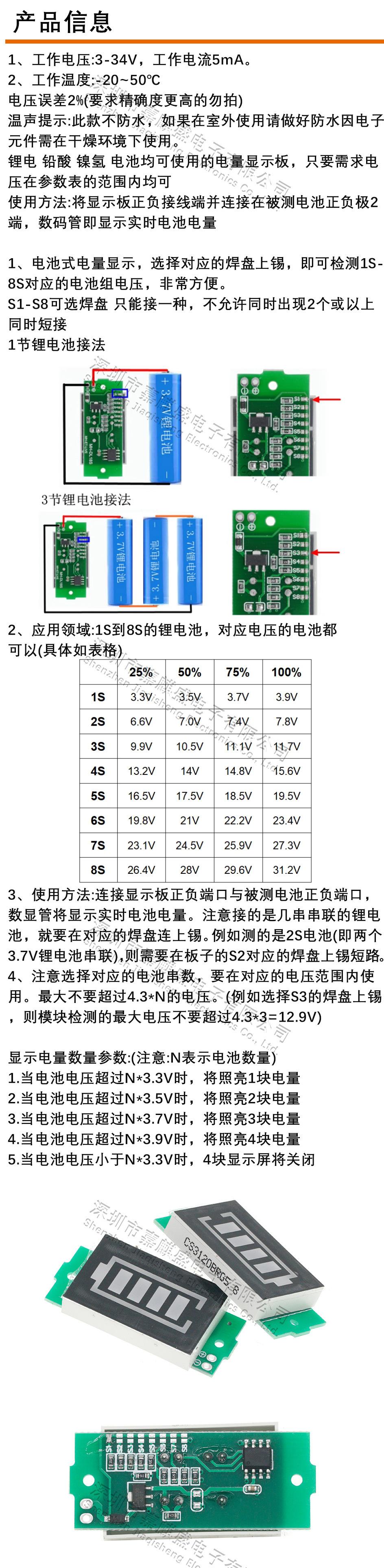 Módulo de visualización del medidor de batería de litio de 1/2/3/4/6/7/8 s, placa indicadora de paquete de batería de litio LED de tres series