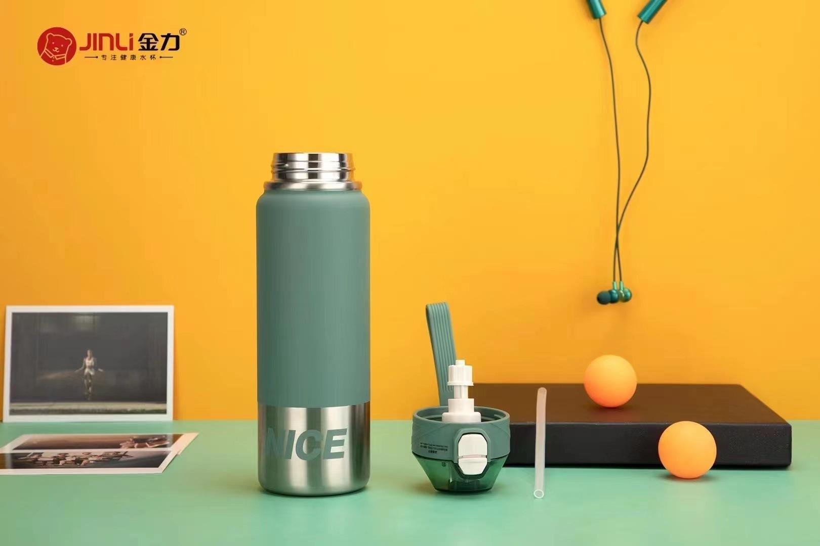 Termo de acero inoxidable 304 transfronterizo, botella deportiva para exteriores de gran capacidad, tapa de rebote, taza para automóvil, taza con pajita doble