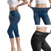 Venta caliente transfronteriza de AliExpress: Leggings elásticos de mezclilla de imitación, pantalones cortos ajustados con estampado que realzan la cadera.
