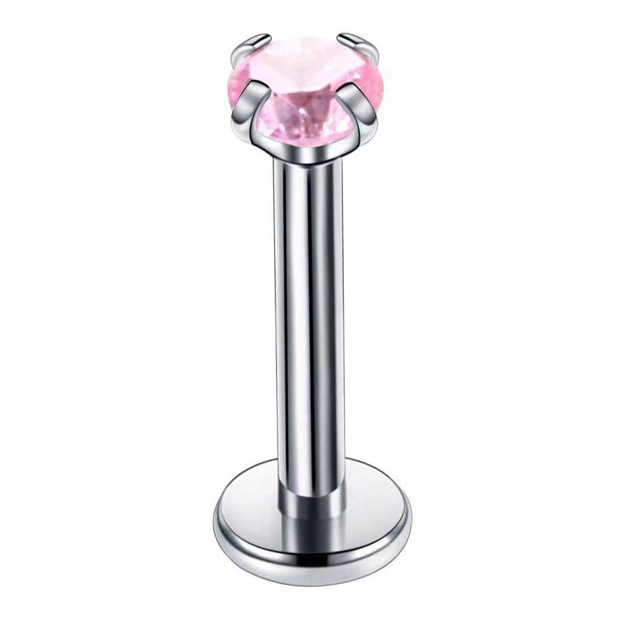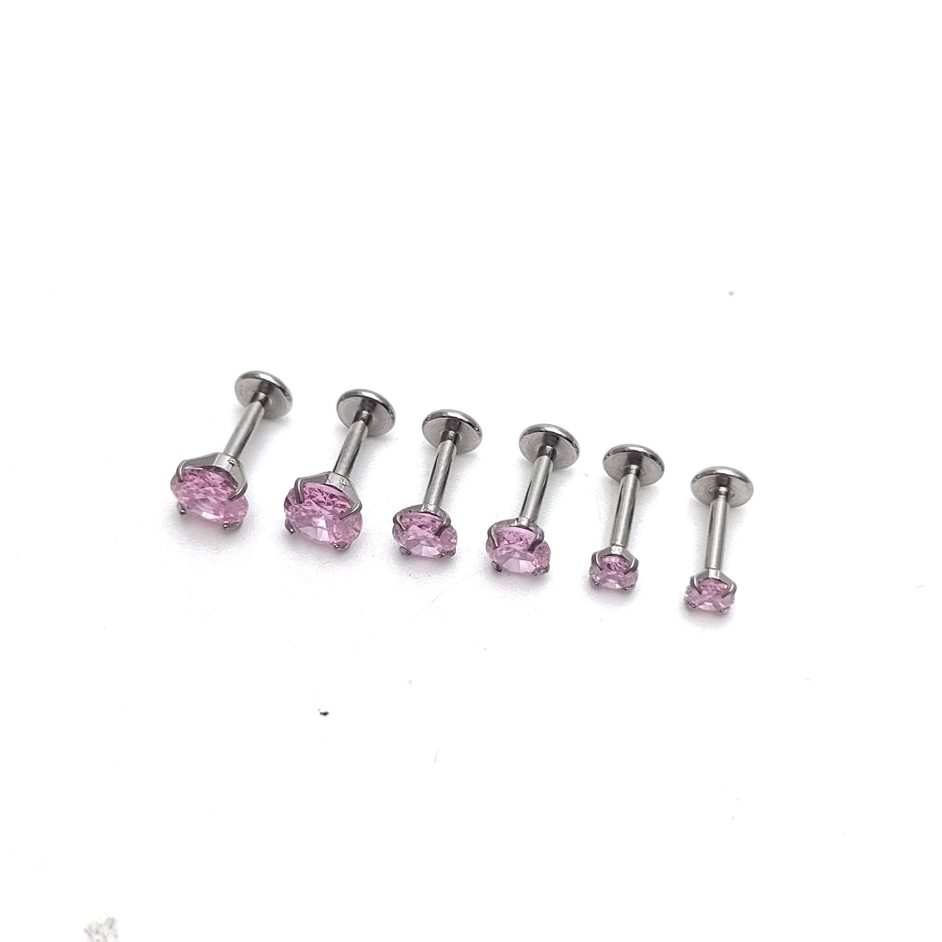 Anillo para el labio, uña, nariz, dientes internos, aretes, acero inoxidable 16G, circonita rosa brillante, venta al por mayor