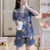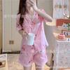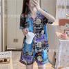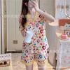 Pijamas de seda artificial al por mayor, pantalones cortos de mujer de manga corta, nuevo verano 2024, popular traje de seda de hielo para el hogar.