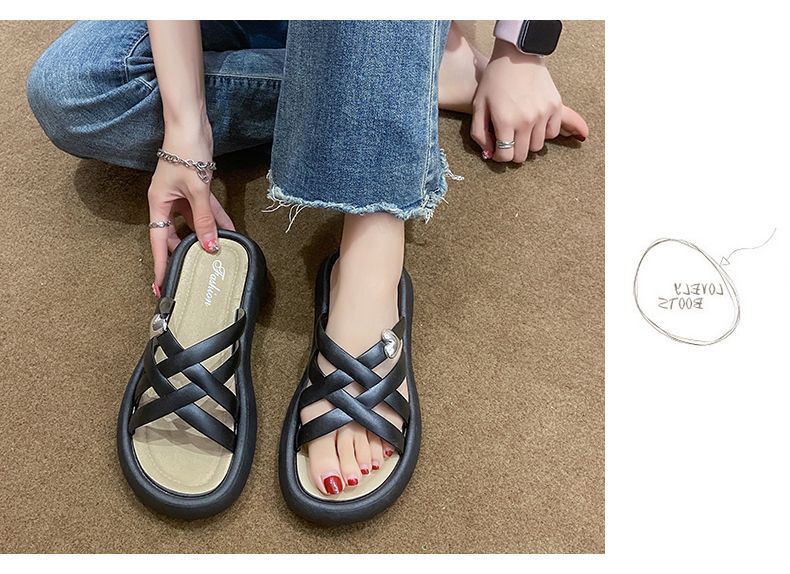 Populares Transfronterizos 2025 Nuevas Pantuflas para Mujer para Verano para Exterior Suela Gruesa Antideslizantes Moda Versátiles Pantuflas para Mujer Exportación