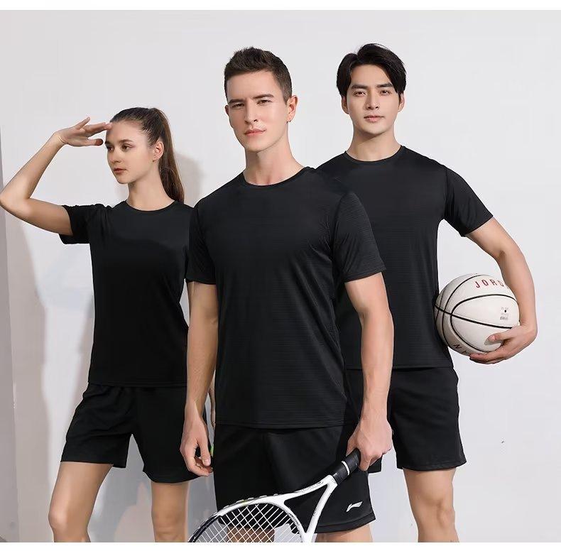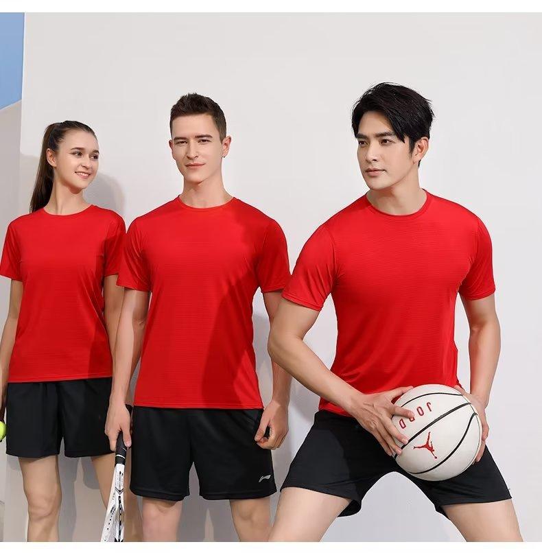 Camiseta de cuello redondo de secado rápido de seda de hielo, camiseta de color liso para hombre y mujer, camiseta deportiva de manga corta, camiseta de verano con logotipo impreso y publicidad DIY.
