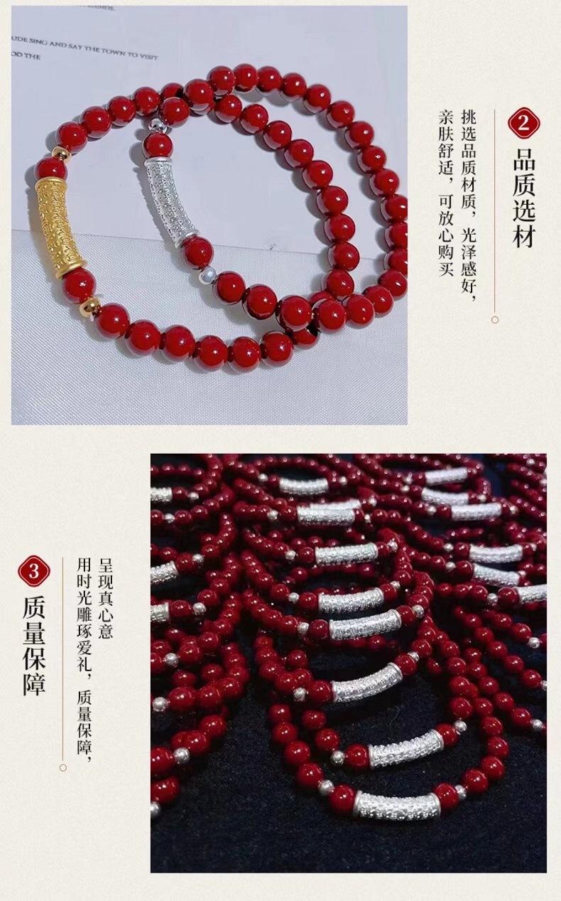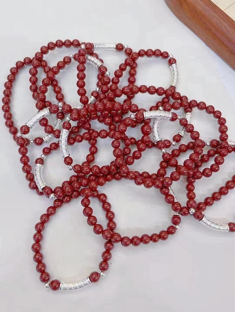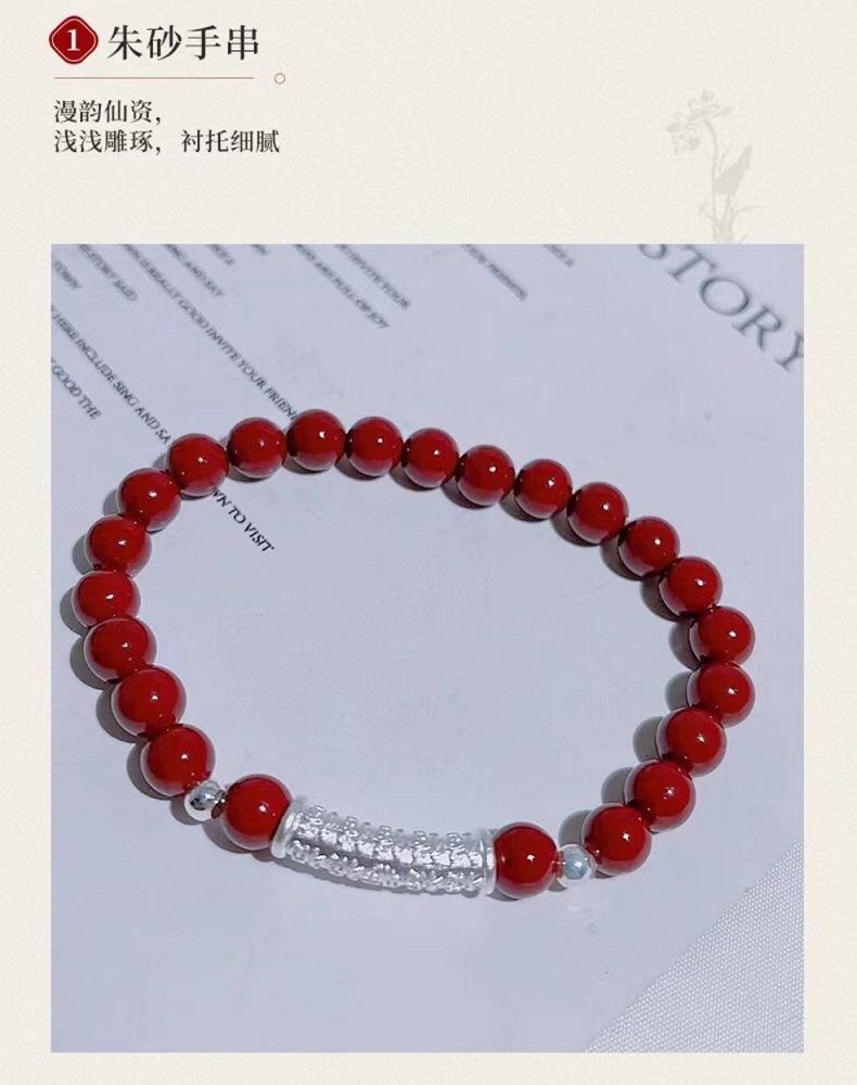 Pulsera Baifu de Plata Pura con Cinabrio Natural para Mujer Plata Pura 99 Pulsera de Cuentas de Transferencia Passepartout Joyería Transmisión en Vivo Joyería al Mayoreo