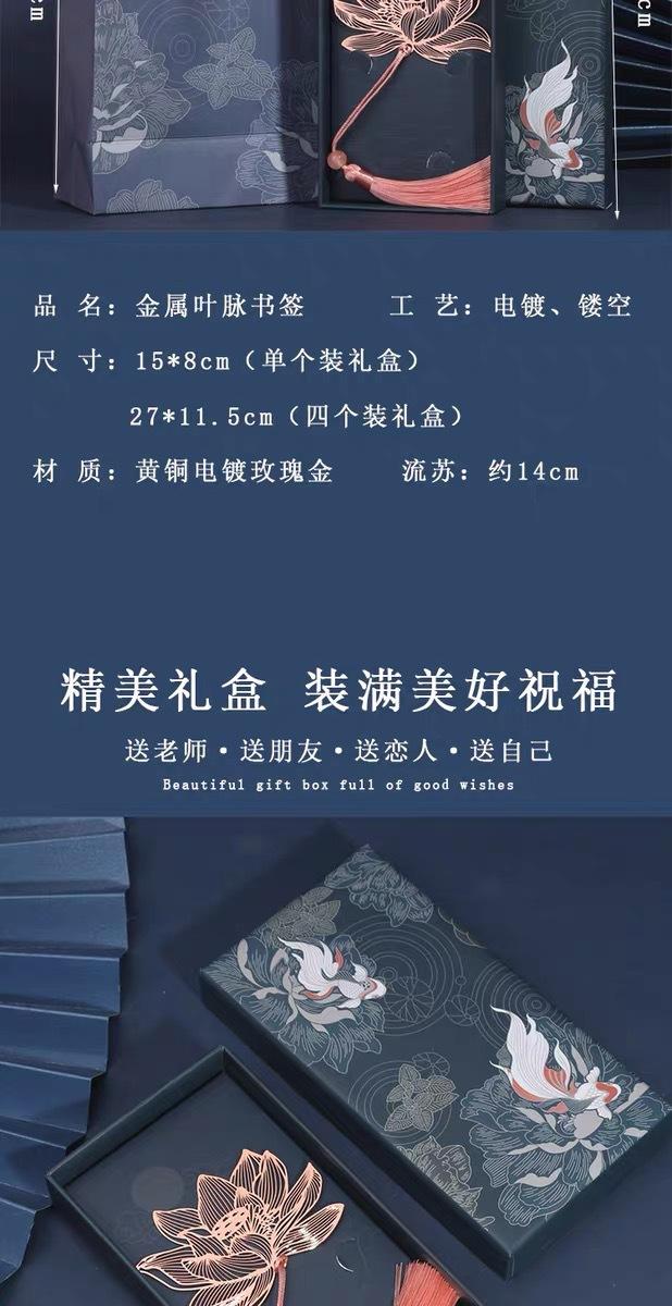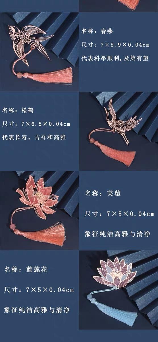 Metal Latón Veta Estilo Antiguo Marcador Hueco Estilo Clásico Chino Exquisito Set de Regalo para el Día del Maestro