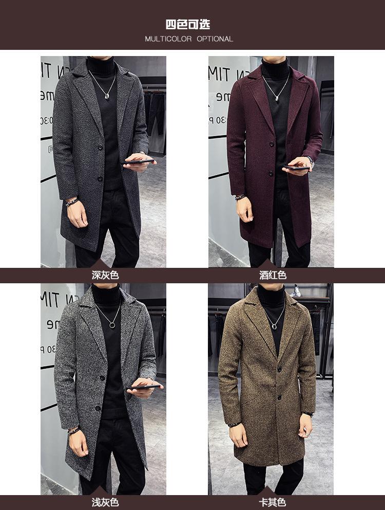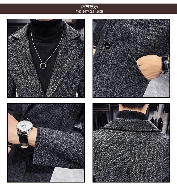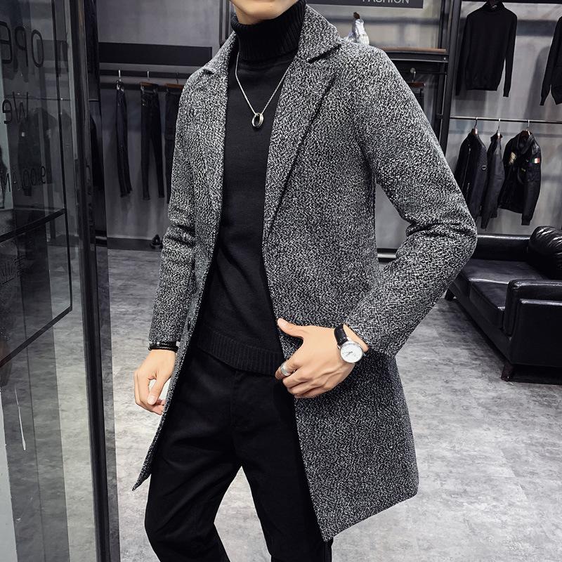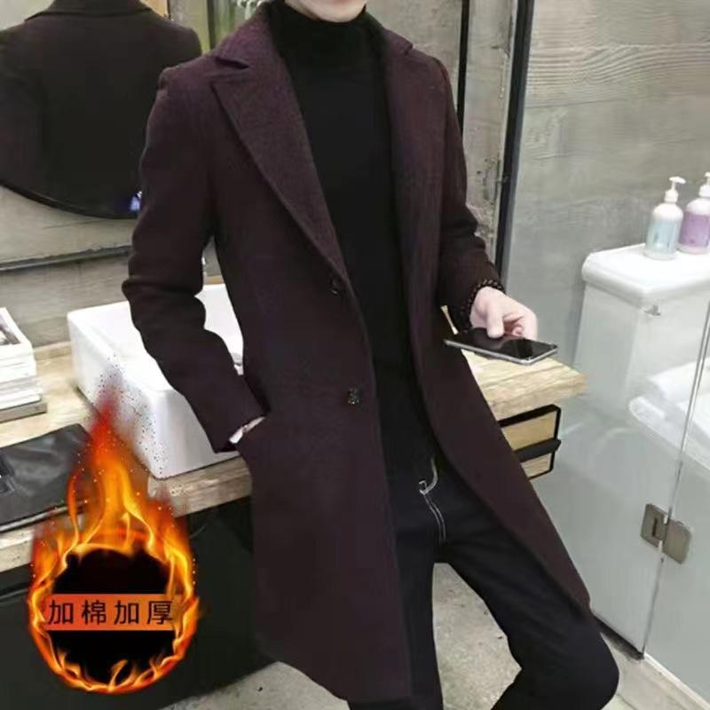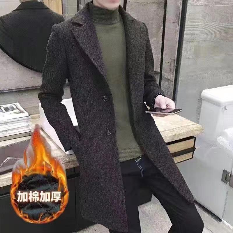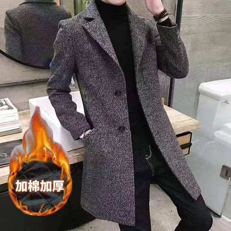 Gabardina de otoño e invierno para hombre, abrigo de lana de longitud media engrosado de algodón, abrigo de lana cálido de corte entallado estilo coreano para jóvenes.