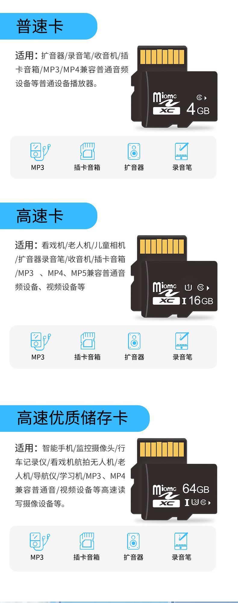 128MB, 256MB, 512MB, 1GB, 2GB, 4GB high speed C10, 8GB high speed C10, 16GB high speed C10, 32GB high speed C1...