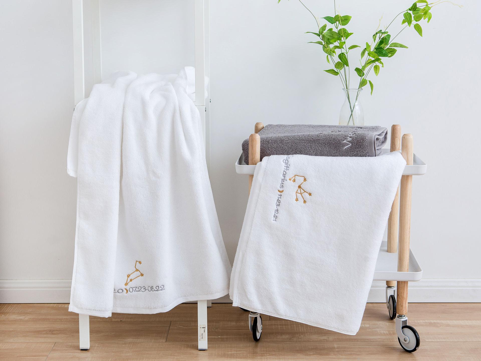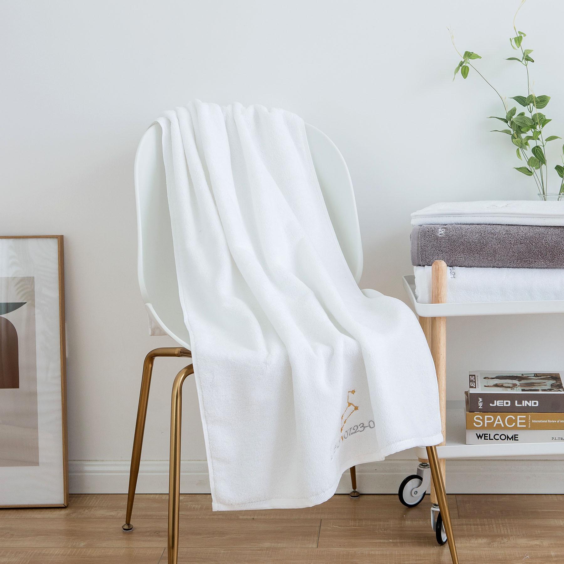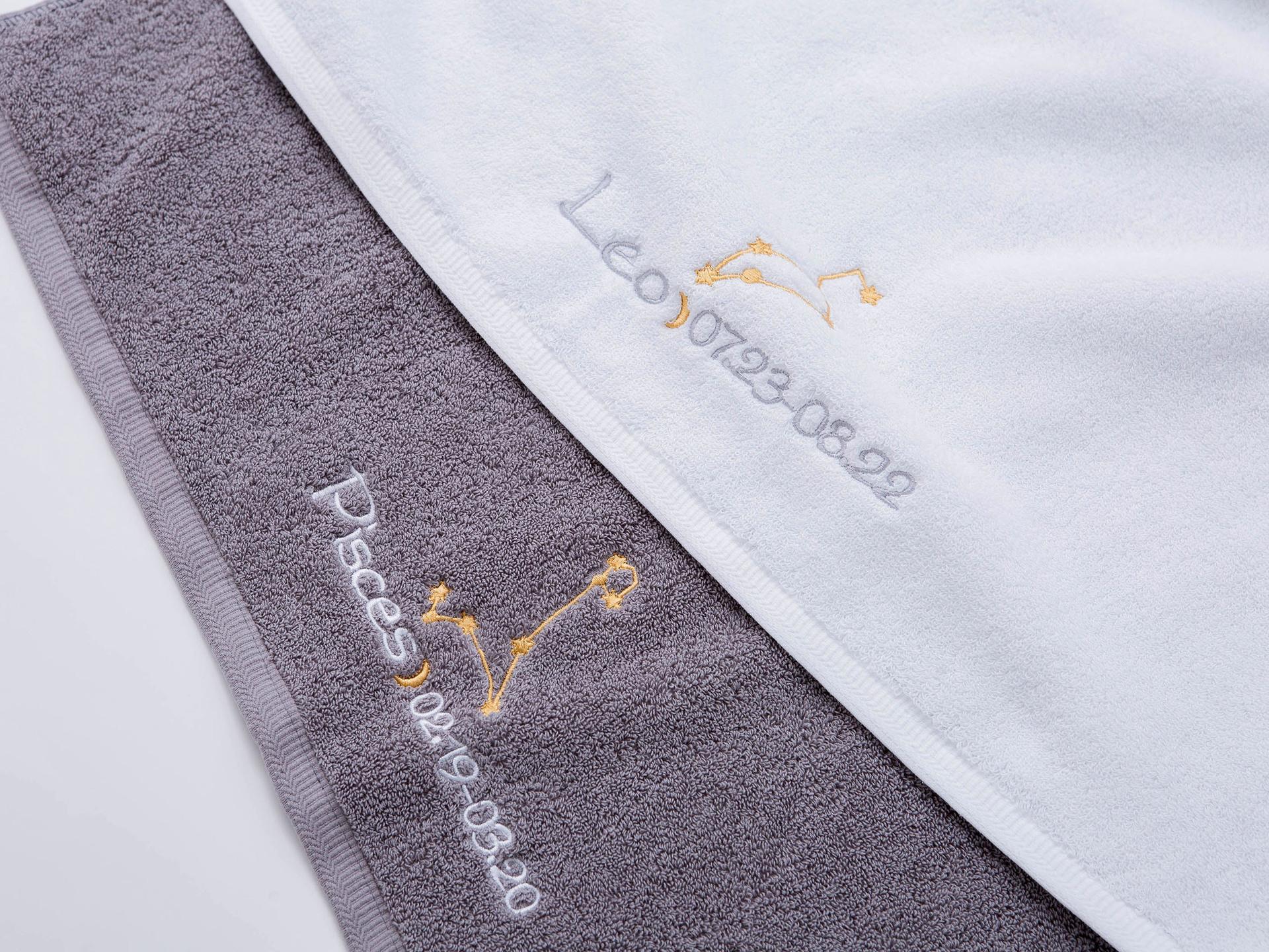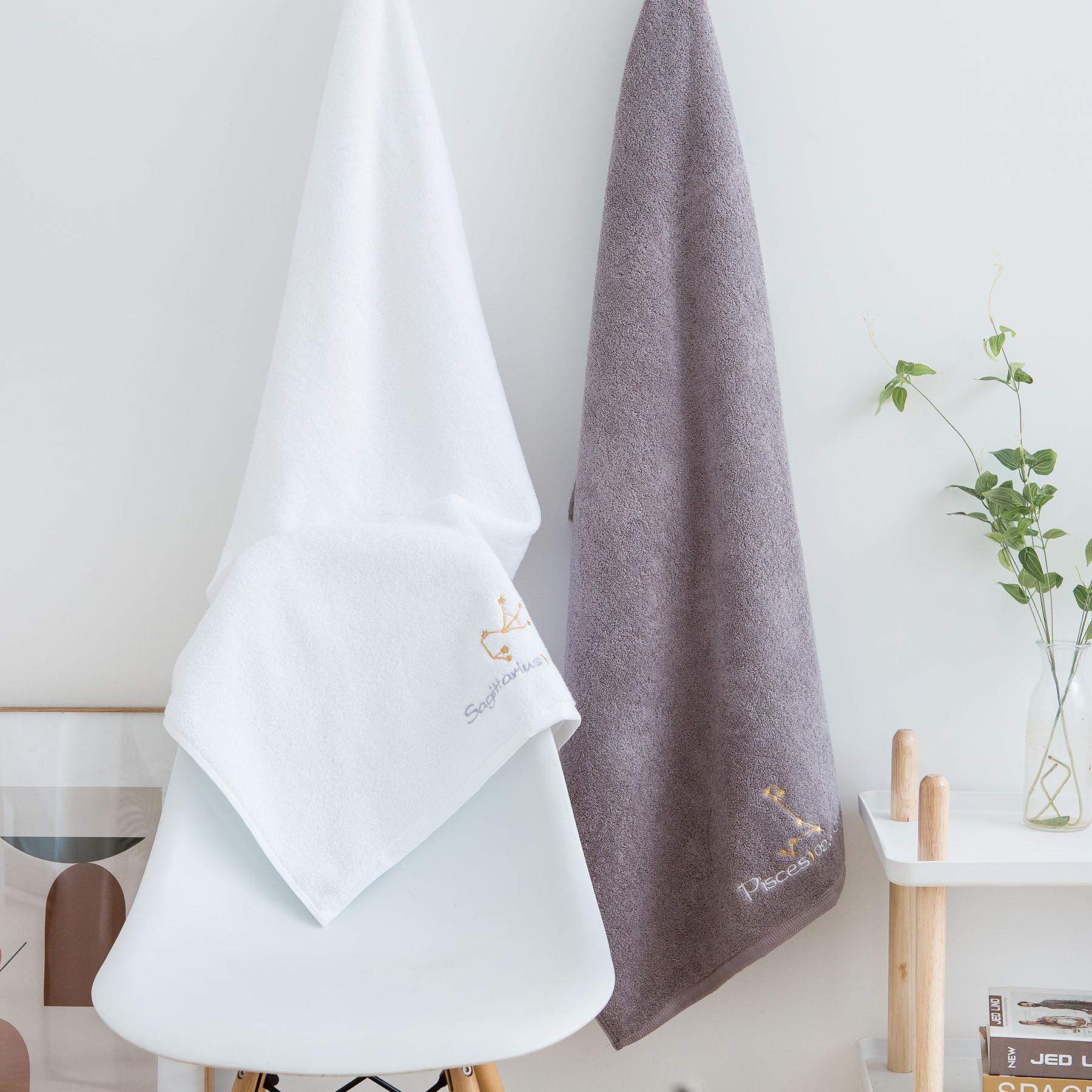 Puntos de venta del producto:Esta toalla de baño de la serie de los 12 signos del zodiaco está hecha de algodón pakistaní, con buena absorción de agua y suavidad. Es ecológica, está impresa con tecnología de pulido y no se decolora. El exquisito bordado del zodiaco es el toque final de esta toalla. El patrón del bordado está compuesto por las 12 constelaciones del zodiaco, sus nombres en inglés, la luna y sus fechas correspondientes. Es hermosa y tiene un significado muy exclusivo. Los clásicos blanco y gris se utilizan en la selección de colores, ideal para una amplia gama de personas.