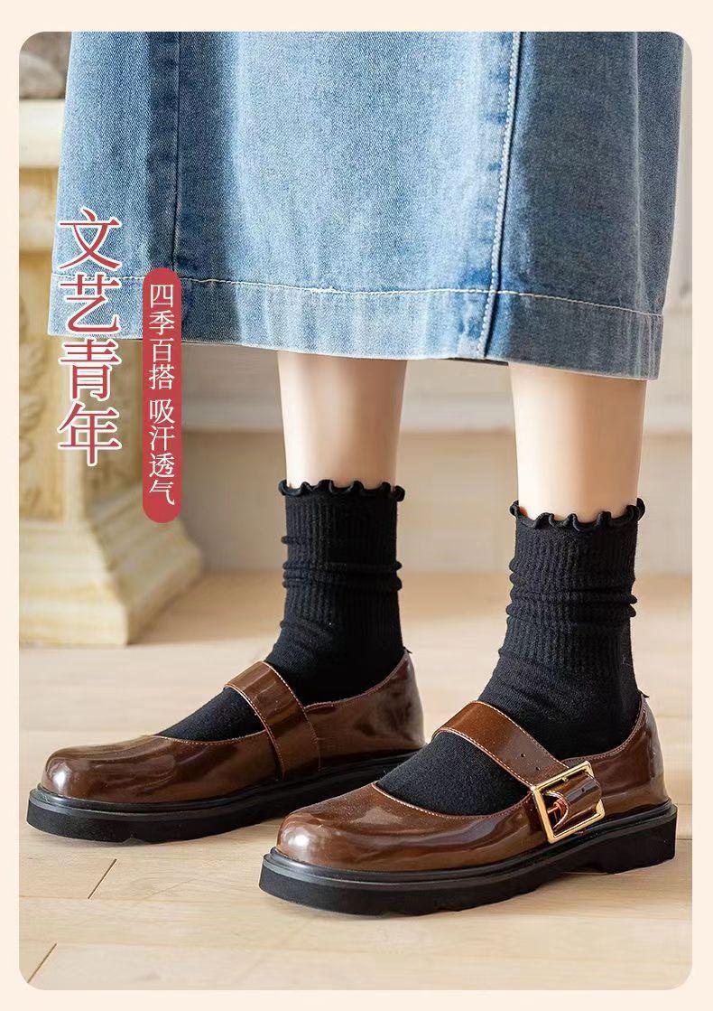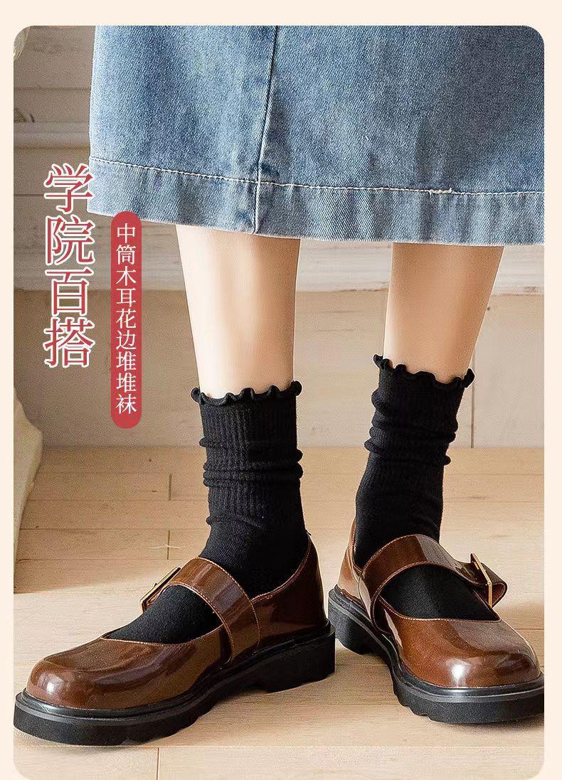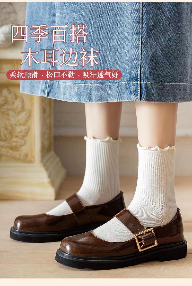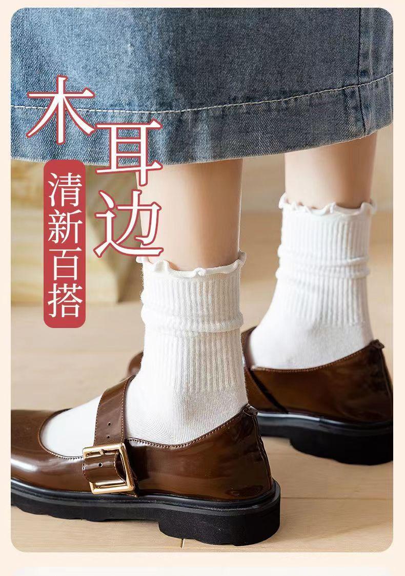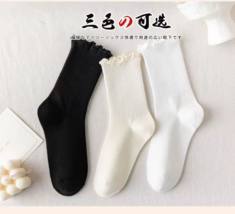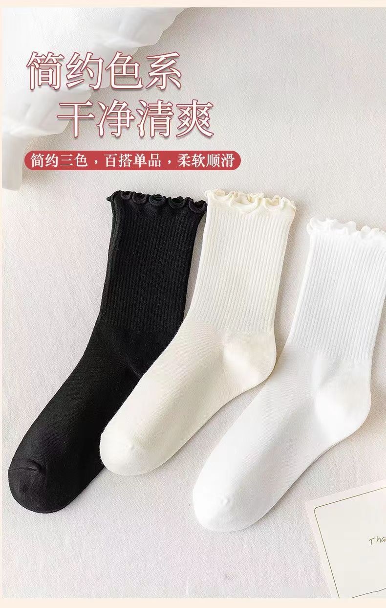 Calcetines de mujer oreja de madera dulce color sólido blanco y negro calcetines de felpa calcetines de tubo lindos japoneses jk encaje estilo académico venta al por mayor