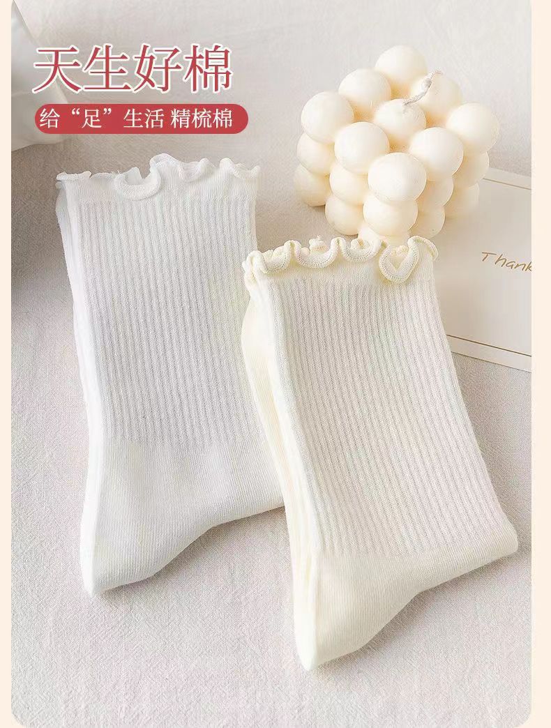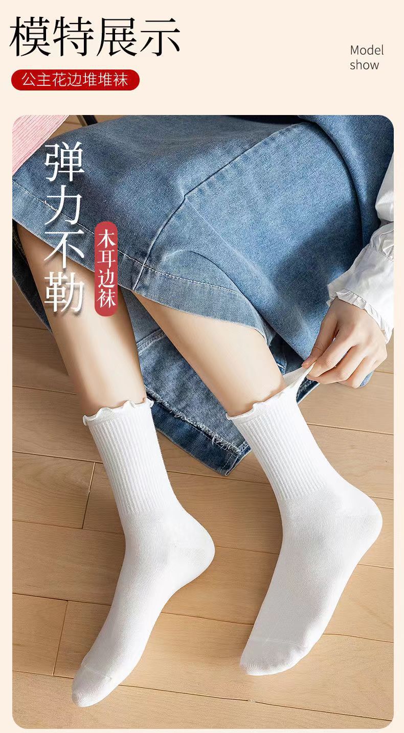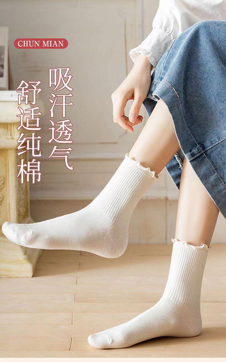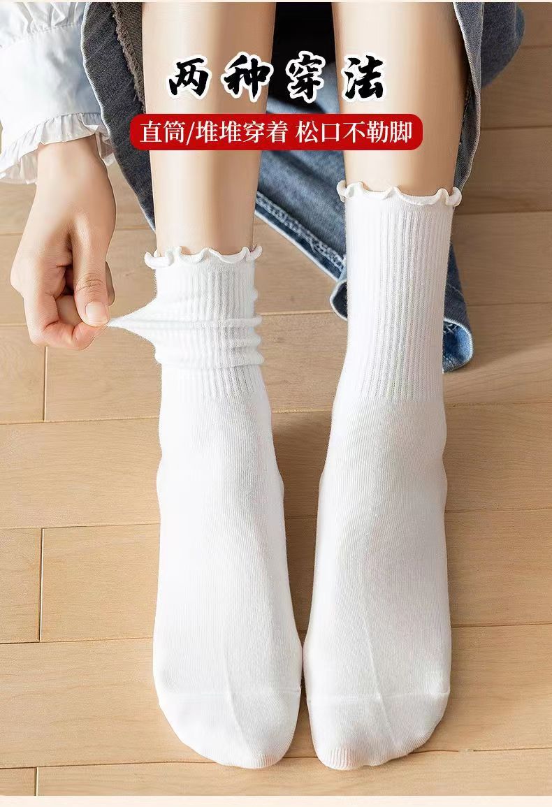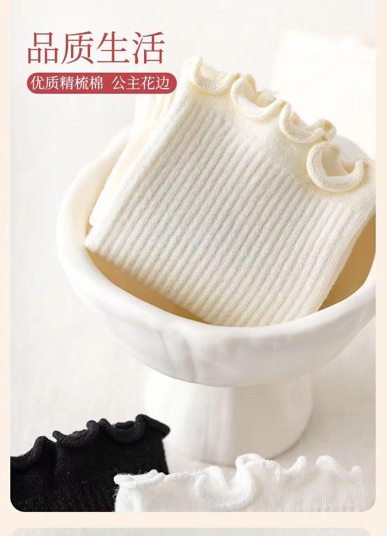 Calcetines de mujer oreja de madera dulce color sólido blanco y negro calcetines de felpa calcetines de tubo lindos japoneses jk encaje estilo académico venta al por mayor