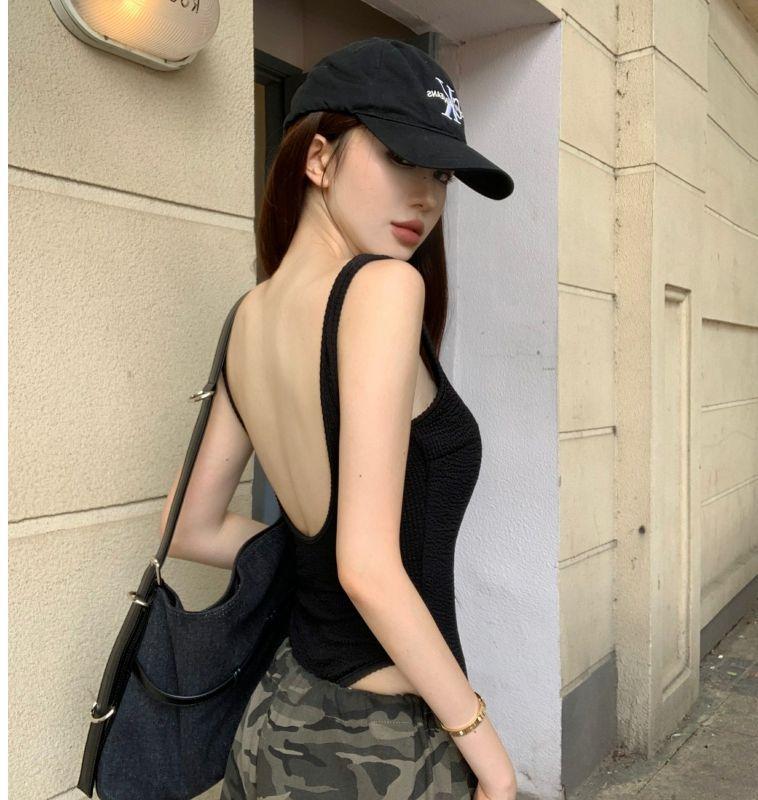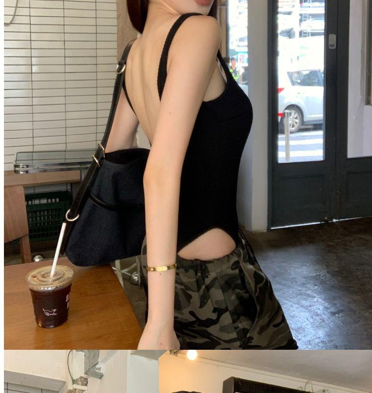 Camisola de una pieza estilo retro americano para mujer, ropa interior de verano, estilo europeo y americano, hermosa espalda negra sin espalda, ropa exterior