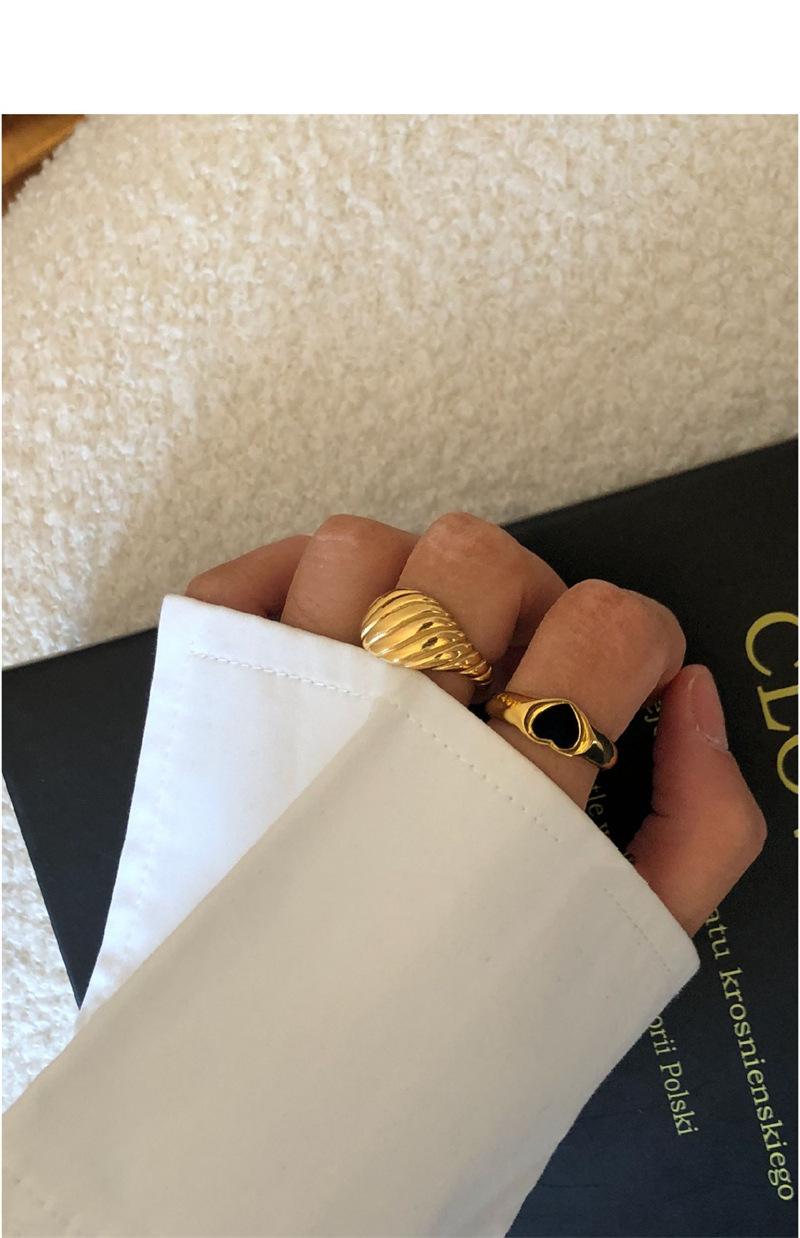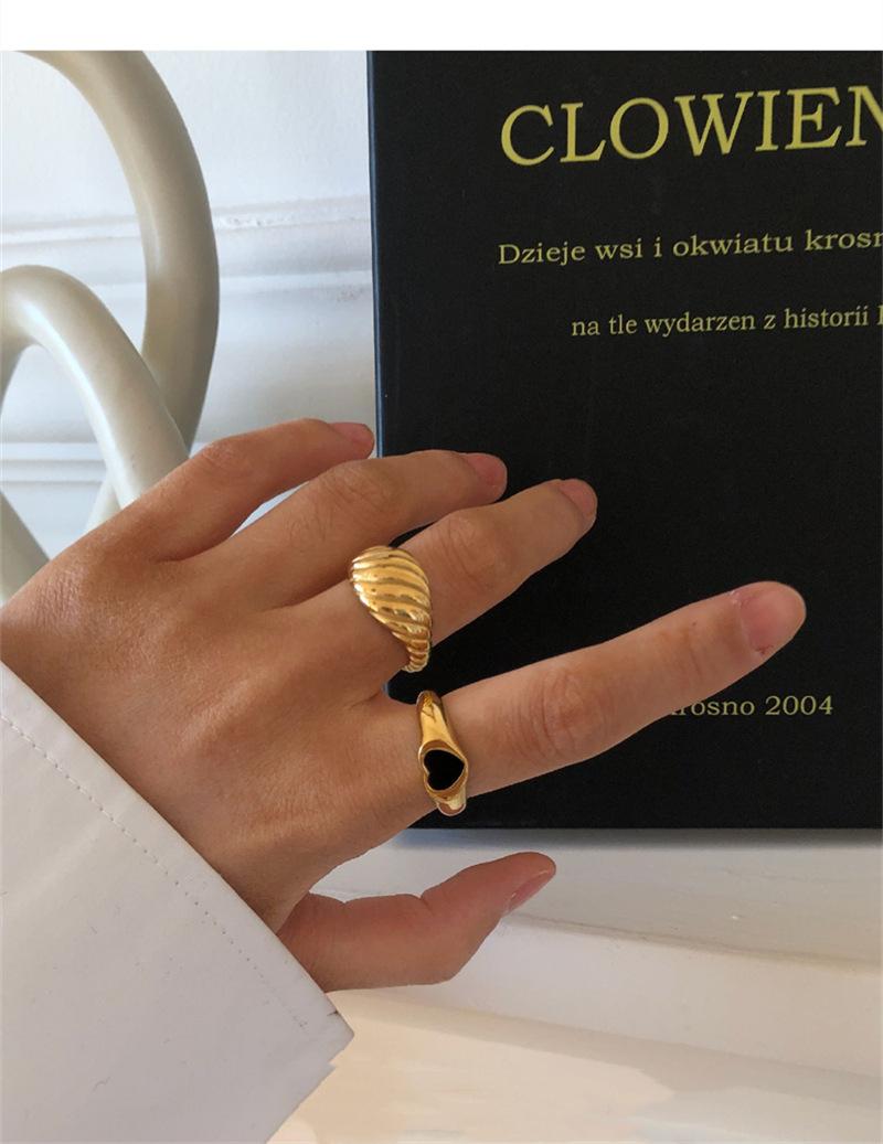 Anillo de titanio chapado en oro con diseño vintage francés de amor, moderno y personalizado, con detalles apilados y anillo para el dedo índice para mujer.