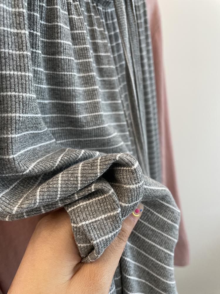Material de hilo suave y elástico, de grosor medio a fino, fluido y holgado.