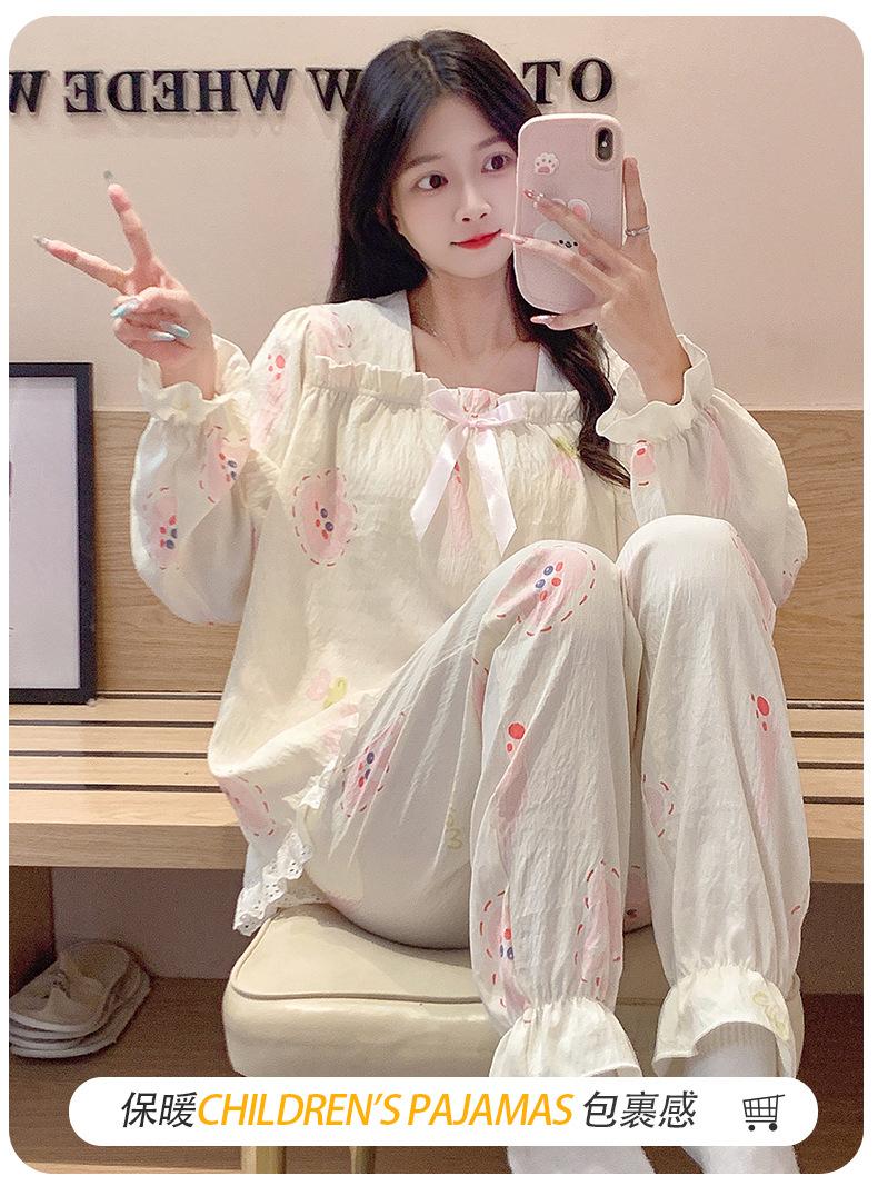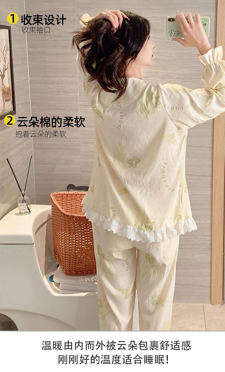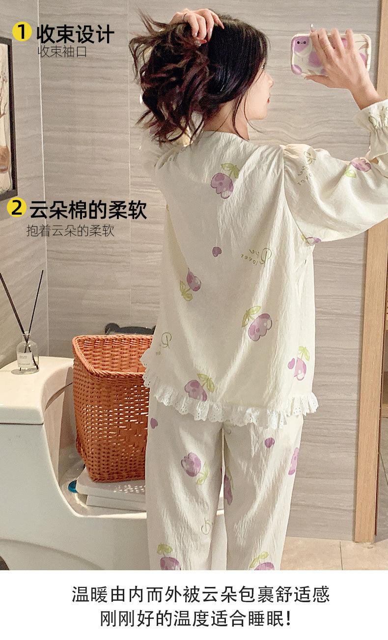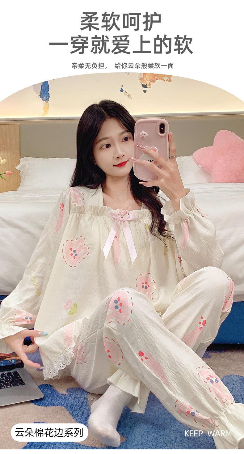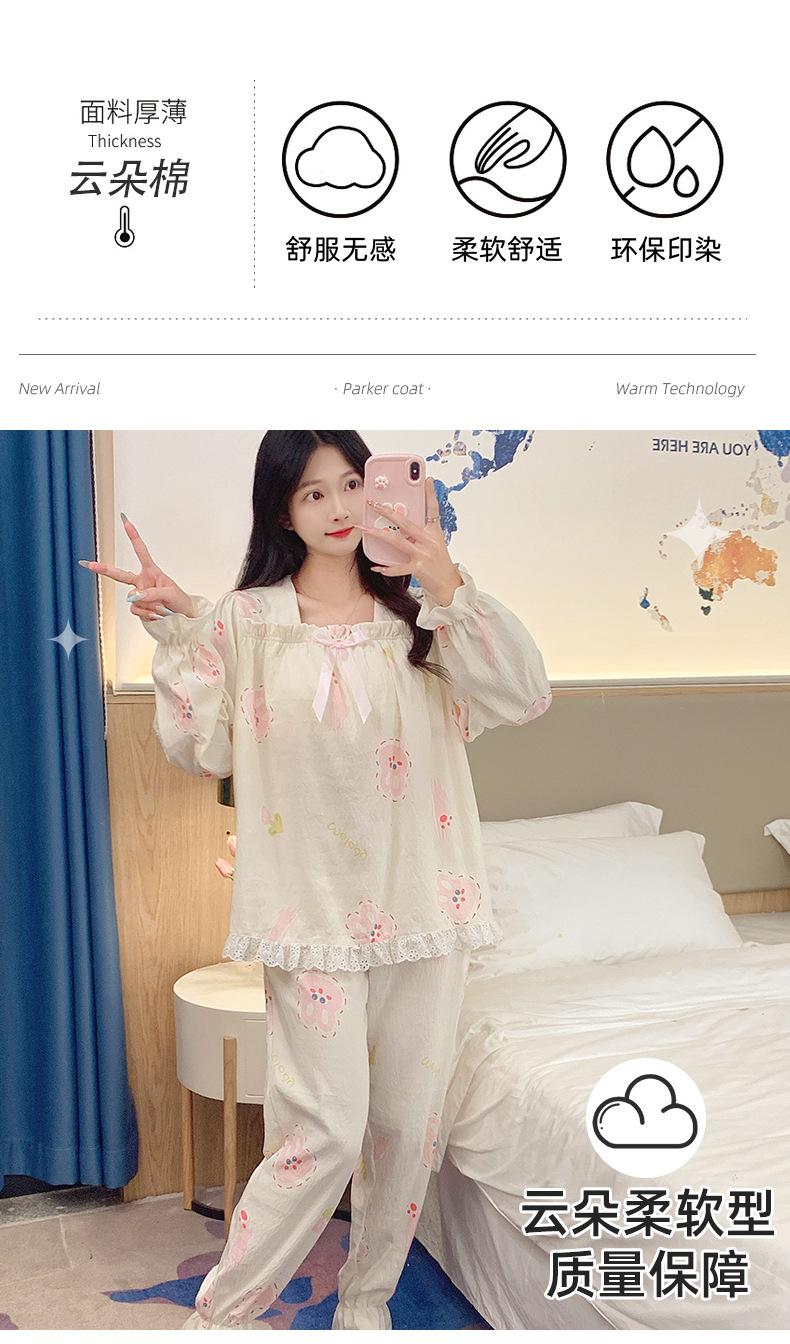 Pijamas de algodón con nubes para mujer, primavera y otoño, nuevo estilo princesa dulce, traje de manga larga, ropa holgada para el hogar de niña para uso exterior.