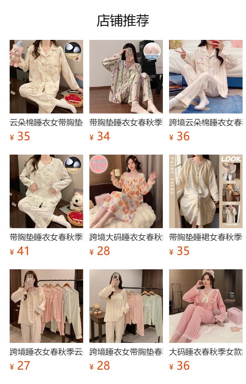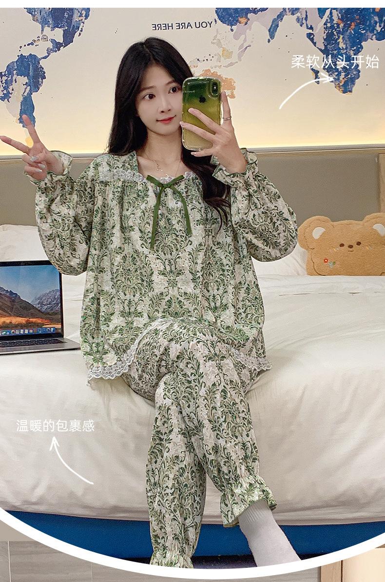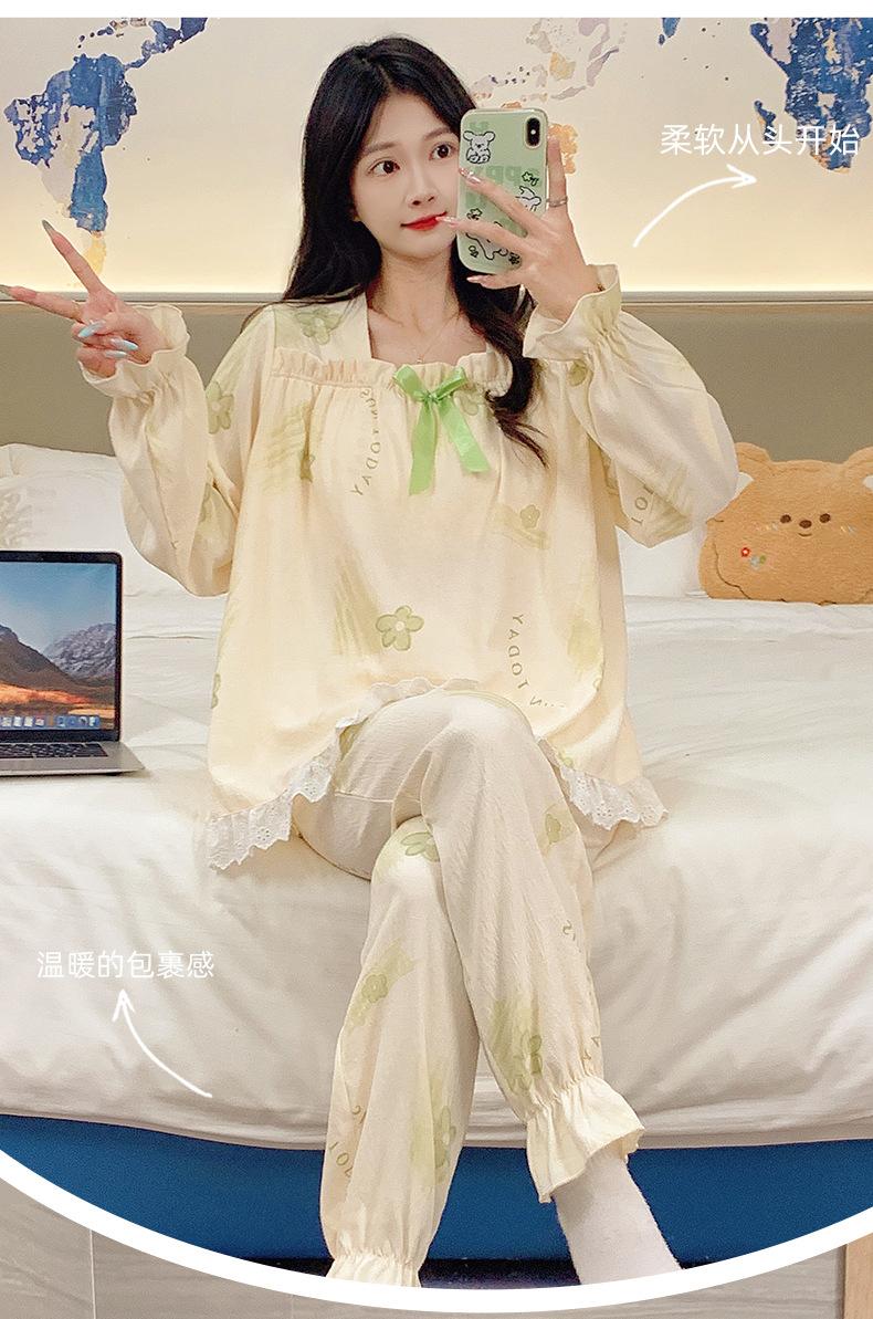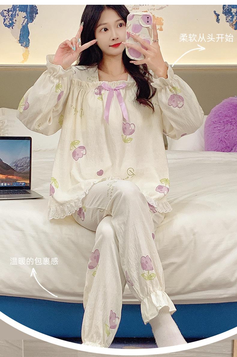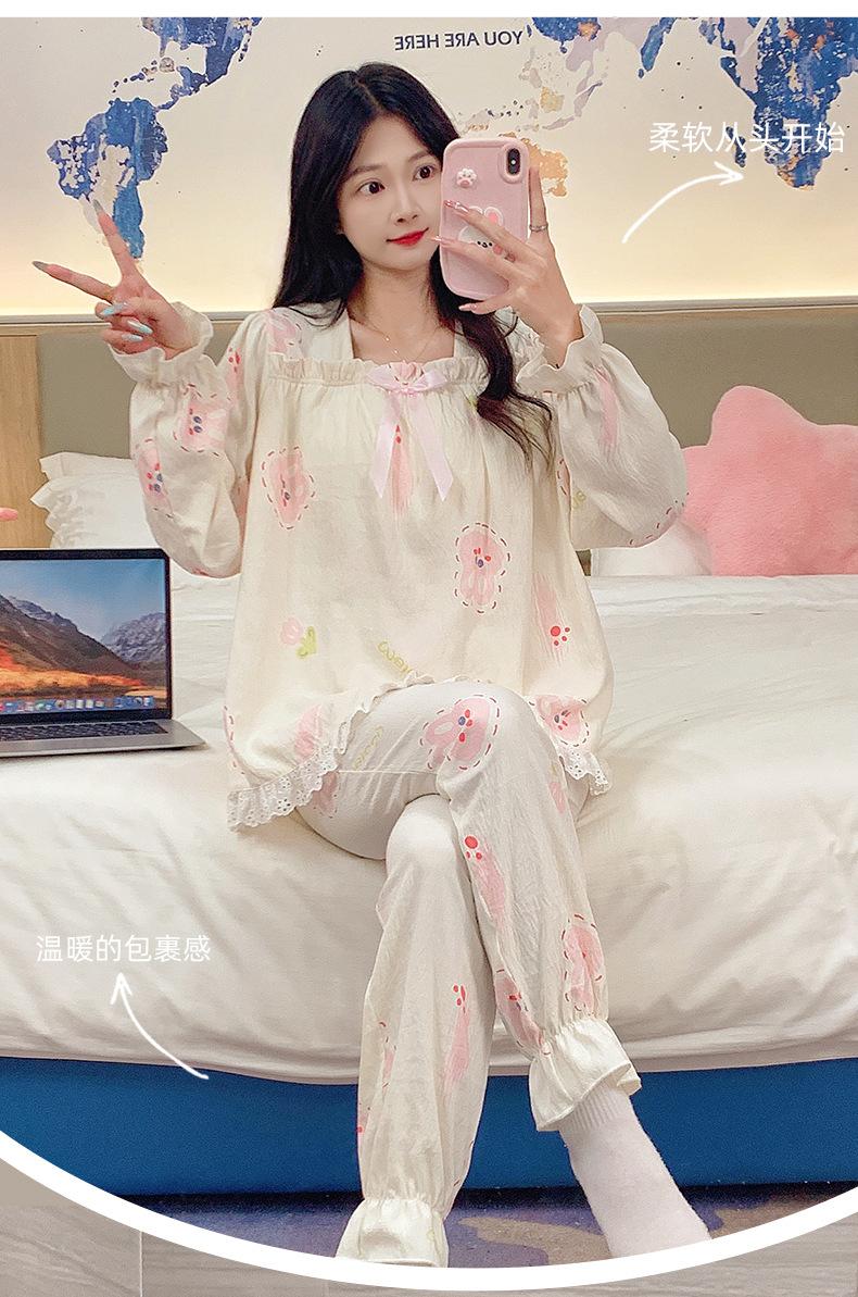 Pijamas de algodón con nubes para mujer, primavera y otoño, nuevo estilo princesa dulce, traje de manga larga, ropa holgada para el hogar de niña para uso exterior.