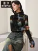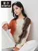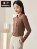 Zhen Xi Suéter de Manga Larga con Cuello Redondo para Mujer, Costuras en Color Contrastante, Corte Ajustado, Top Casual de Moda SP593