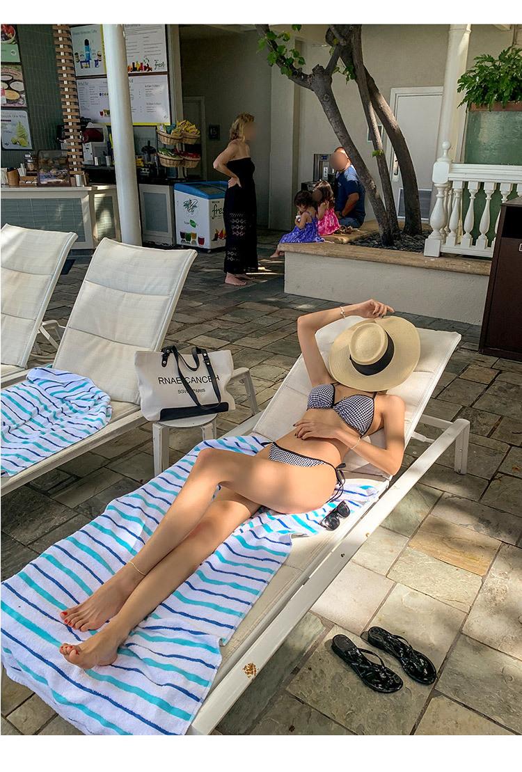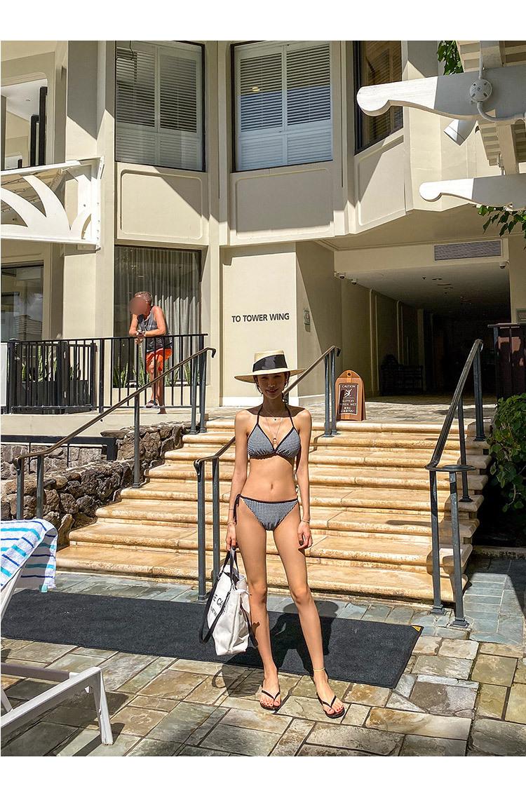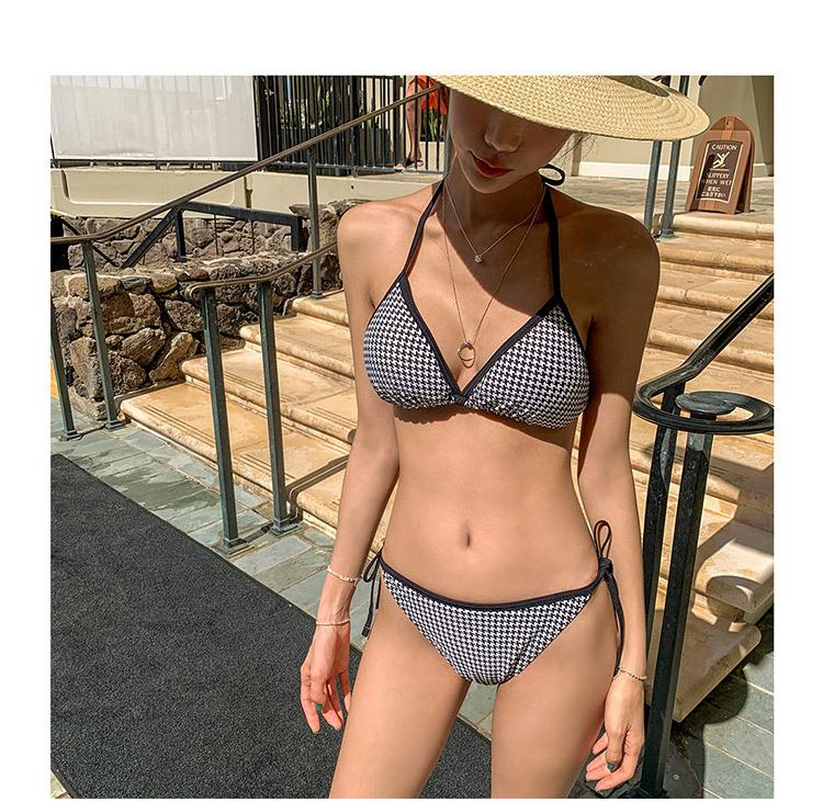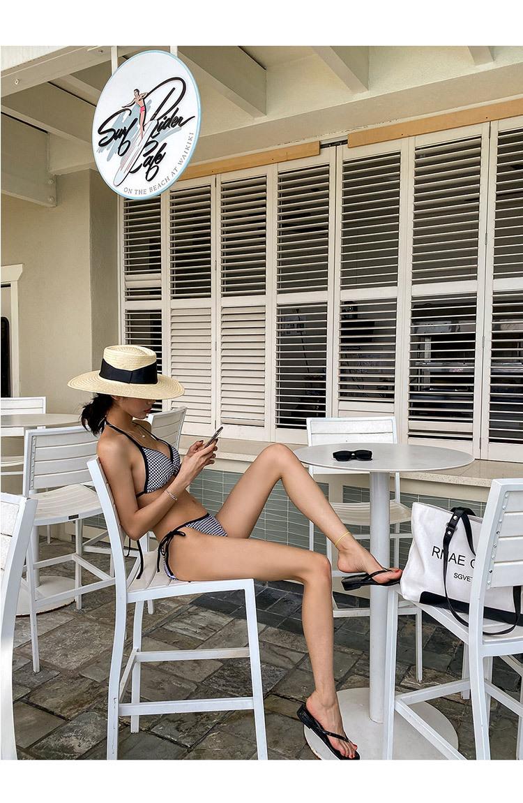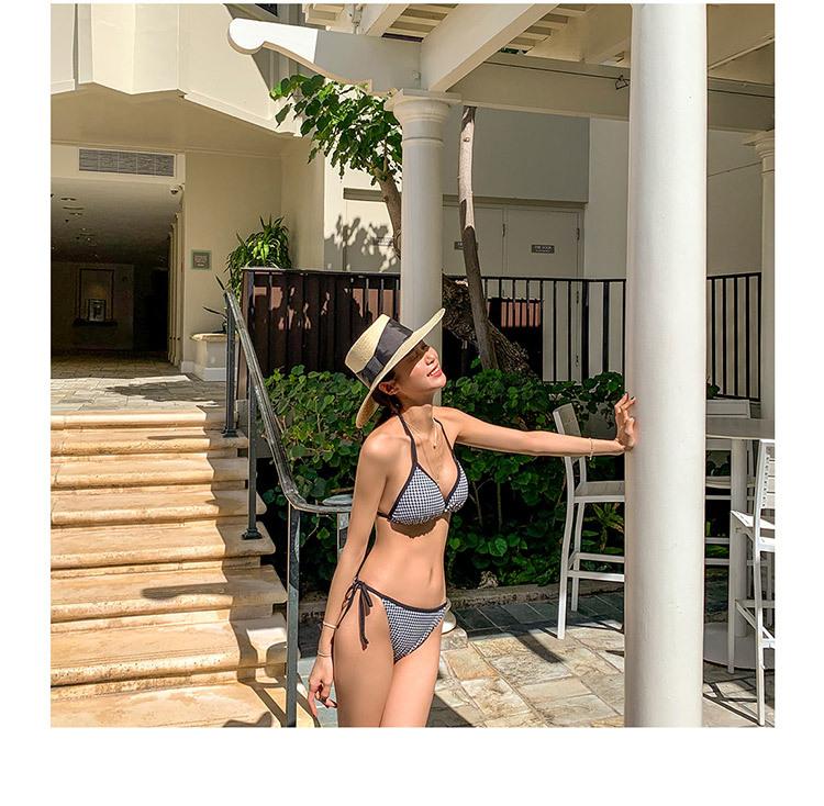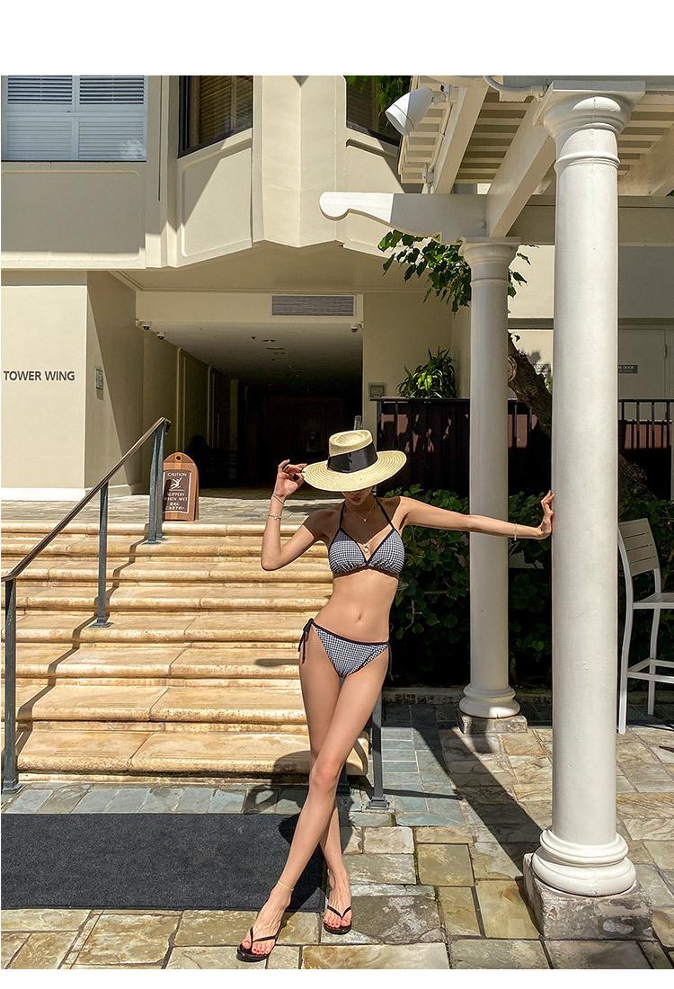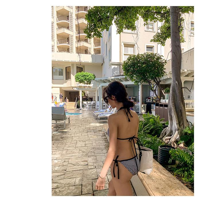Traje de baño Daifa Fresh Style con abertura en la espalda y cordones, estilo pequeño a cuadros, bikini sexy de cintura baja a la moda coreana