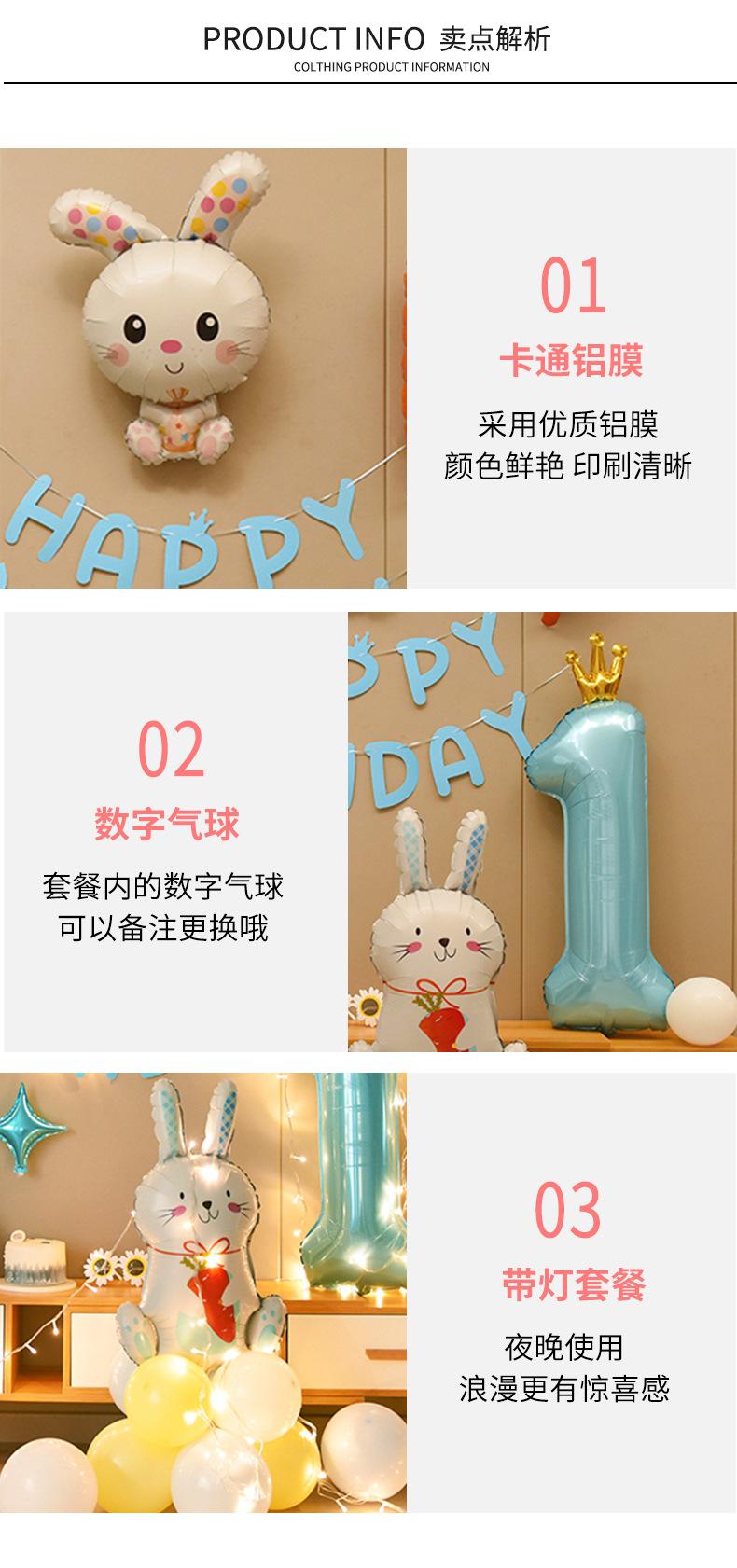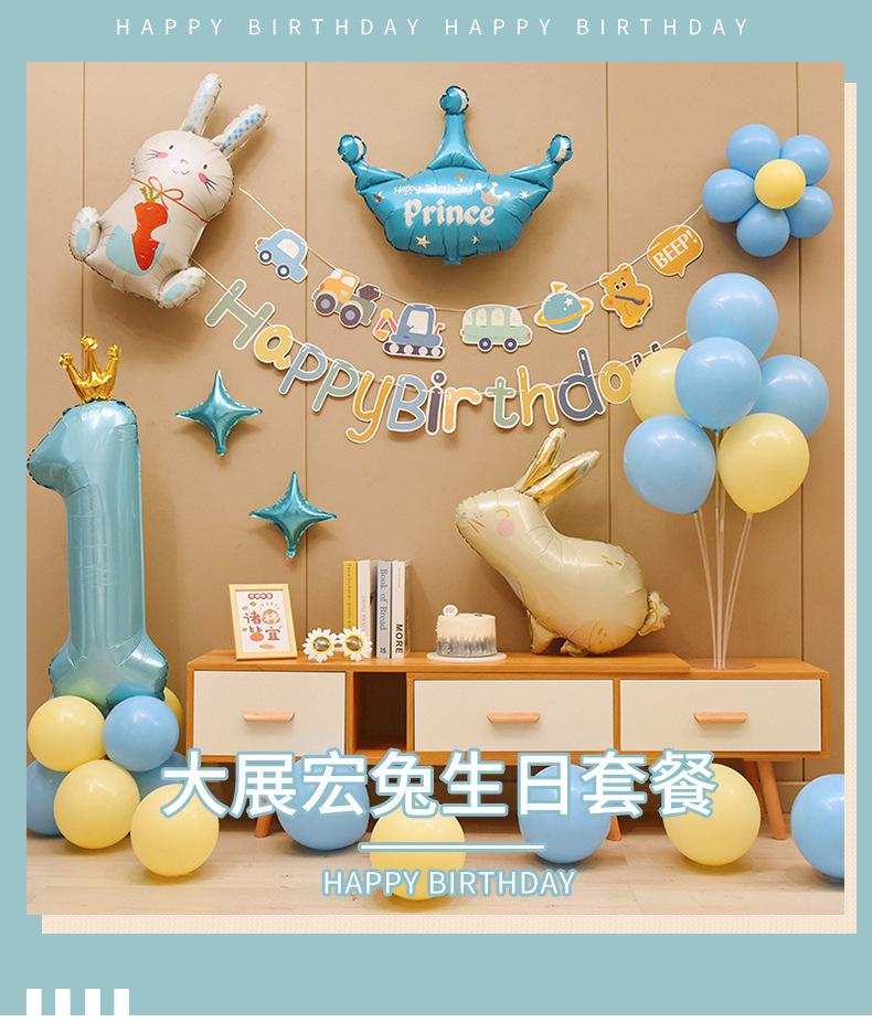 Globo Decorativo de Segundo Cumpleaños de Conejito Azul para Niño, Suministros para Diseño de Escena de Fondo de Pared para Niños