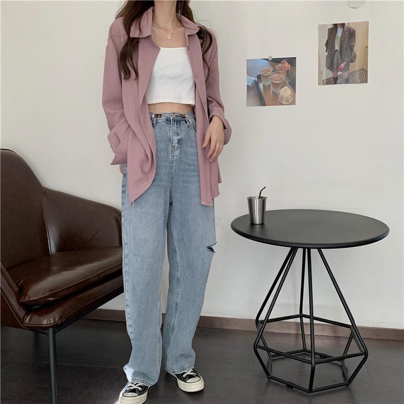 Cárdigan de gasa transpirable de estilo veraniego, chaqueta con protección solar, camisa de moda para mujer, camisa fina y holgada estilo coreano 2024