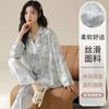 Pijamas de seda de hielo para mujer, primavera y otoño, elegantes pantalones de manga larga rosas, ropa fina de seda de dos piezas para el hogar, venta al por mayor