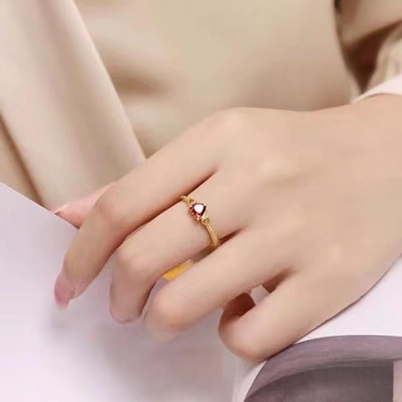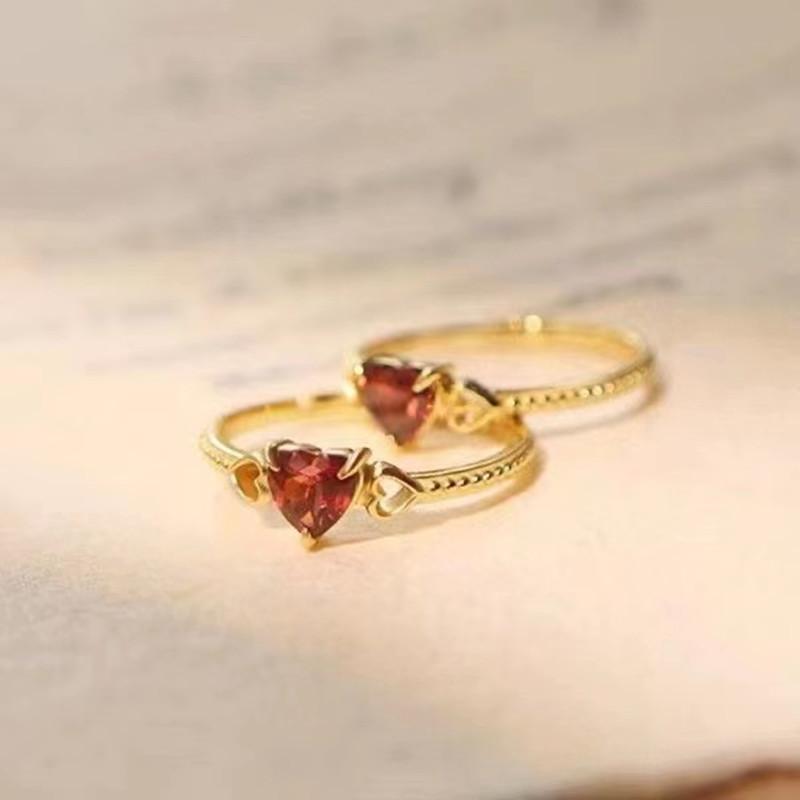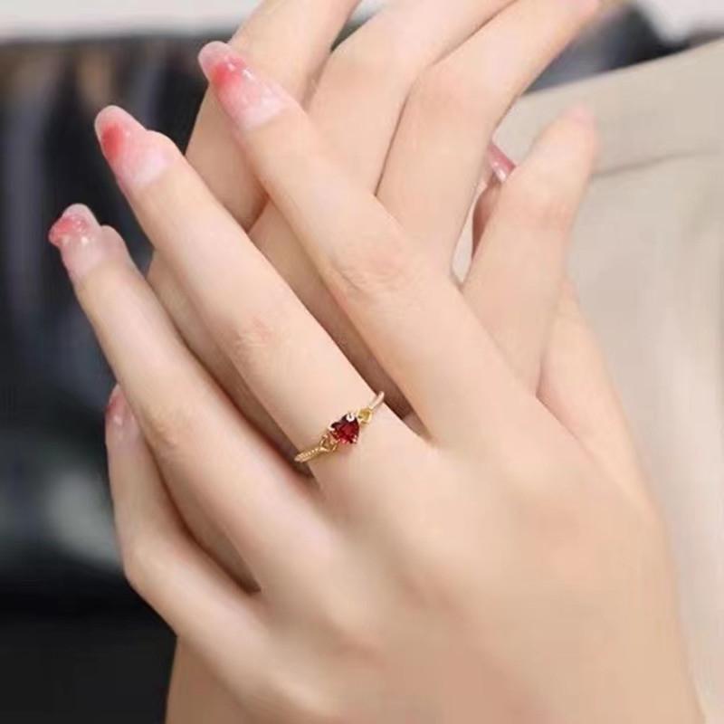 Nuevo anillo rojo granate con forma de corazón de amor para mujer, nicho, diseño abierto, moderno, simple, personalidad, moderno, estilo de lujo ligero