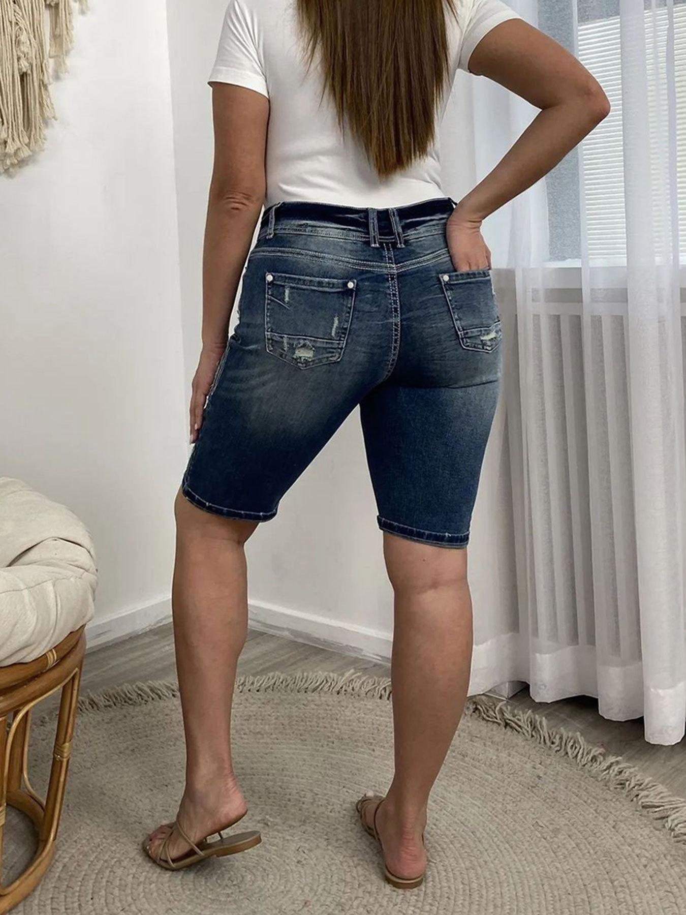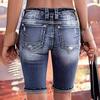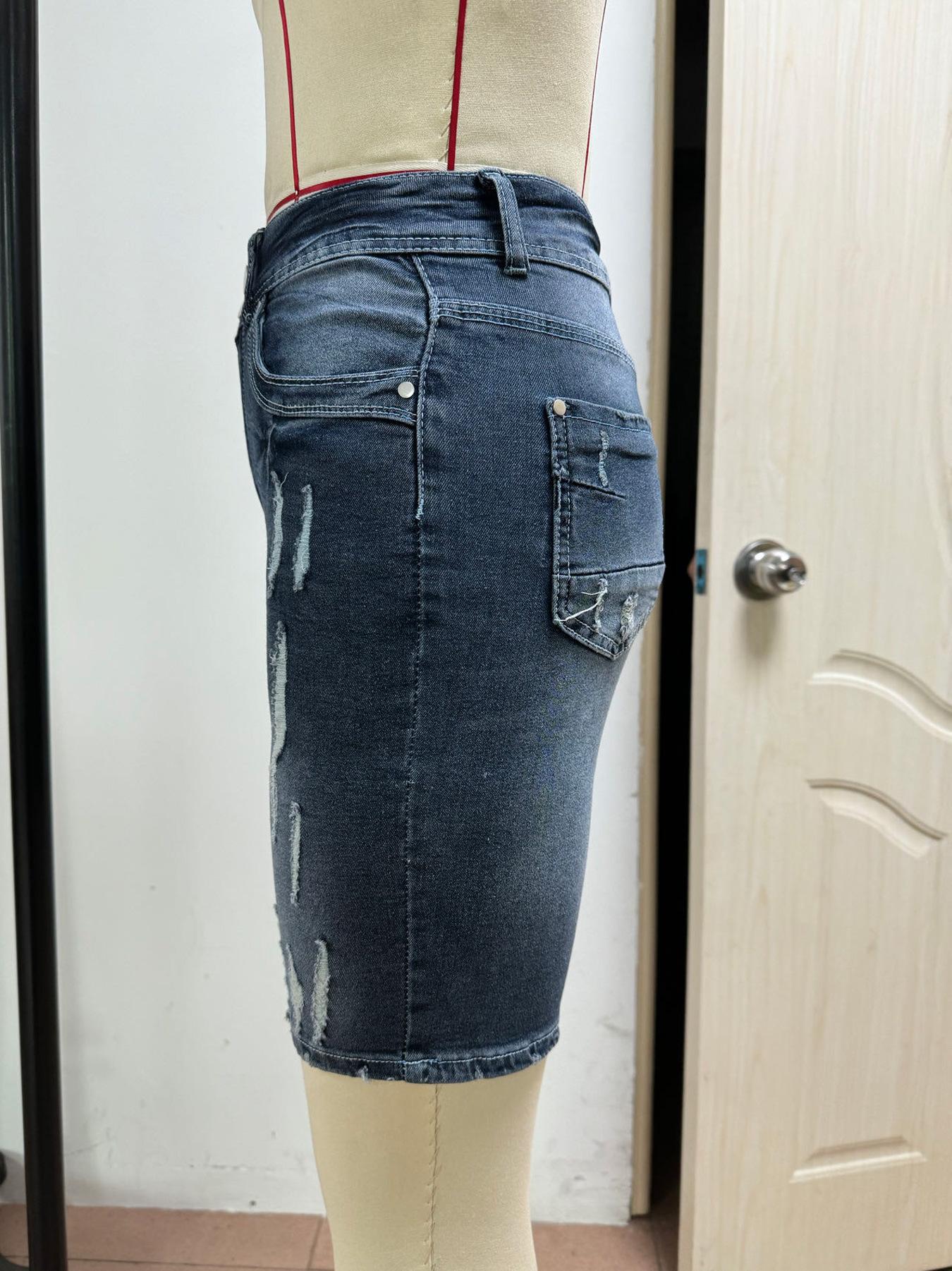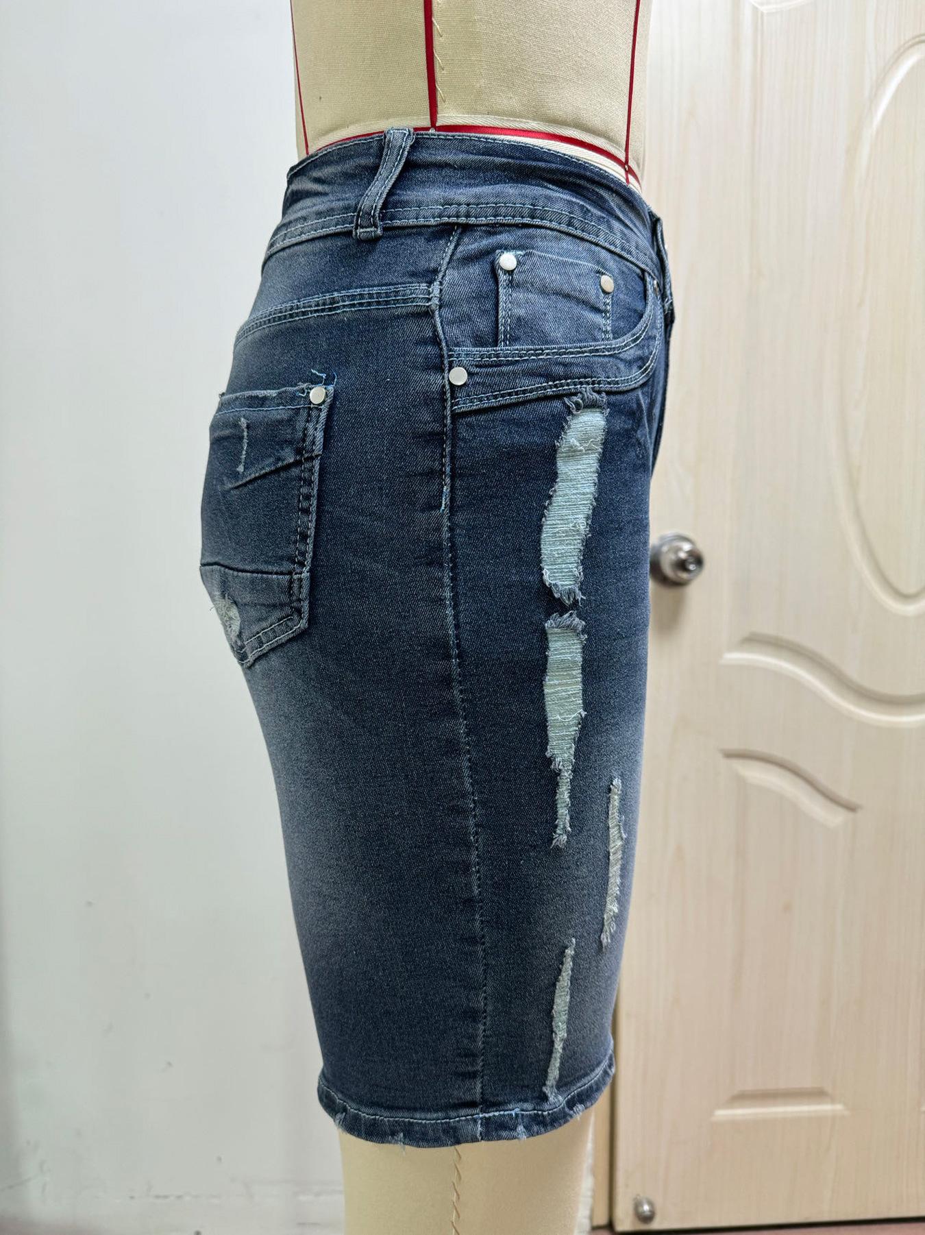 Ropa Europea y Americana Transfronteriza Estación Independiente de Amazon Denim Pantalones Medios Lavados Rotos Jeans Elásticos para Mujer Tendencia Urbana