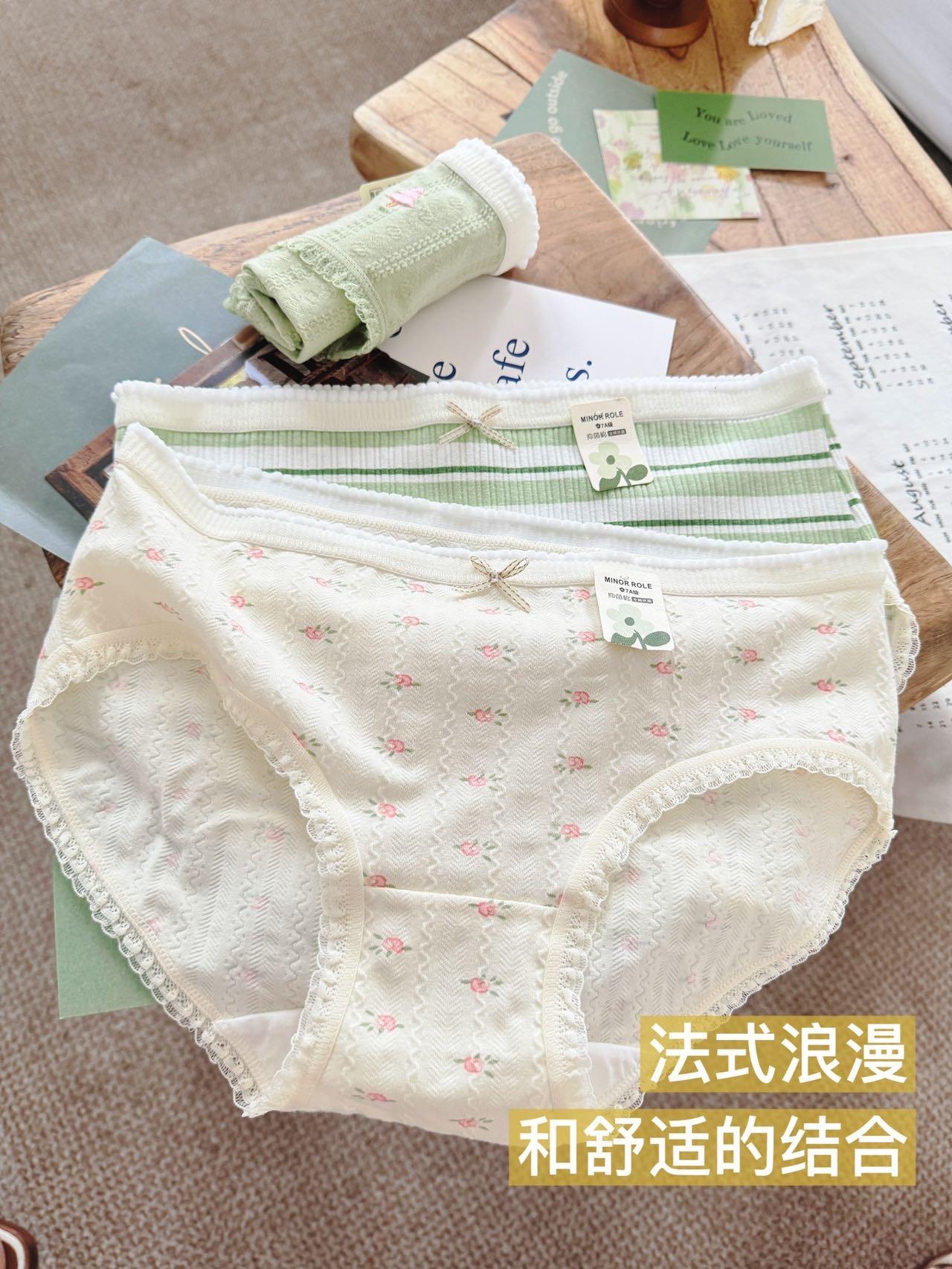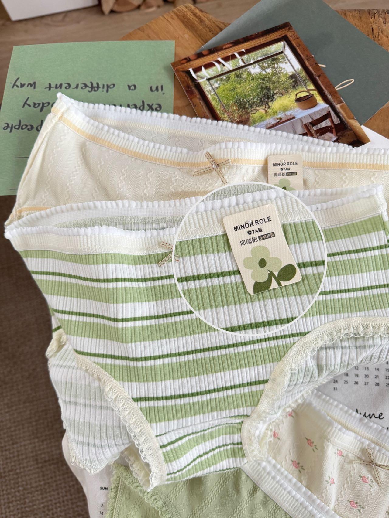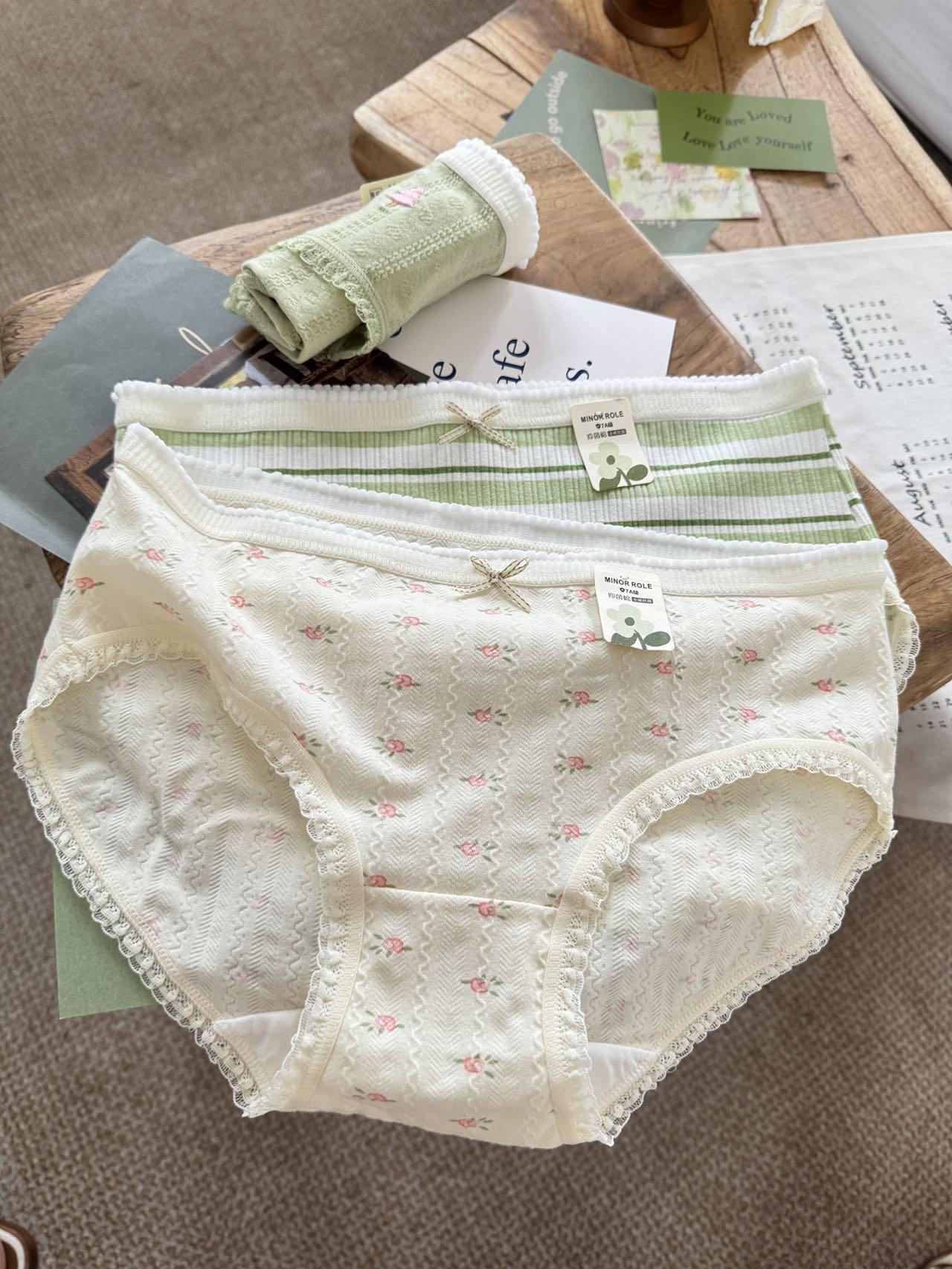 Ropa Interior de Algodón Puro para Mujer de Cintura Media Cómoda Transpirable 7a Algodón para Bebé Entrepierna Antibacteriana Jacquard Algodón Puro Estilo Fresco Calzoncillos Florales