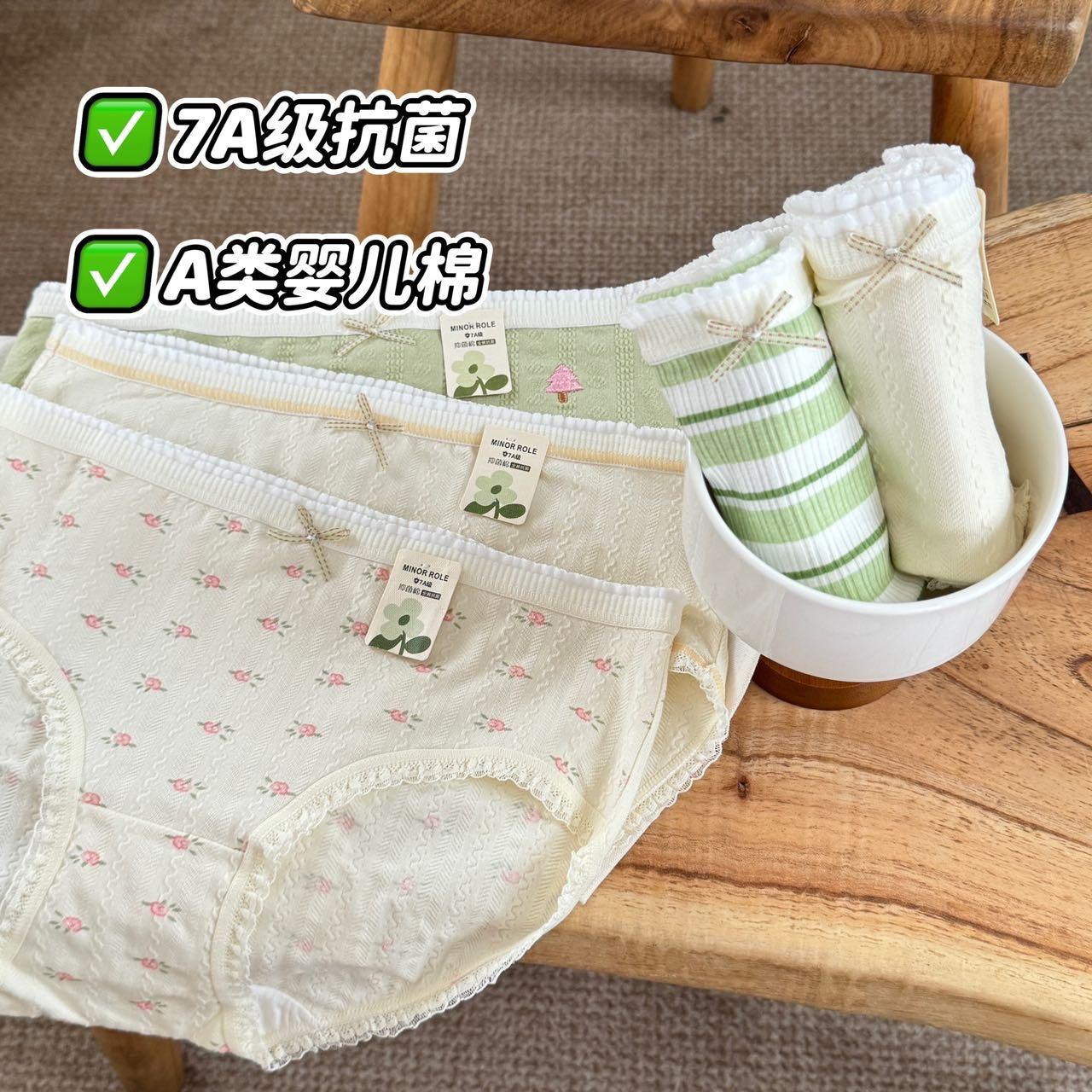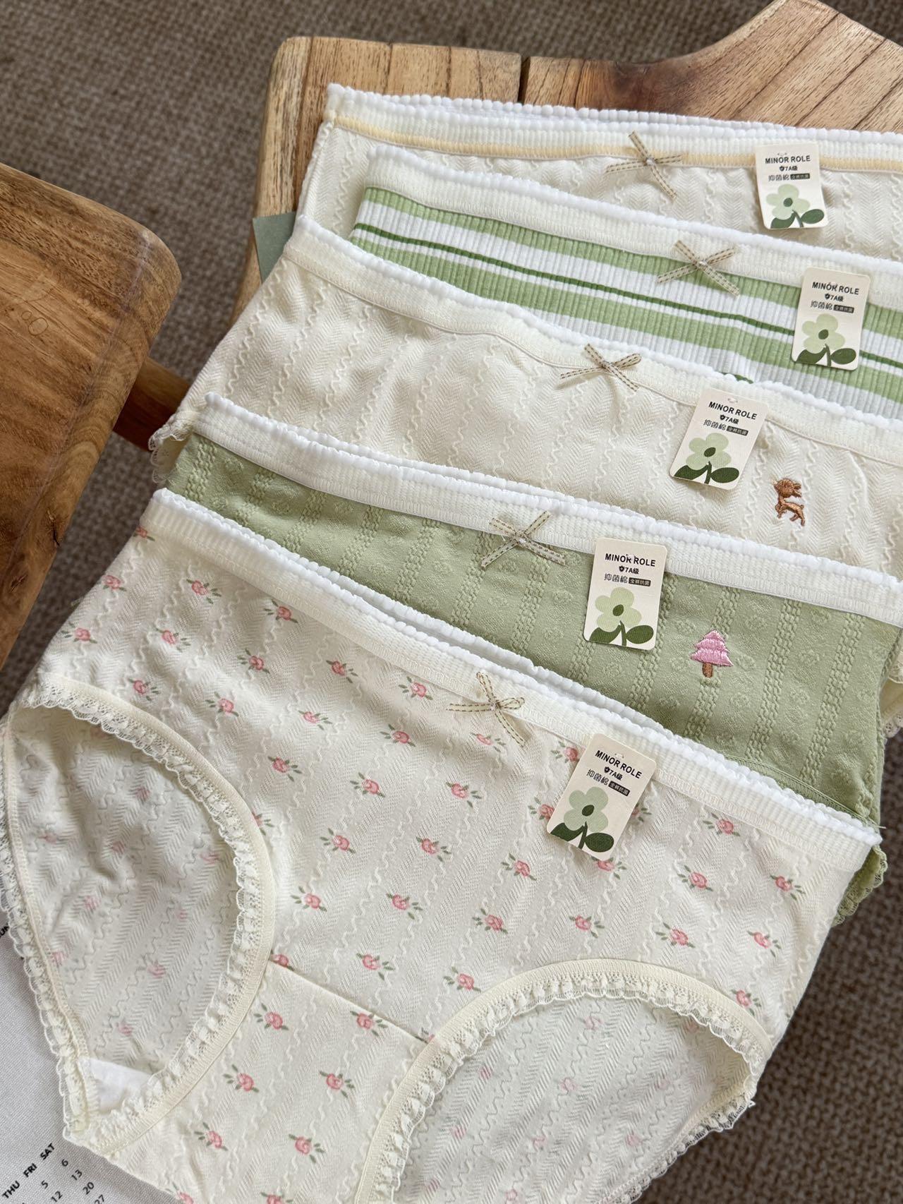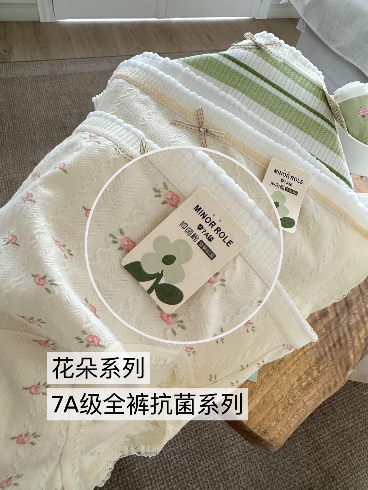Ropa Interior de Algodón Puro para Mujer de Cintura Media Cómoda Transpirable 7a Algodón para Bebé Entrepierna Antibacteriana Jacquard Algodón Puro Estilo Fresco Calzoncillos Florales