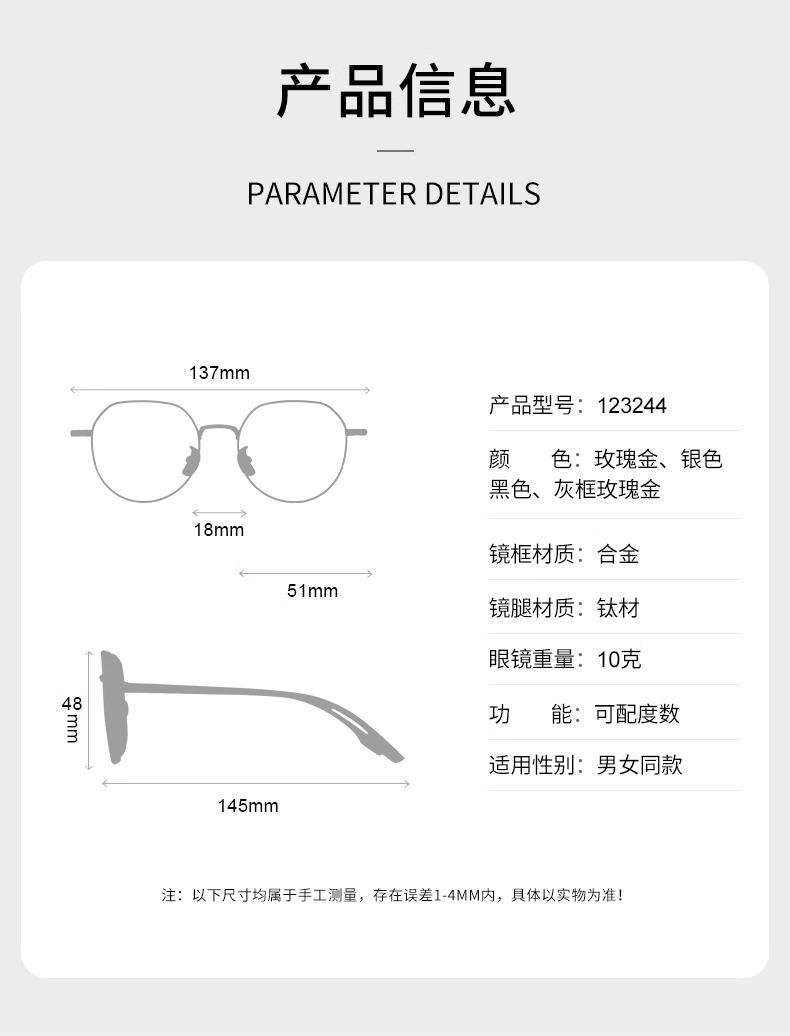 Gafas de miopía con montura poligonal retro de titanio para mujer, ultraligeras, 123245, montura de oro rosa, para hombre, venta al por mayor
