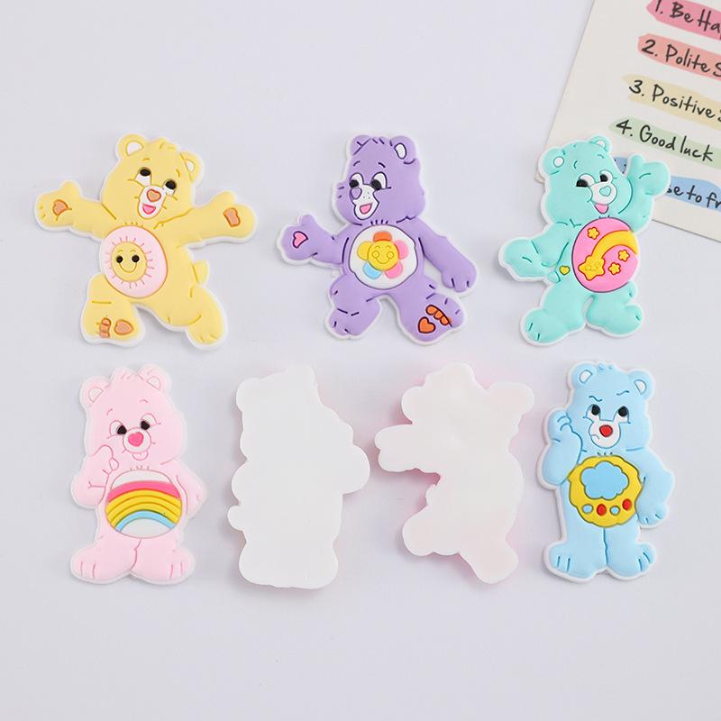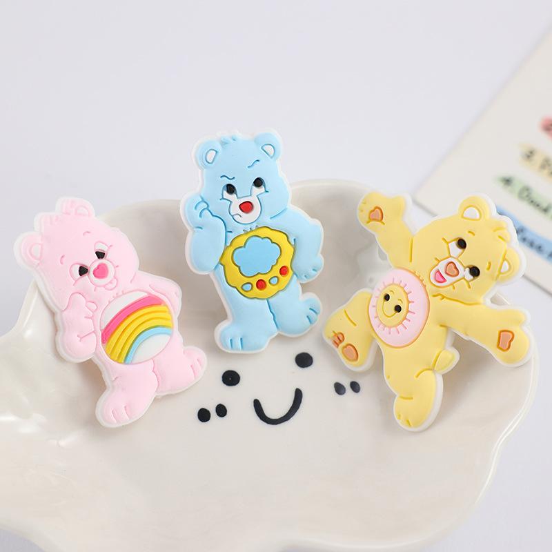 Pegamento suave de PVC con diseño de oso arcoíris, accesorios de joyería para hacer tú mismo, funda para teléfono móvil, agujeros para zapatos, decoración de tazas de agua, zapatillas, material de parche