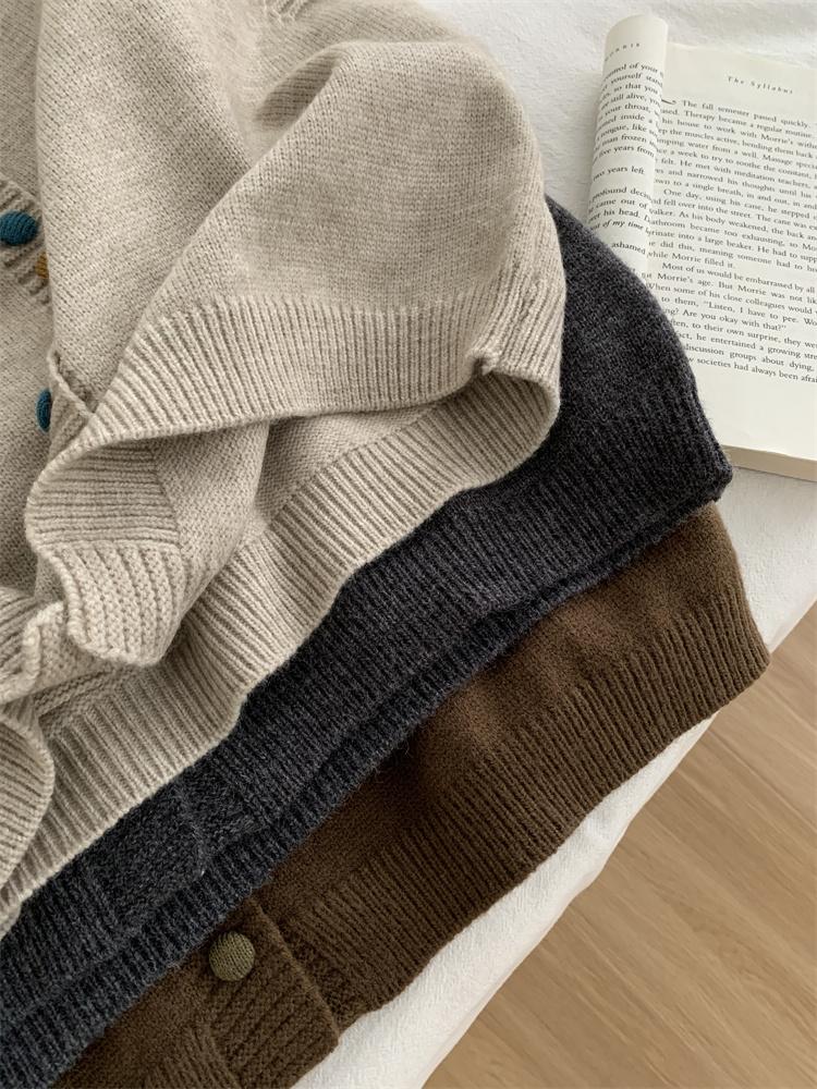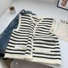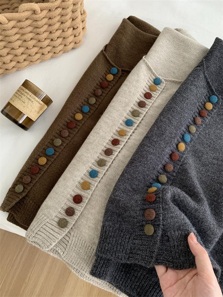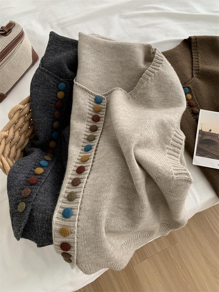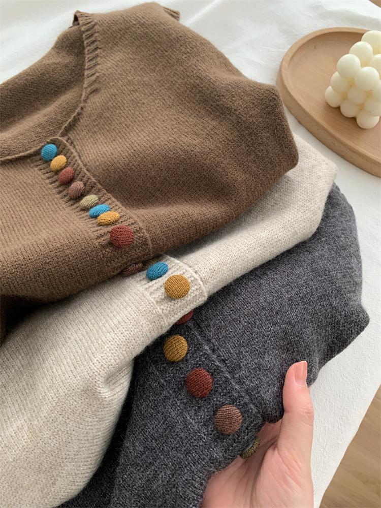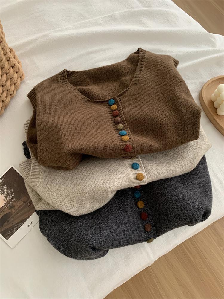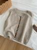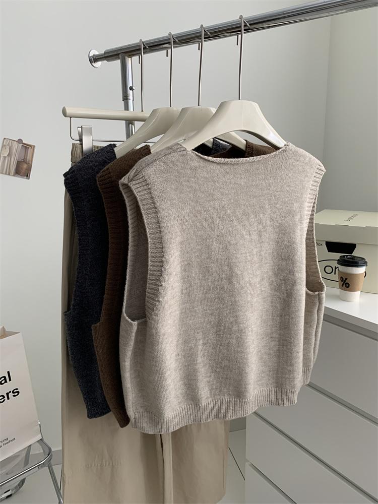 Chaleco de punto con cuello redondo y hebilla de color retro estilo coreano para mujer, cárdigan sin mangas apilado de otoño e invierno, chaleco tipo suéter antiedad que combina con todo.