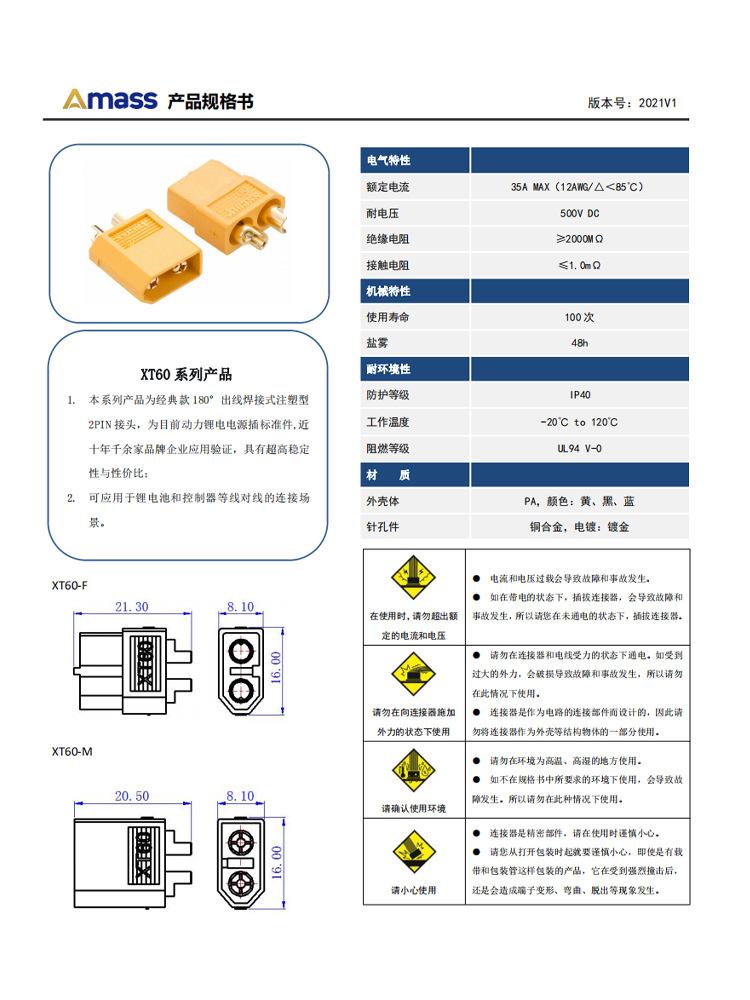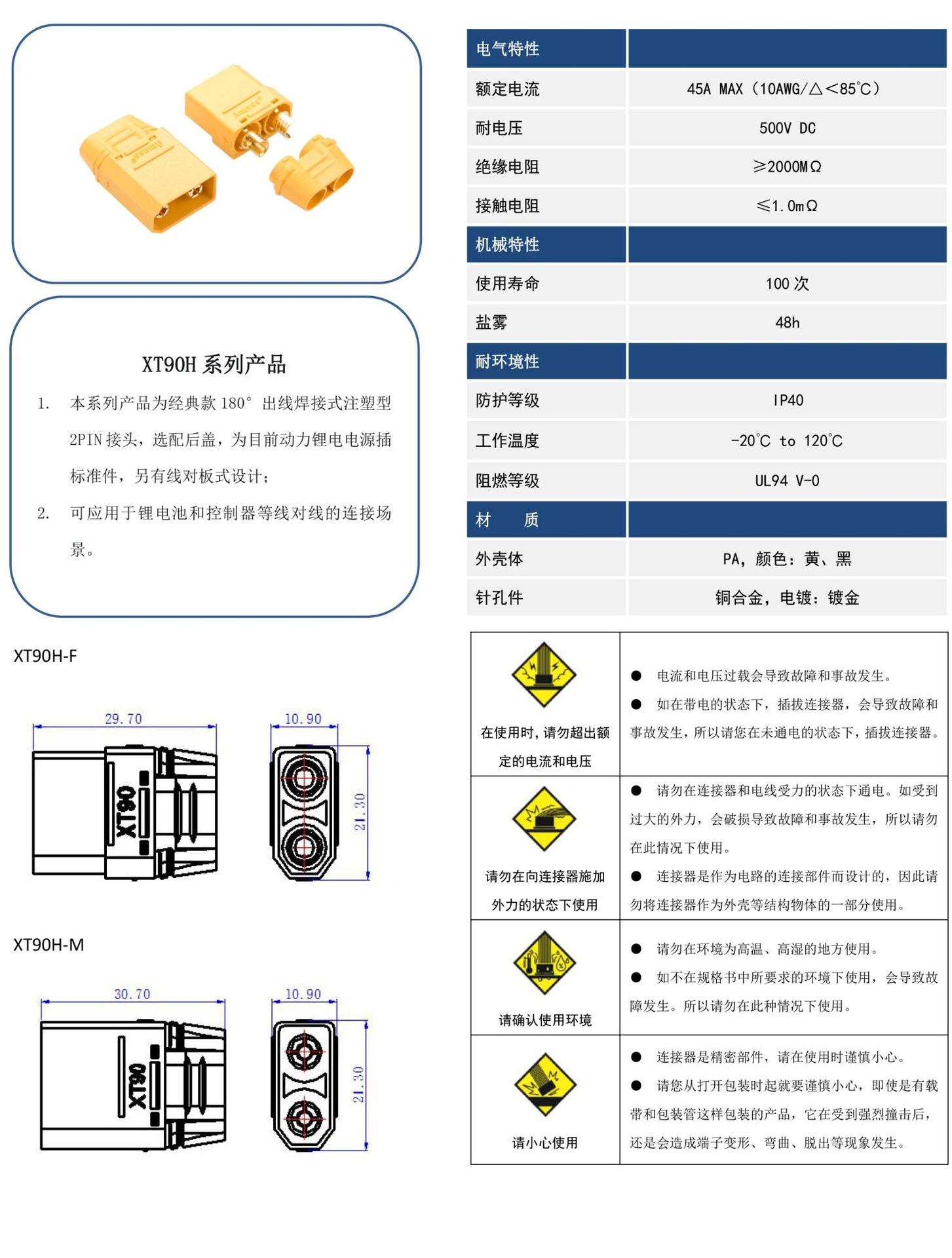 XT30U/XT60/XT60H/XT90H/XT90S-F/XT60E-M/XT60E-F/XT