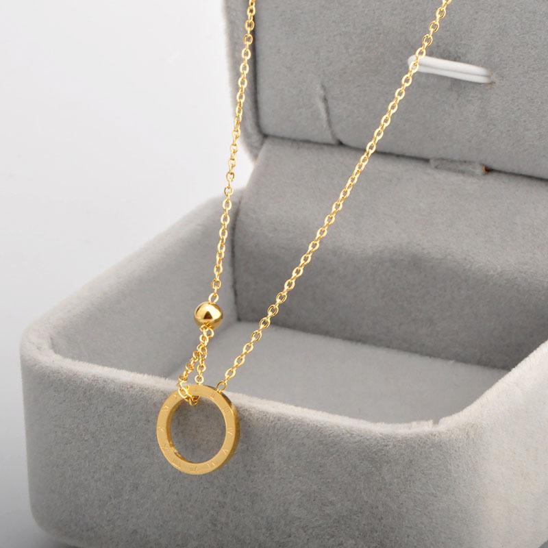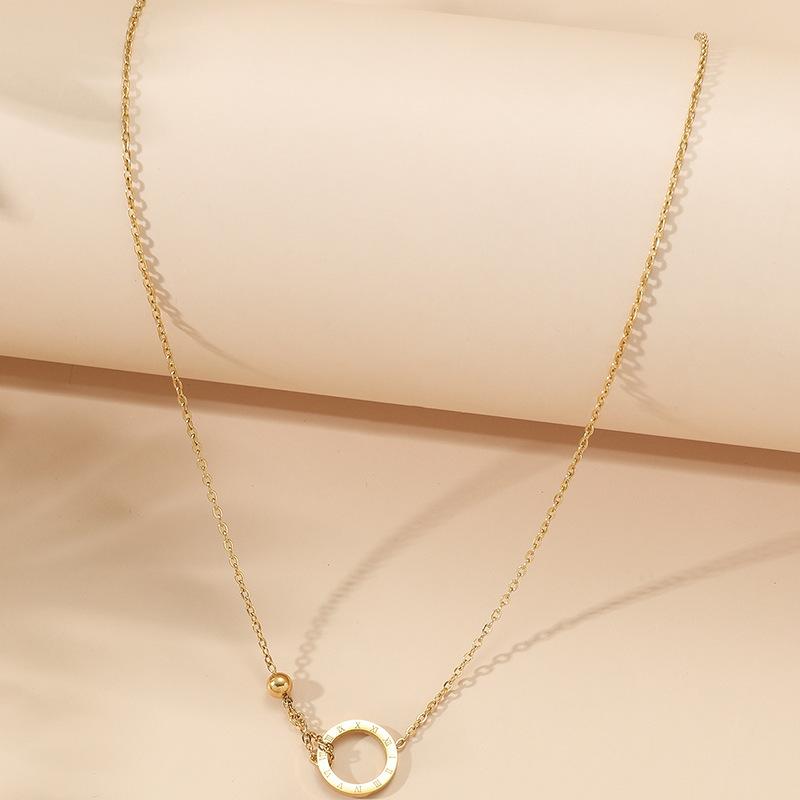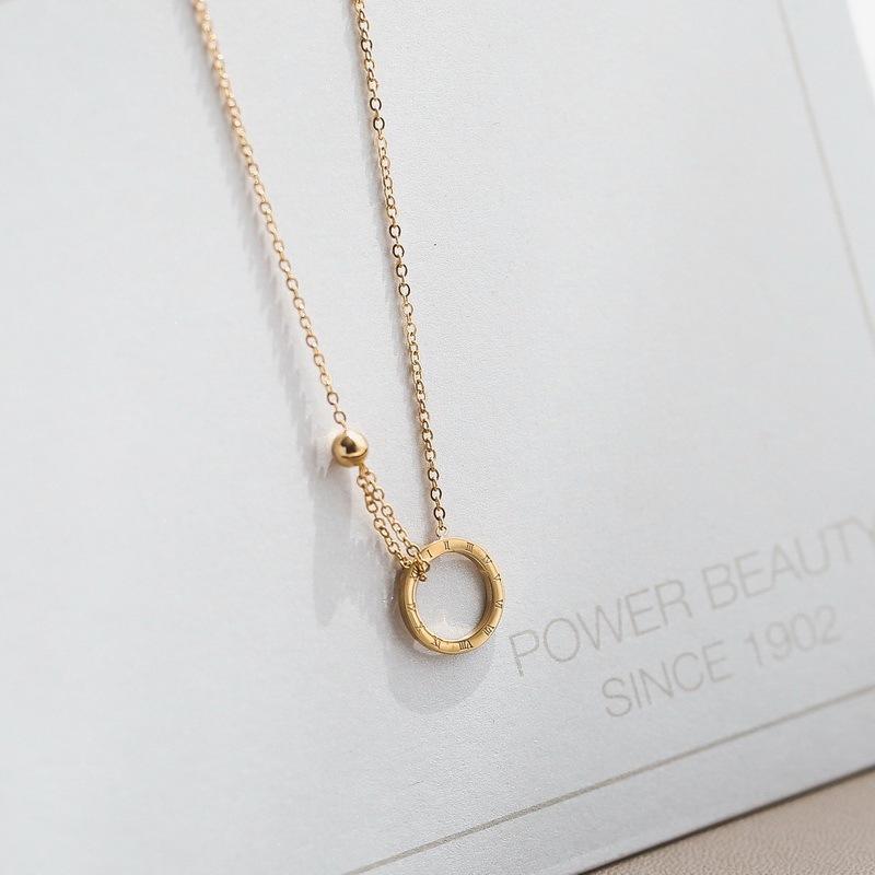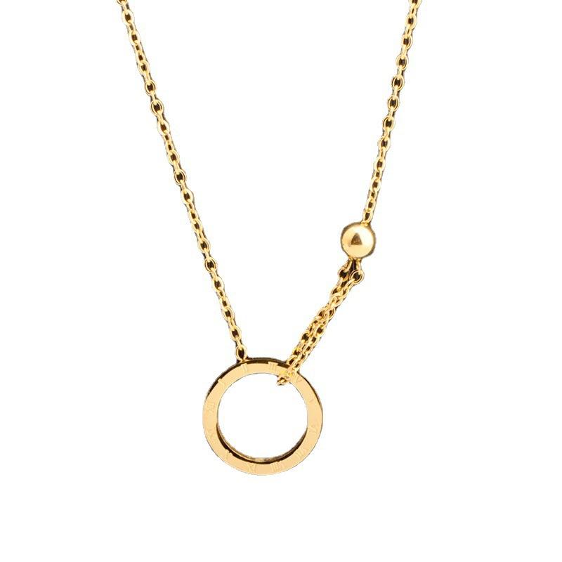 Collar de acero de titanio, estilo coreano, moda simple, estilo frío, anillo con letra romana, cadena de clavícula con bola de acero chapada en oro de 18 quilates.