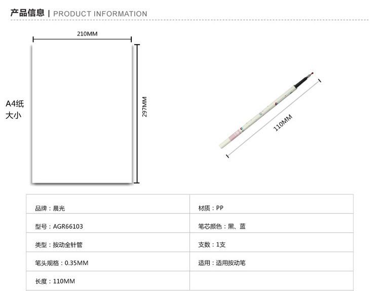 Chenguang AGR66103 esta serie de sabores Presiona recambio neutro 0.35mm tubo de aguja completa estudiante mina mayoreo