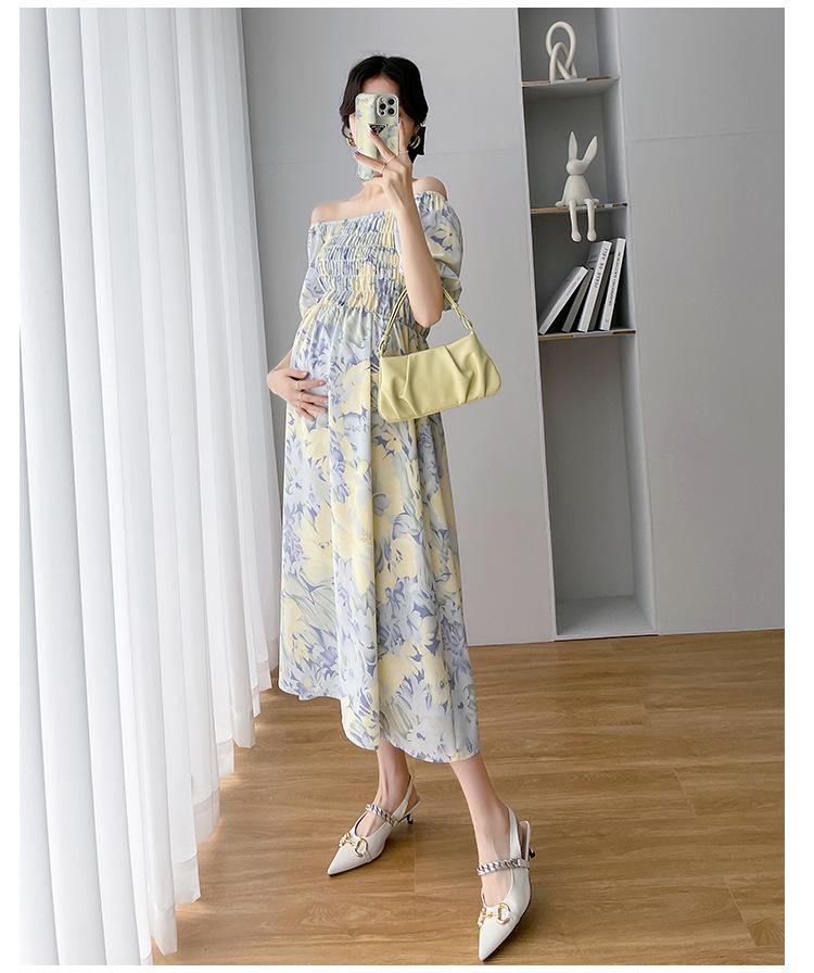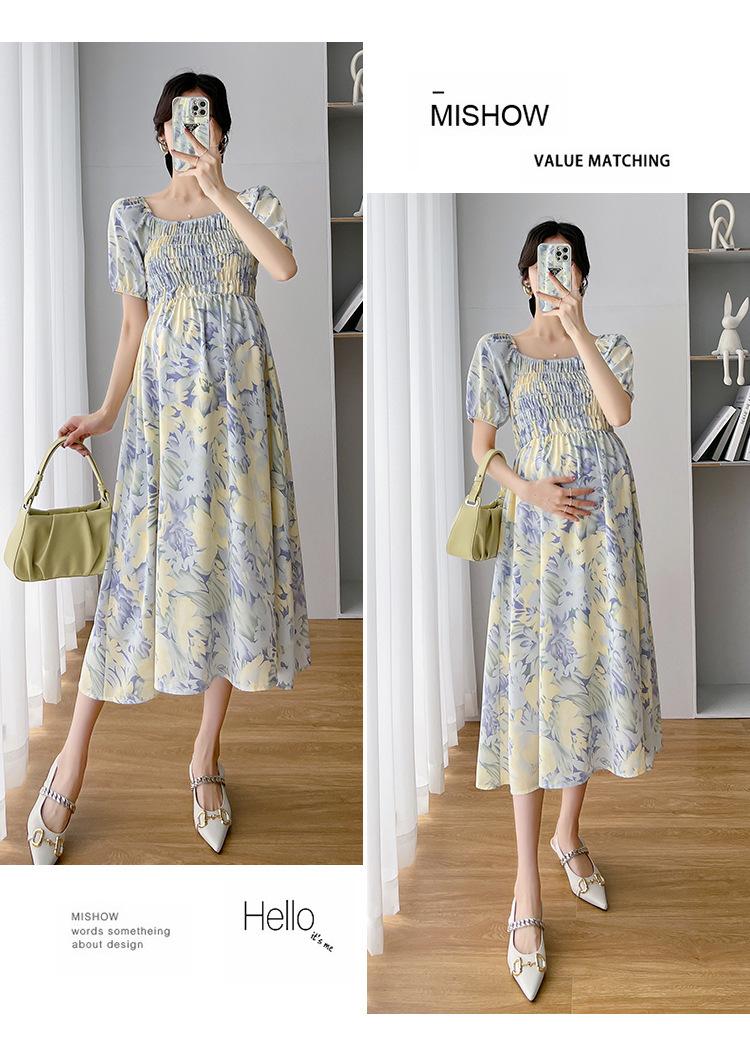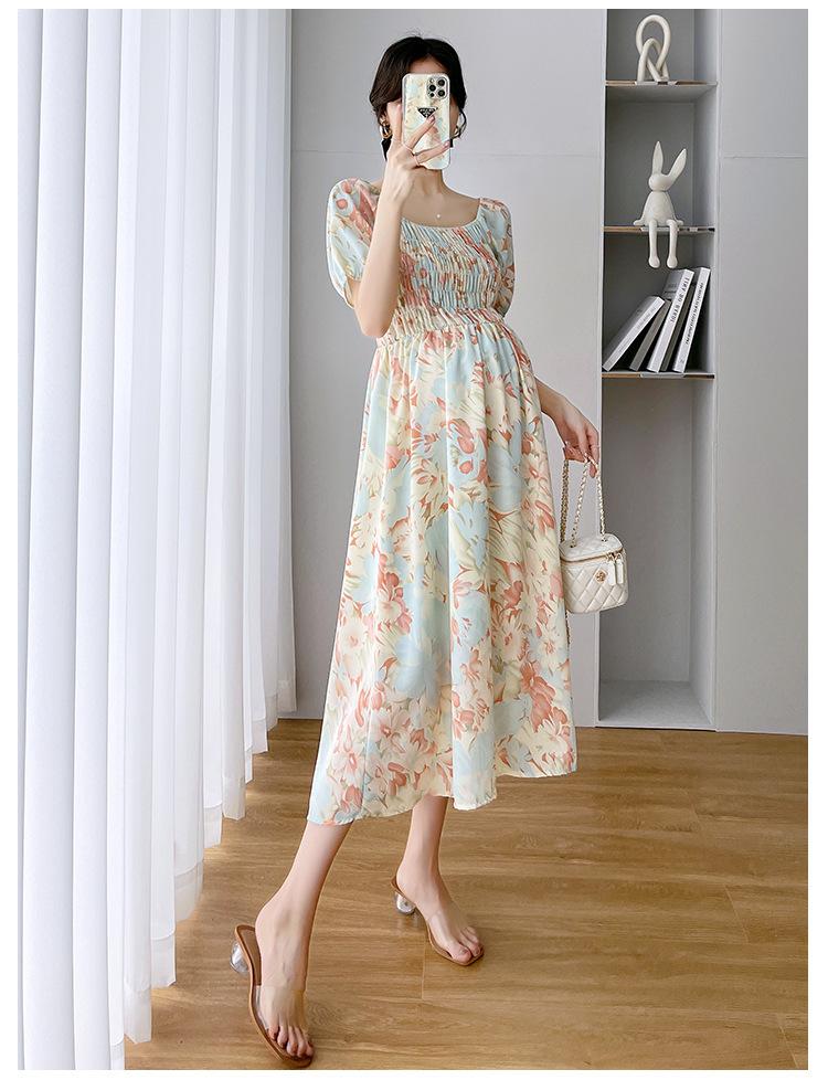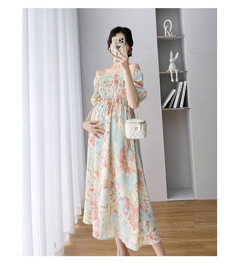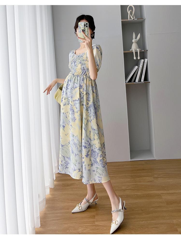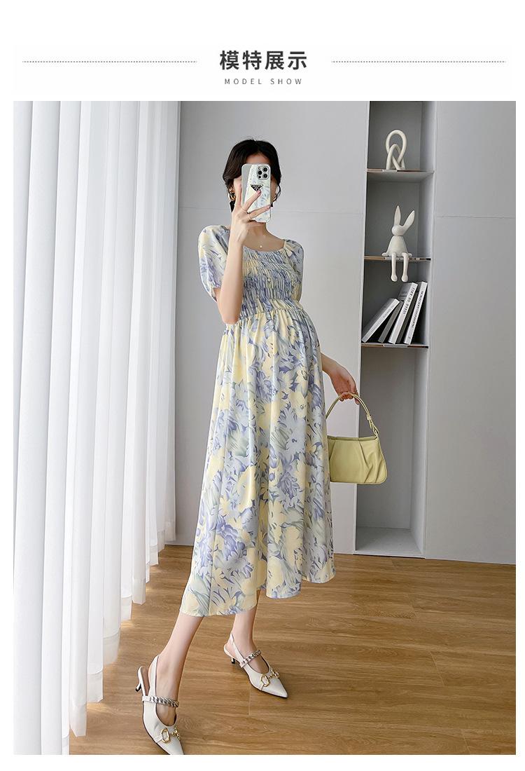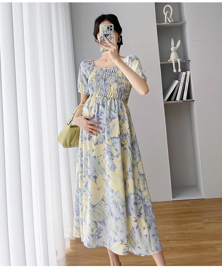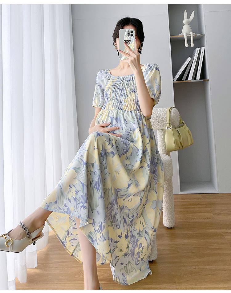 Vestido de Maternidad 2025 Color Verano Embarazo Estampado Falda Larga Vestido de Maternidad Camisón de Manga Corta Verano