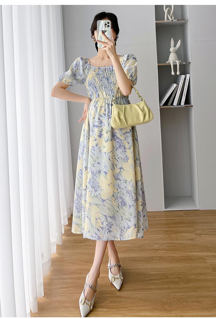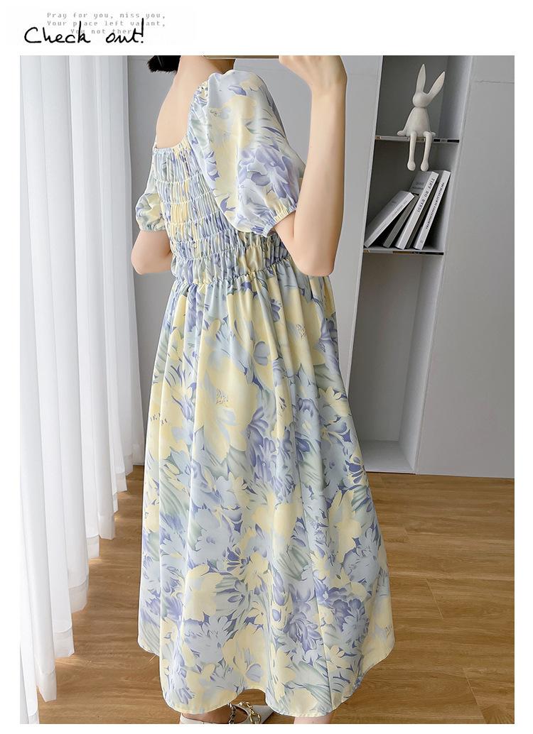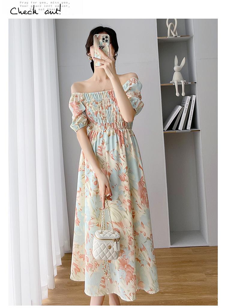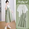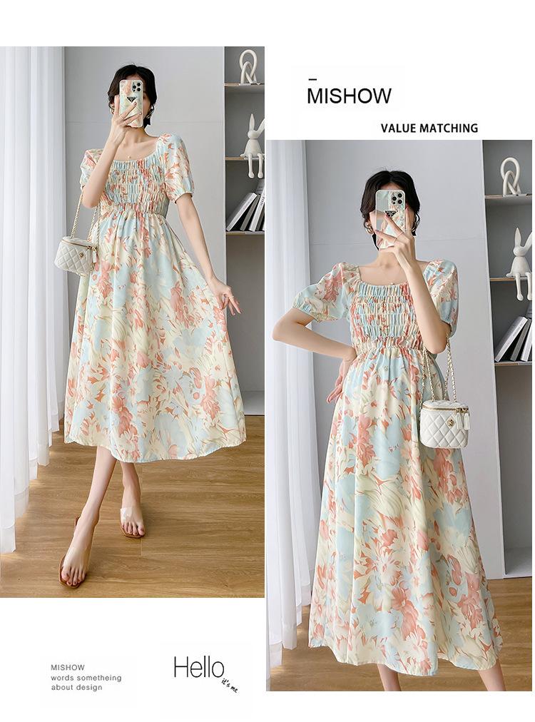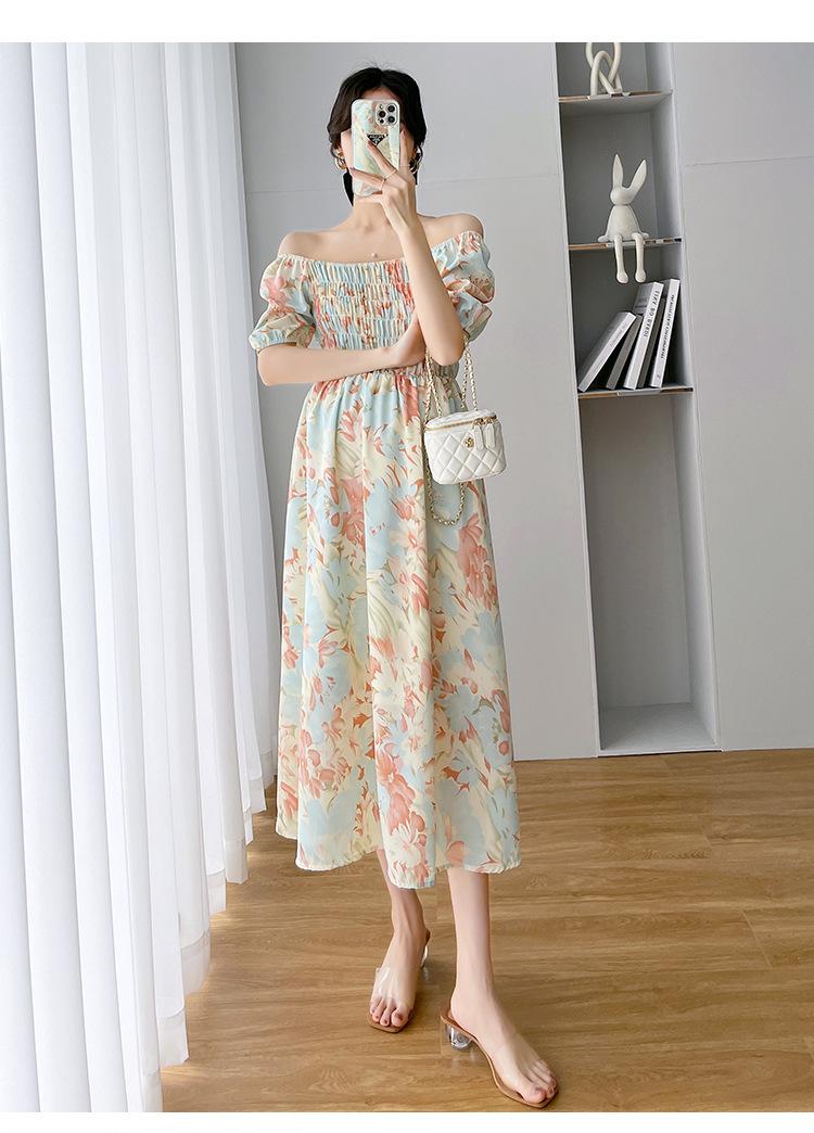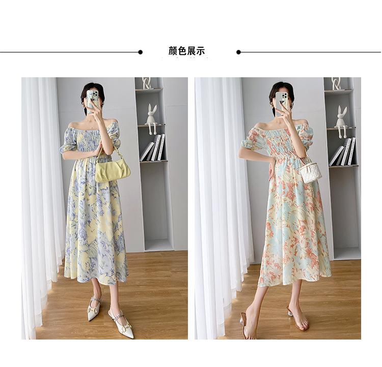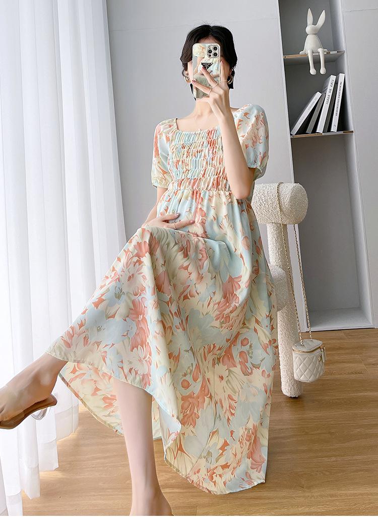 Vestido de Maternidad 2025 Color Verano Embarazo Estampado Falda Larga Vestido de Maternidad Camisón de Manga Corta Verano