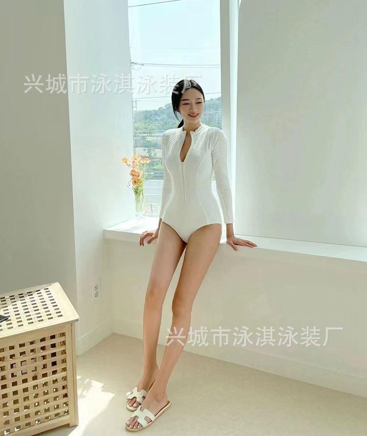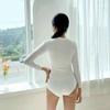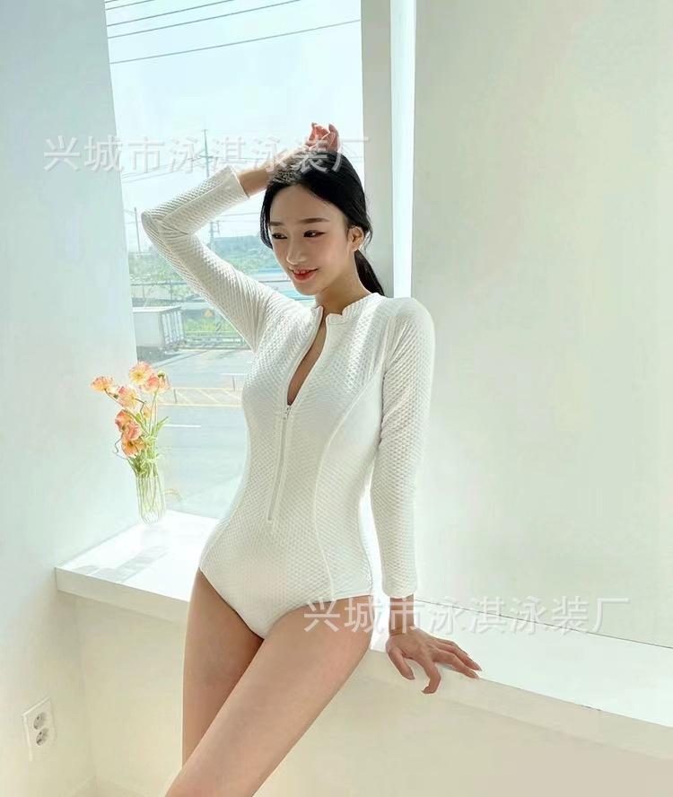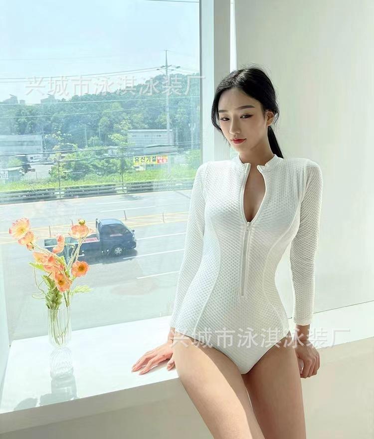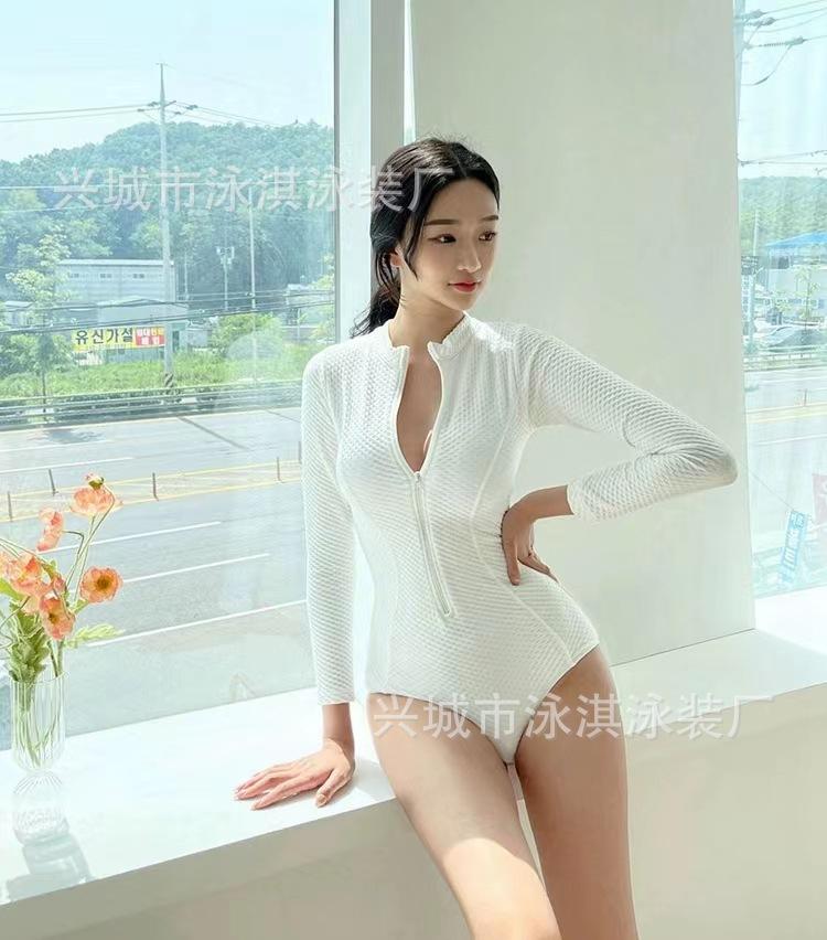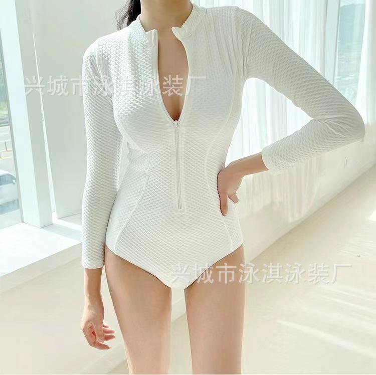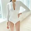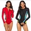 Elegante Traje de Baño Deportivo Adelgazante de Corte Slim-Fit de Cuello Alto de Manga Larga con Cremallera para Mujer, Traje de Buceo para Snorkel, Surf, Buceo