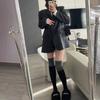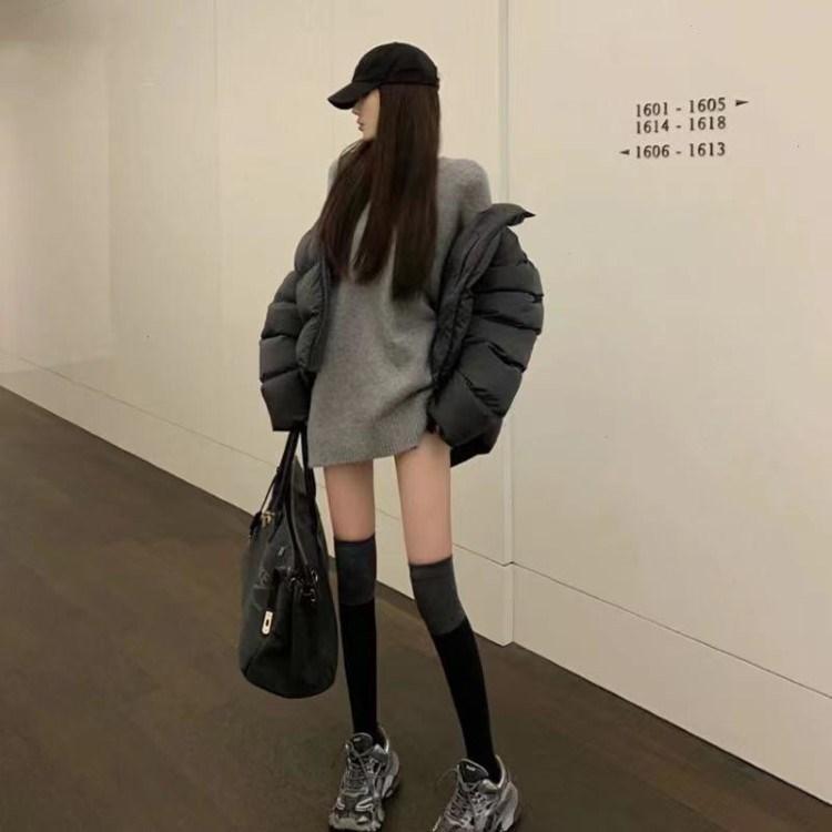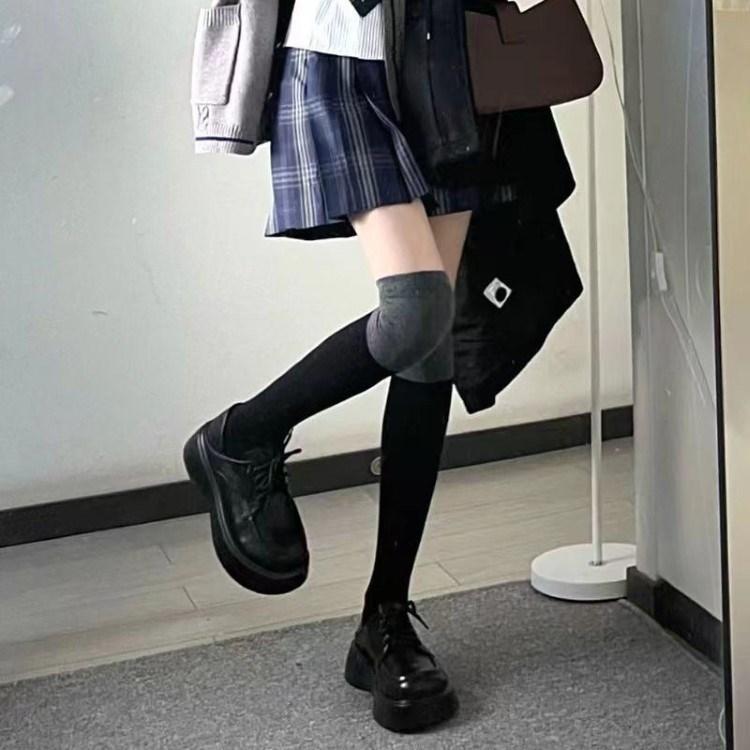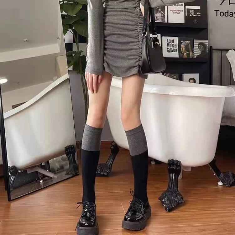 Calcetines de pantorrilla empalmados para mujer, modernos y versátiles, estilo Harajuku, uniforme Jk, negros transpirables, calcetines hasta la rodilla con bloques de color para celebridad de Internet, piernas hermosas