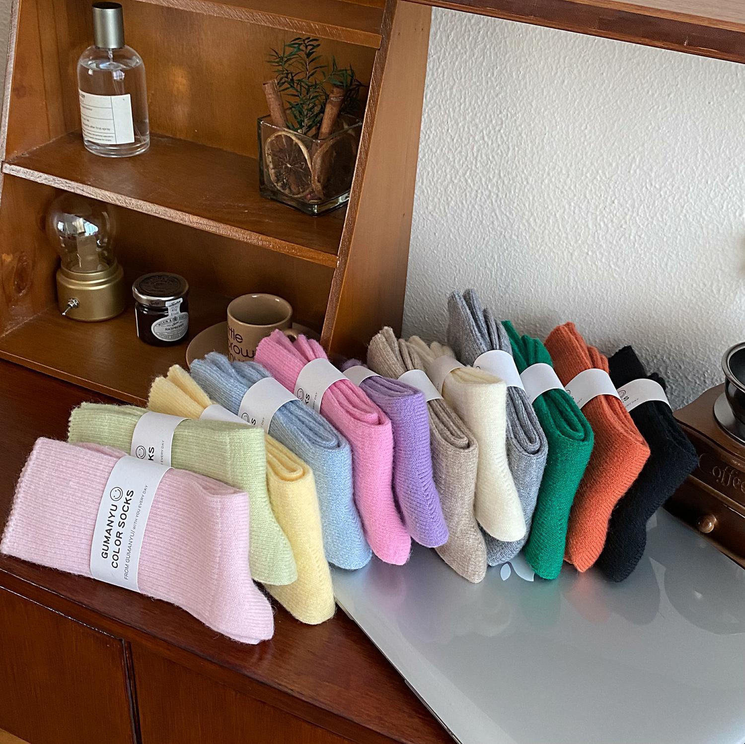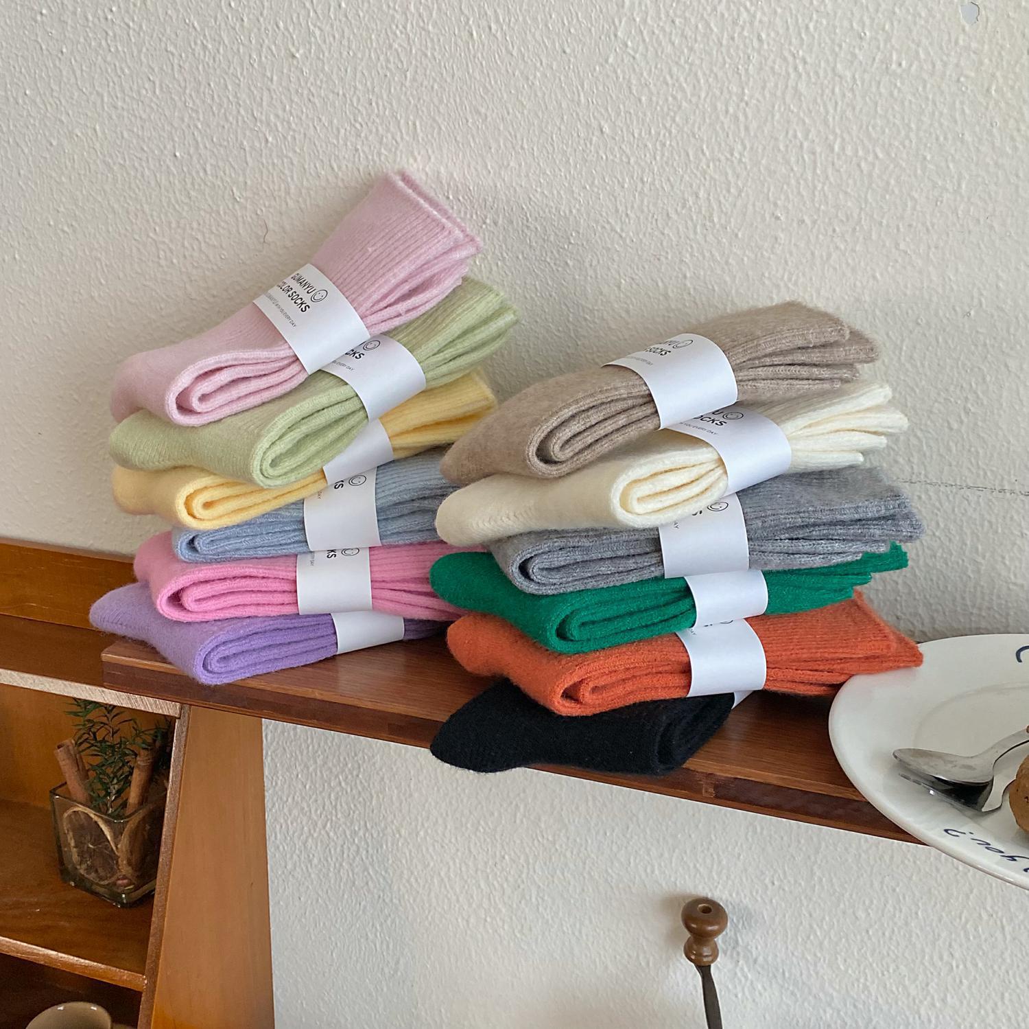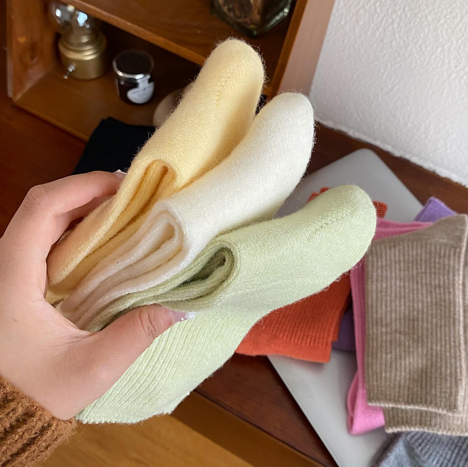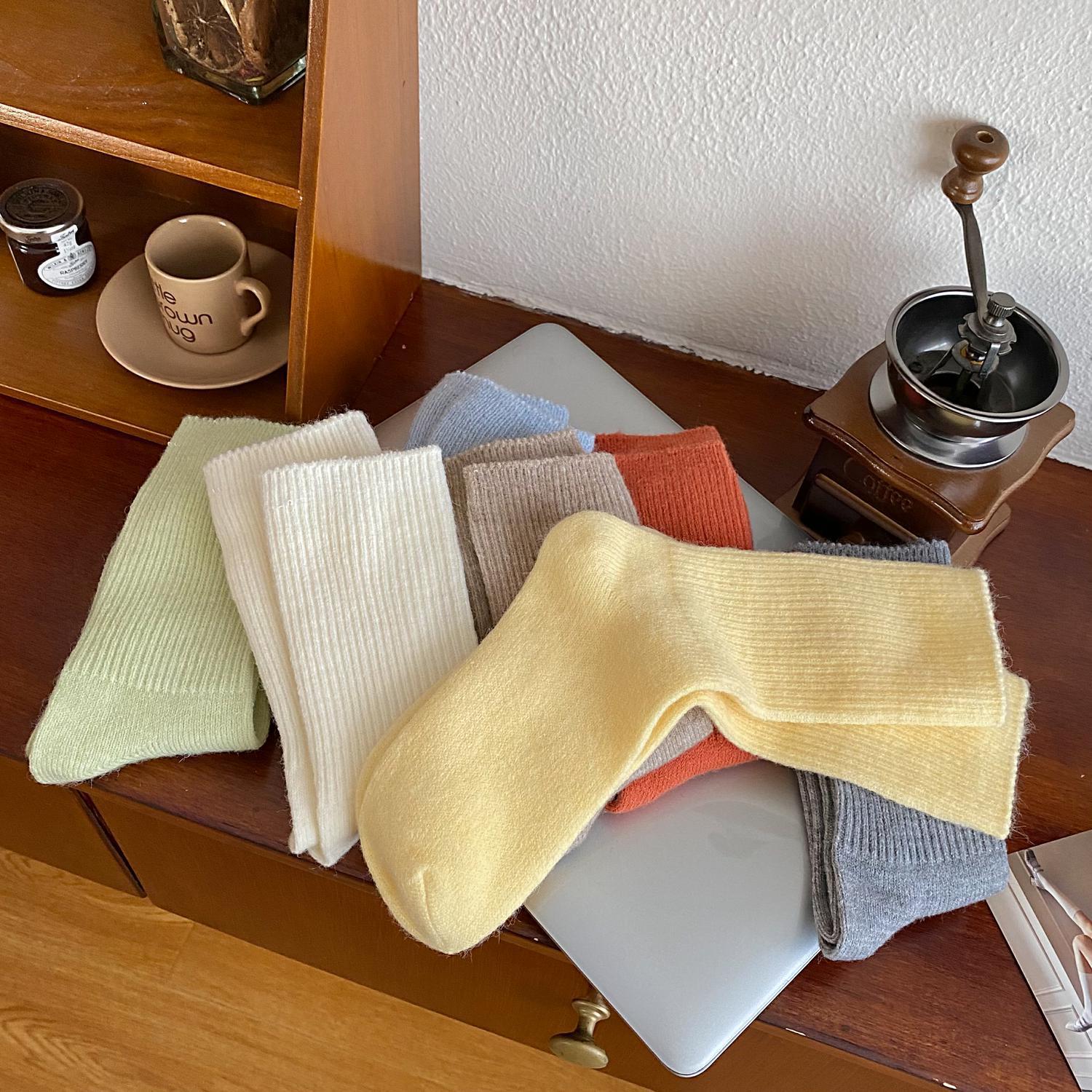 Calcetines de Otoño e Invierno Calcetines de Cachemira de Color Sólido para Mujer Calcetines de Media Caña de Estilo Japonés para Mujer Calcetines Gruesos Cálidos con Forro Polar Calcetines de Lana de Estilo Japonés Vintage