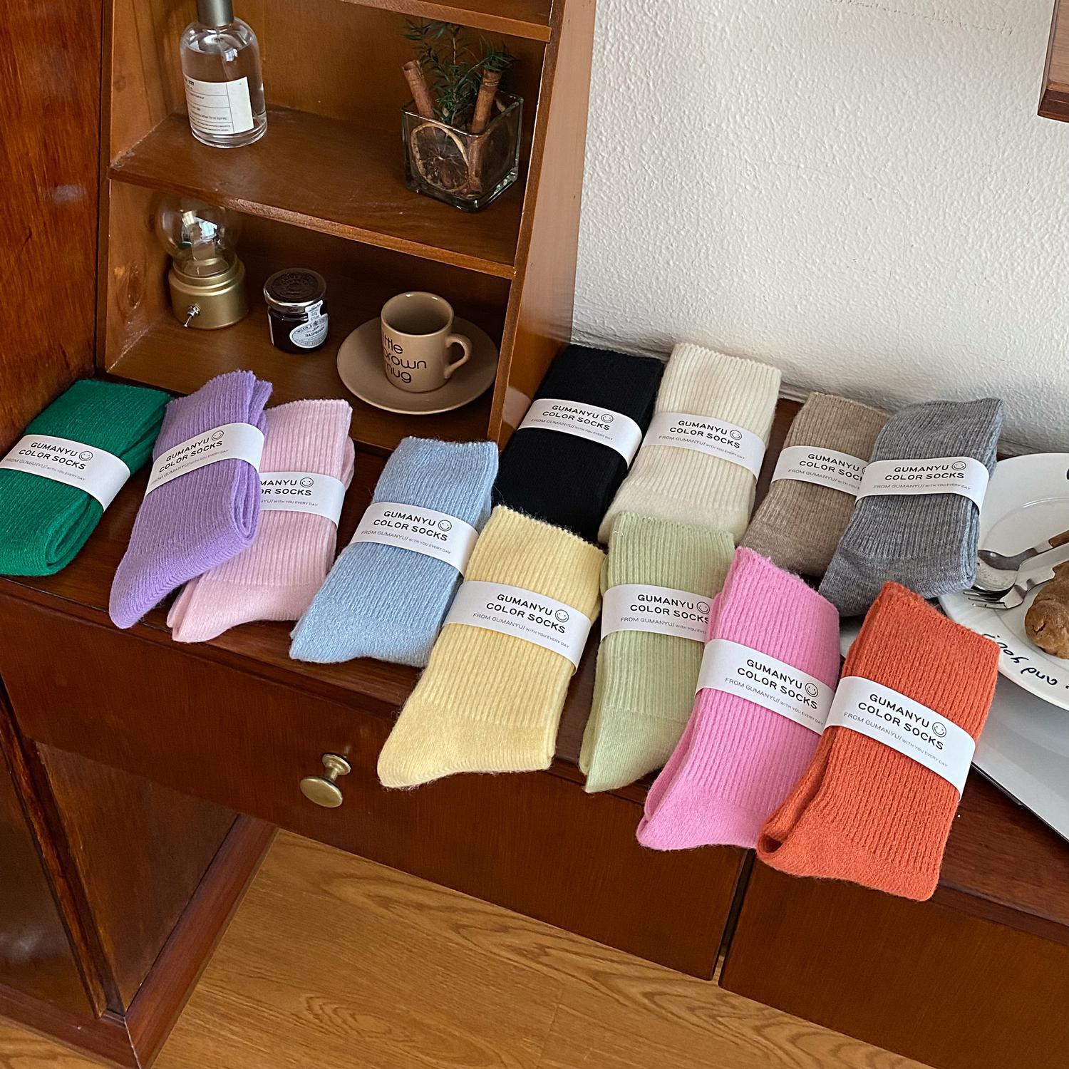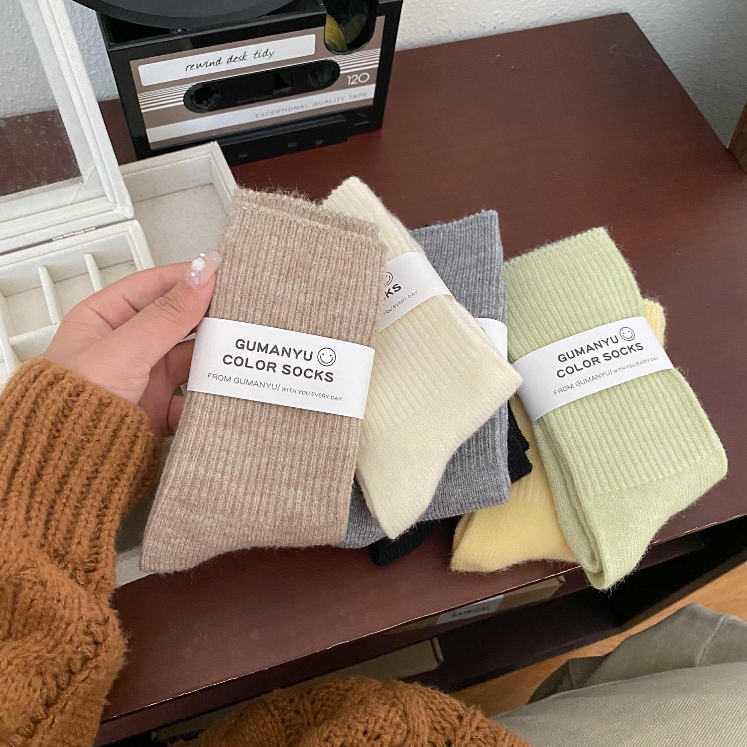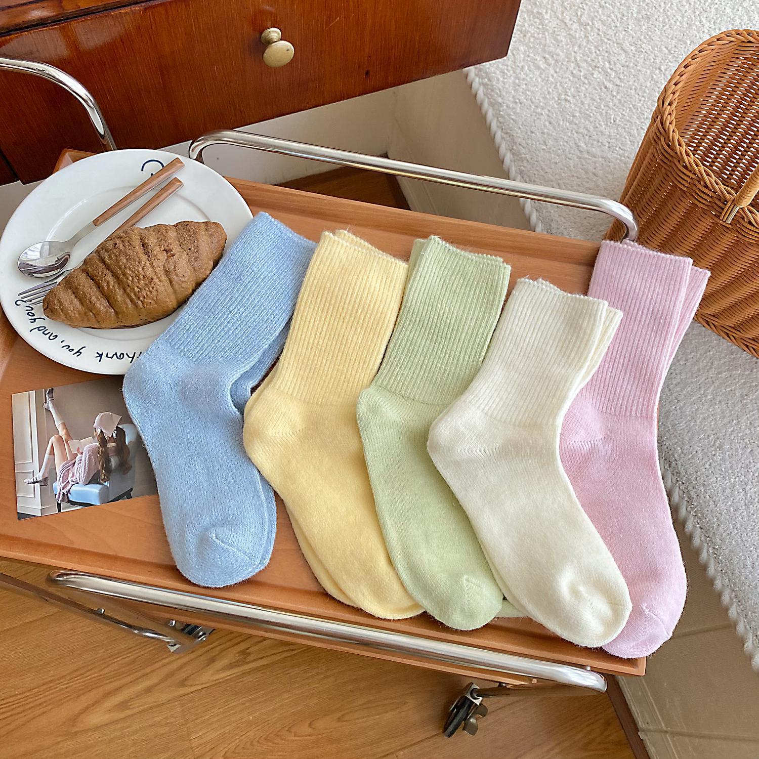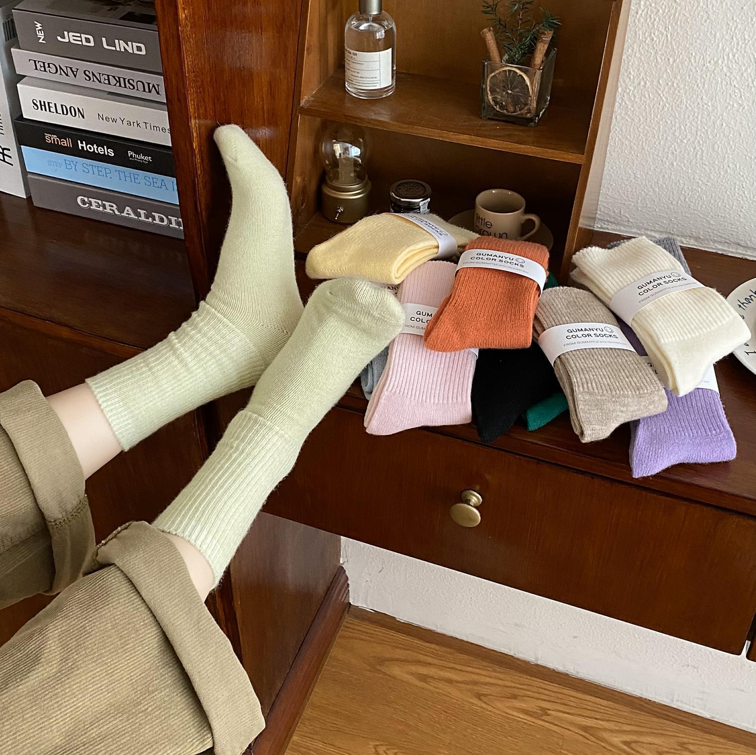 Calcetines de Otoño e Invierno Calcetines de Cachemira de Color Sólido para Mujer Calcetines de Media Caña de Estilo Japonés para Mujer Calcetines Gruesos Cálidos con Forro Polar Calcetines de Lana de Estilo Japonés Vintage
