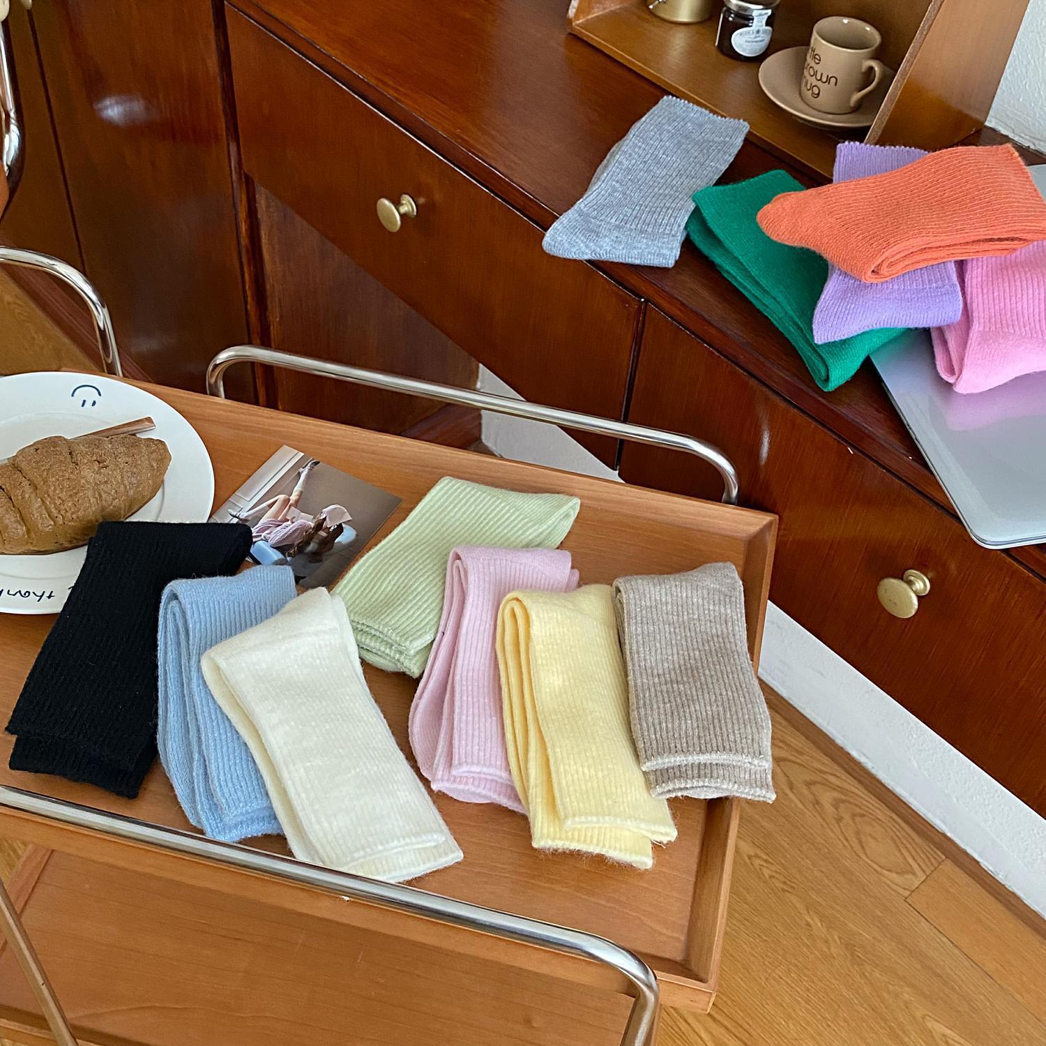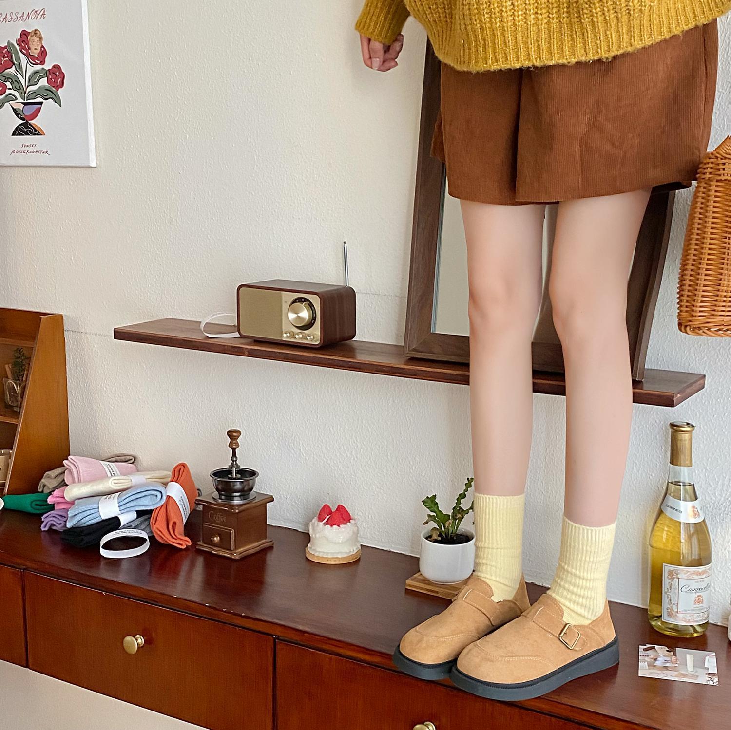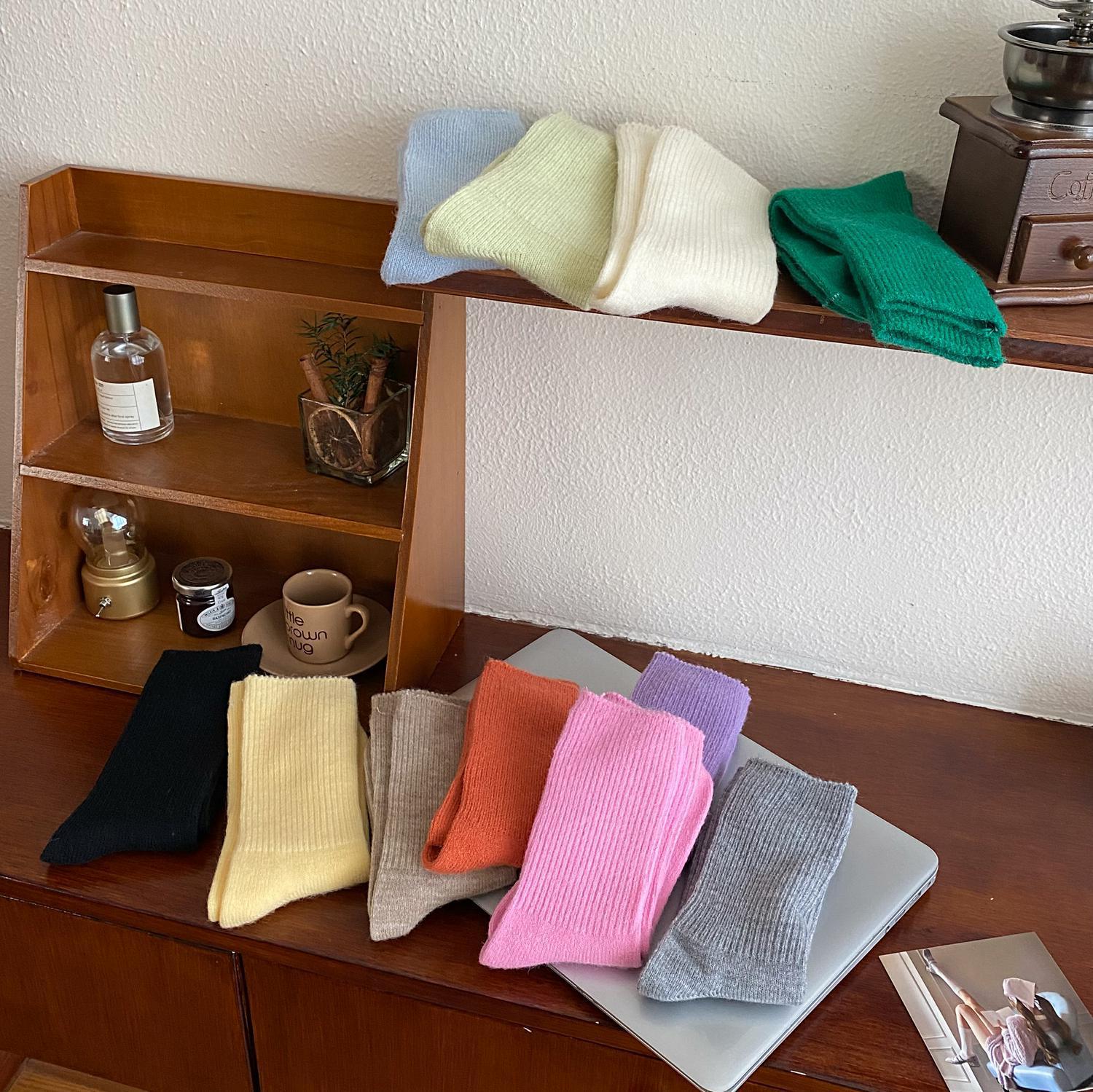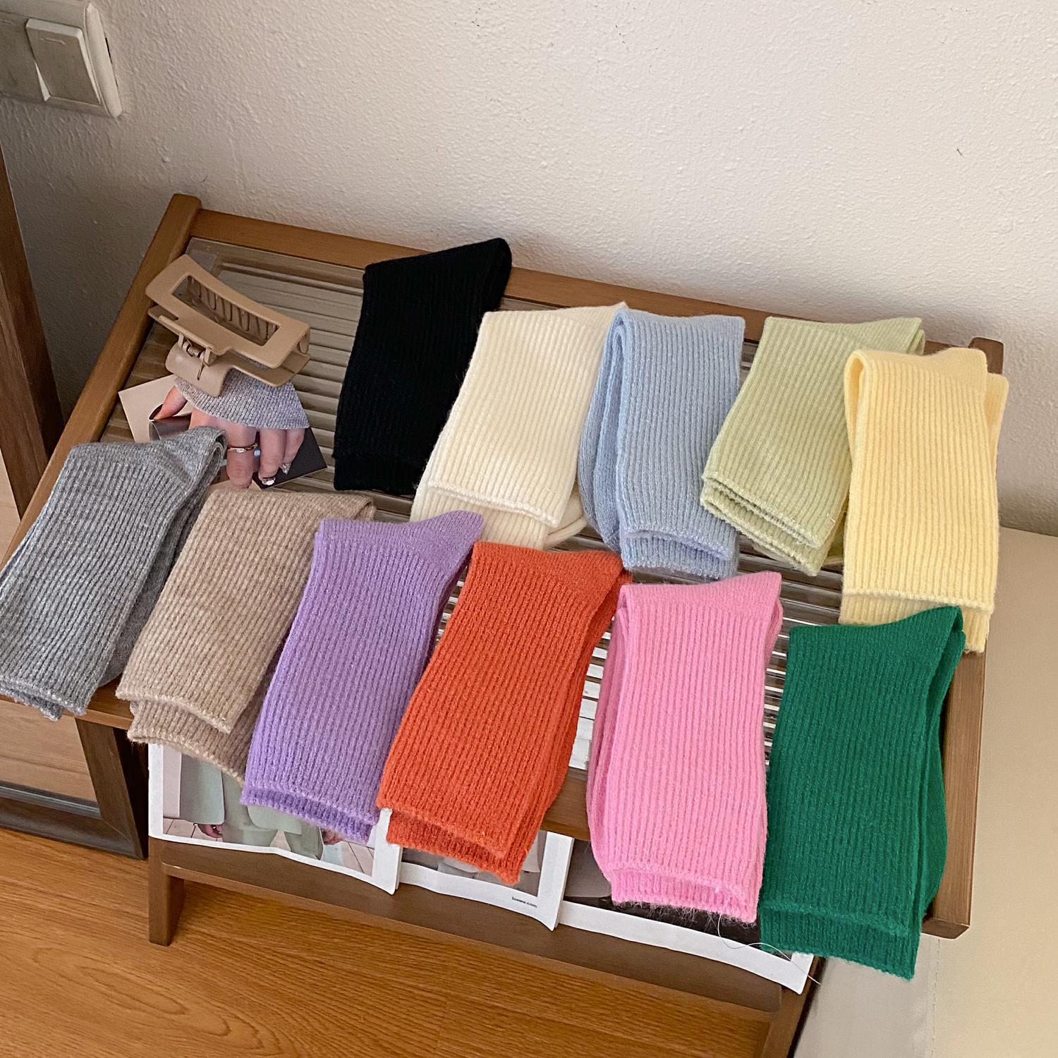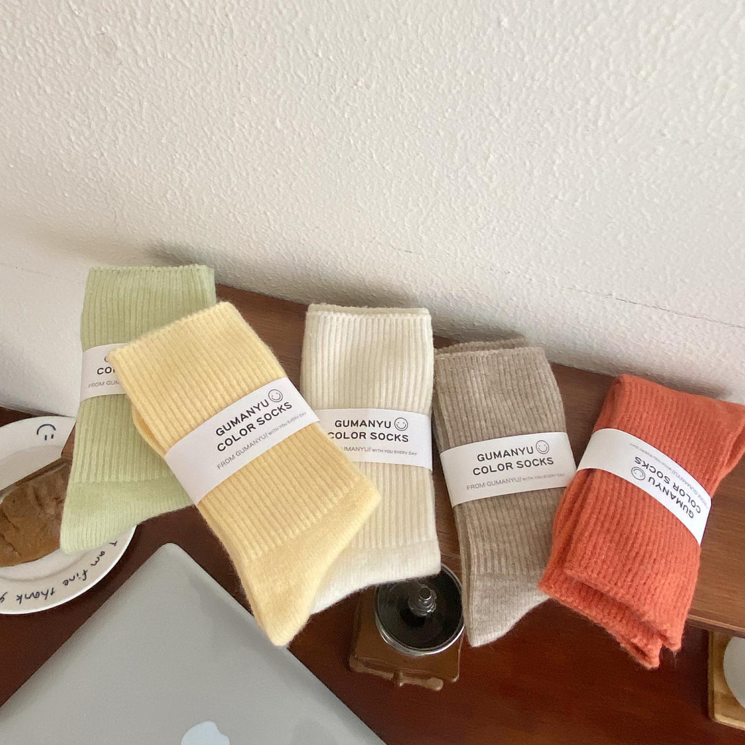 Calcetines de Otoño e Invierno Calcetines de Cachemira de Color Sólido para Mujer Calcetines de Media Caña de Estilo Japonés para Mujer Calcetines Gruesos Cálidos con Forro Polar Calcetines de Lana de Estilo Japonés Vintage