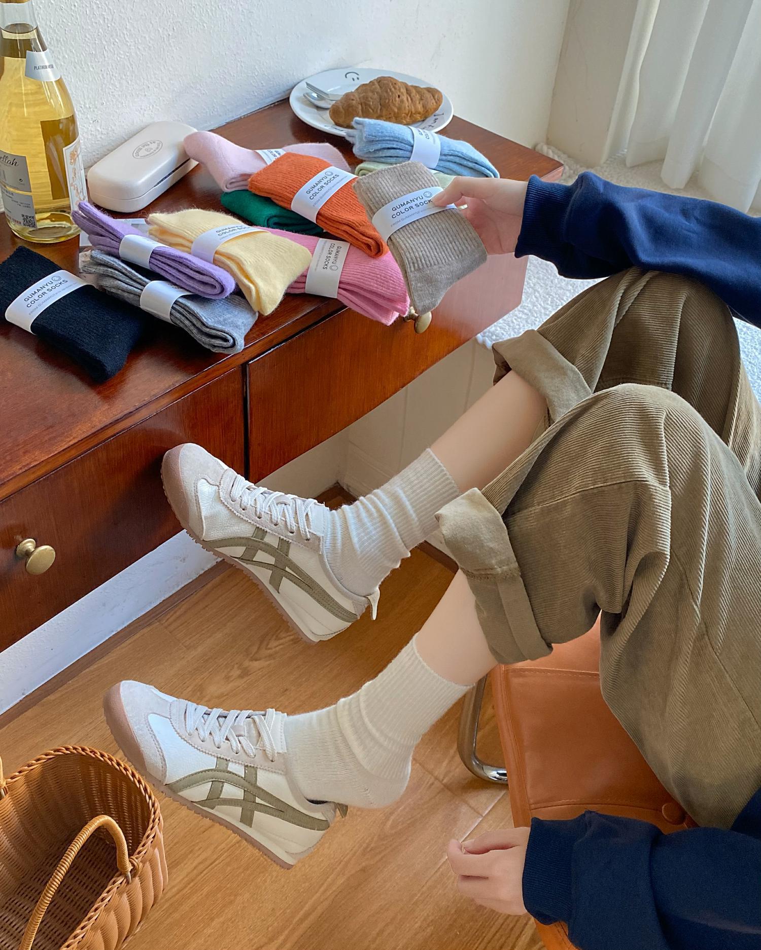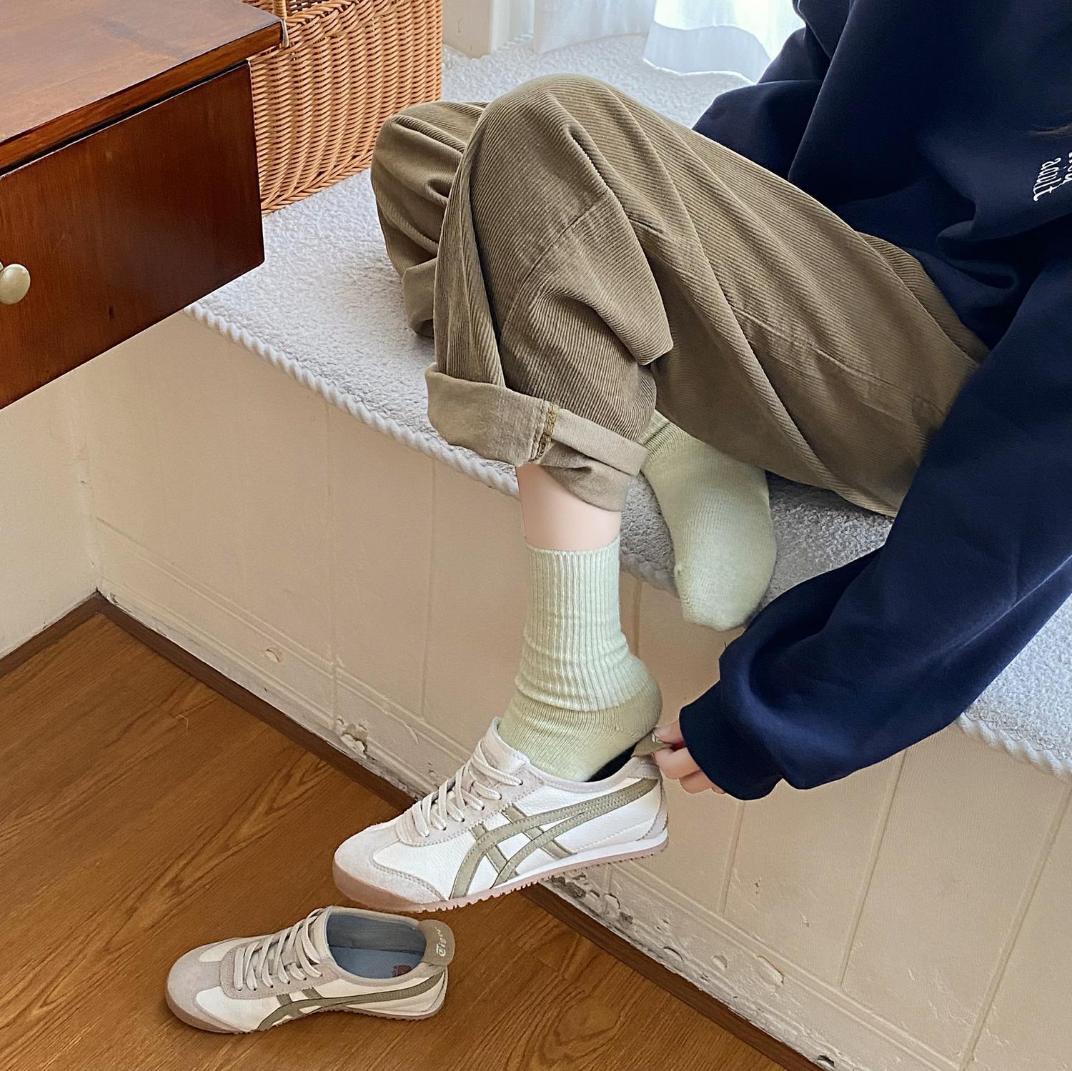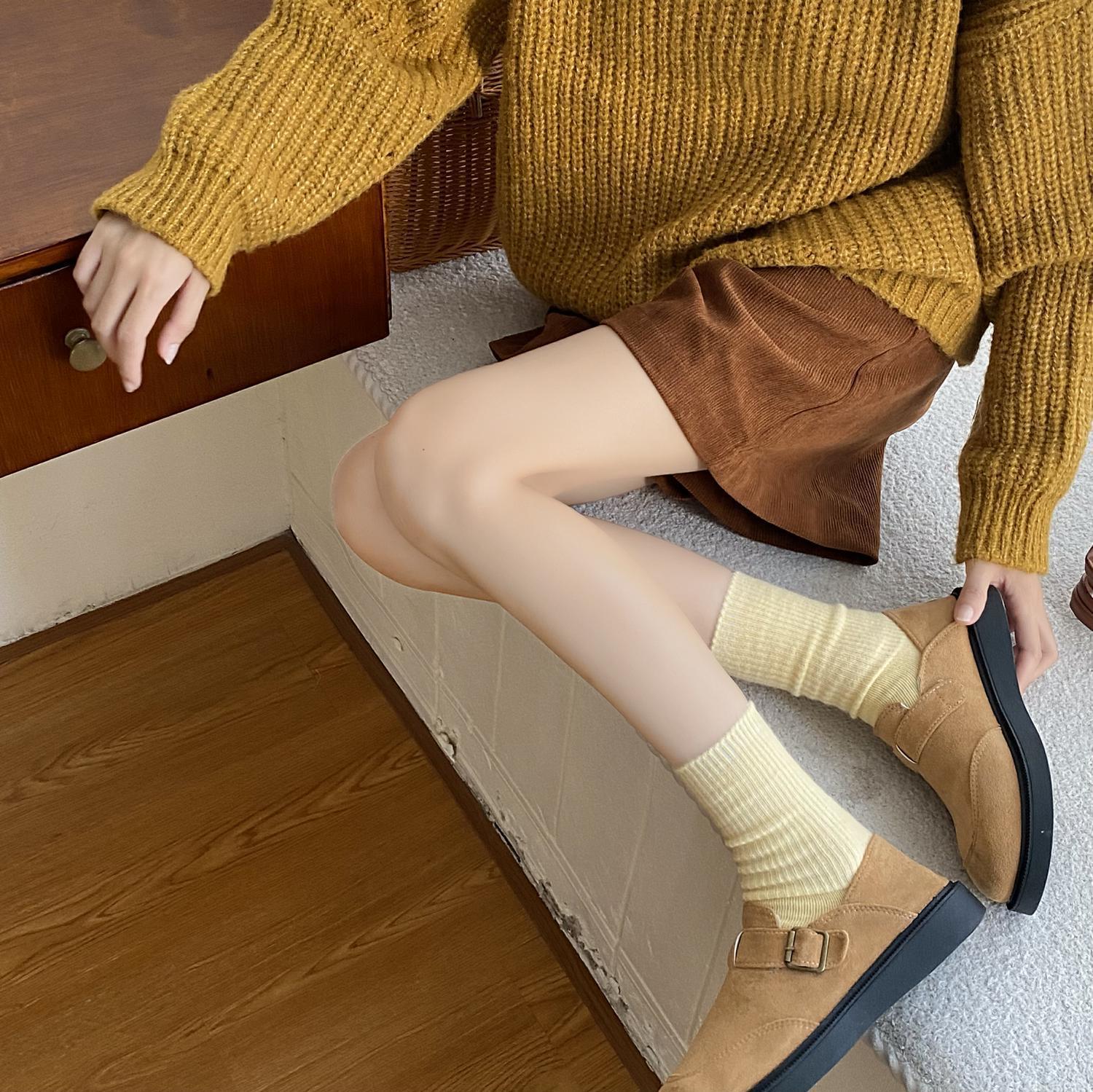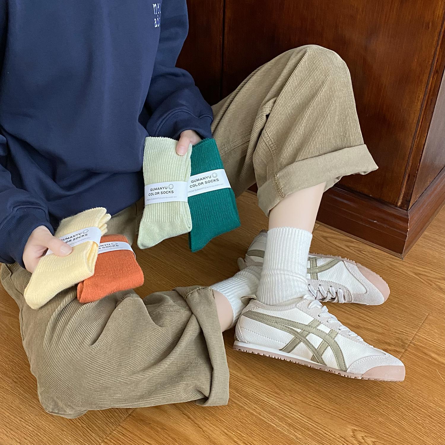 Calcetines de Otoño e Invierno Calcetines de Cachemira de Color Sólido para Mujer Calcetines de Media Caña de Estilo Japonés para Mujer Calcetines Gruesos Cálidos con Forro Polar Calcetines de Lana de Estilo Japonés Vintage