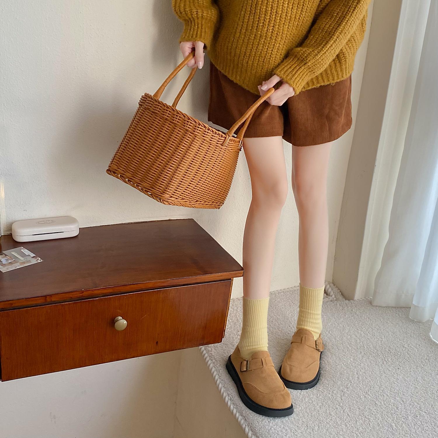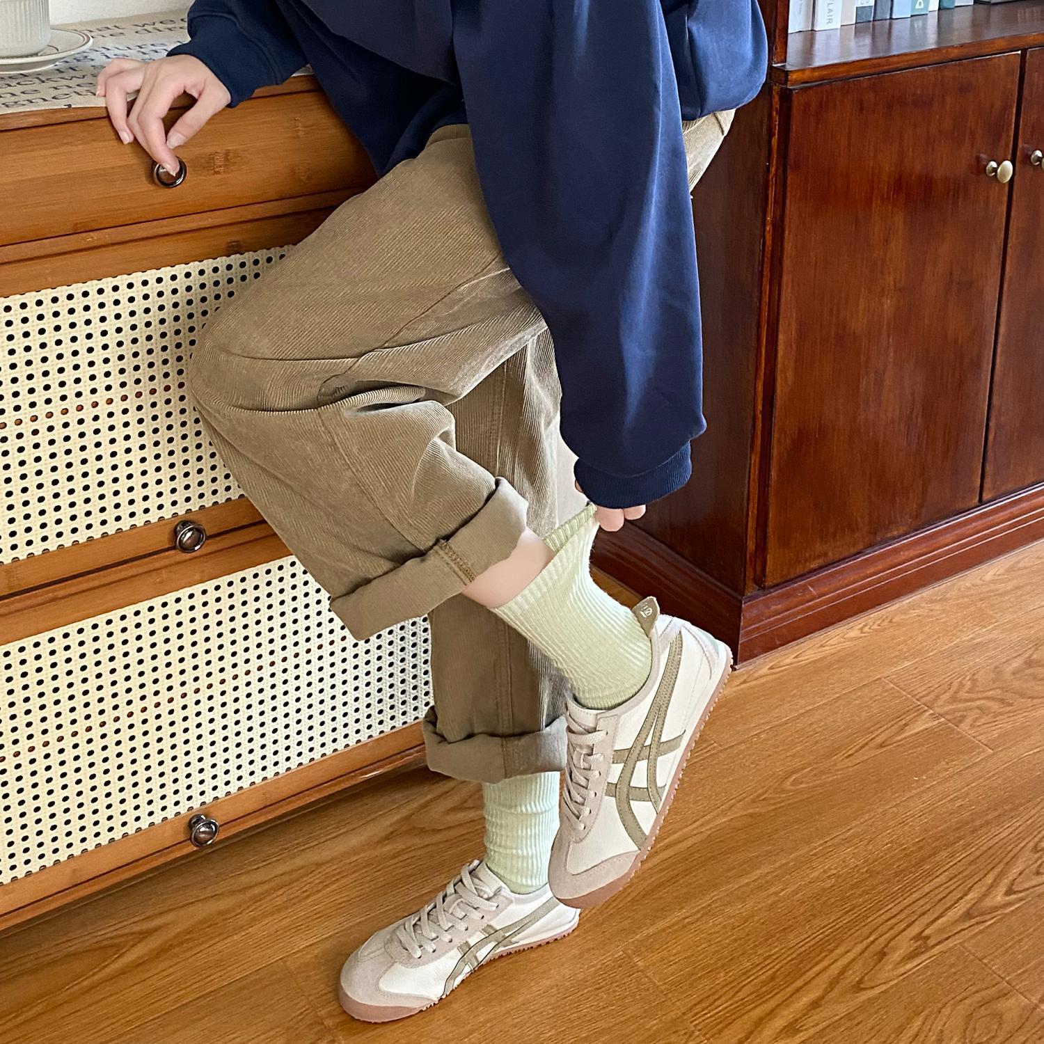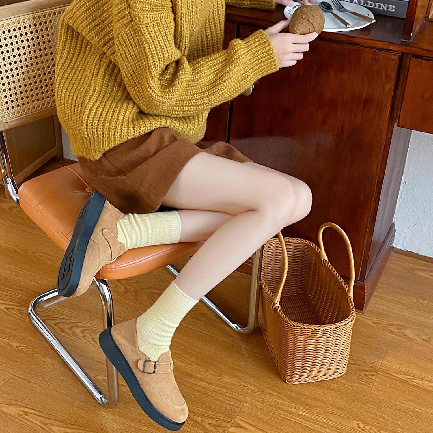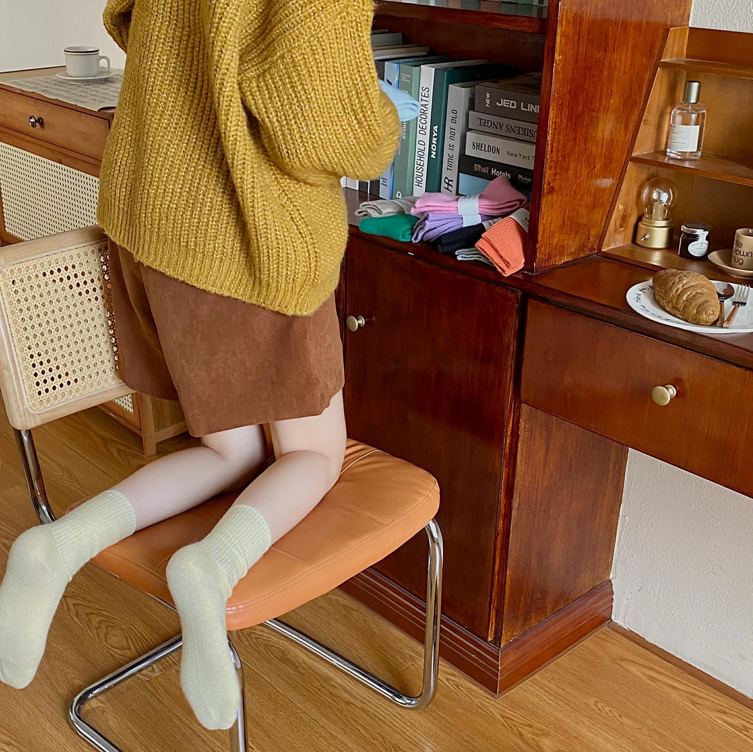 Calcetines de Otoño e Invierno Calcetines de Cachemira de Color Sólido para Mujer Calcetines de Media Caña de Estilo Japonés para Mujer Calcetines Gruesos Cálidos con Forro Polar Calcetines de Lana de Estilo Japonés Vintage