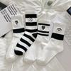 Calcetines de mujer primavera y verano calcetines de media caña calcetines coreanos de moda versátiles de rayas blancas y negras medias deportivas japonesas de estudiante para mujer
